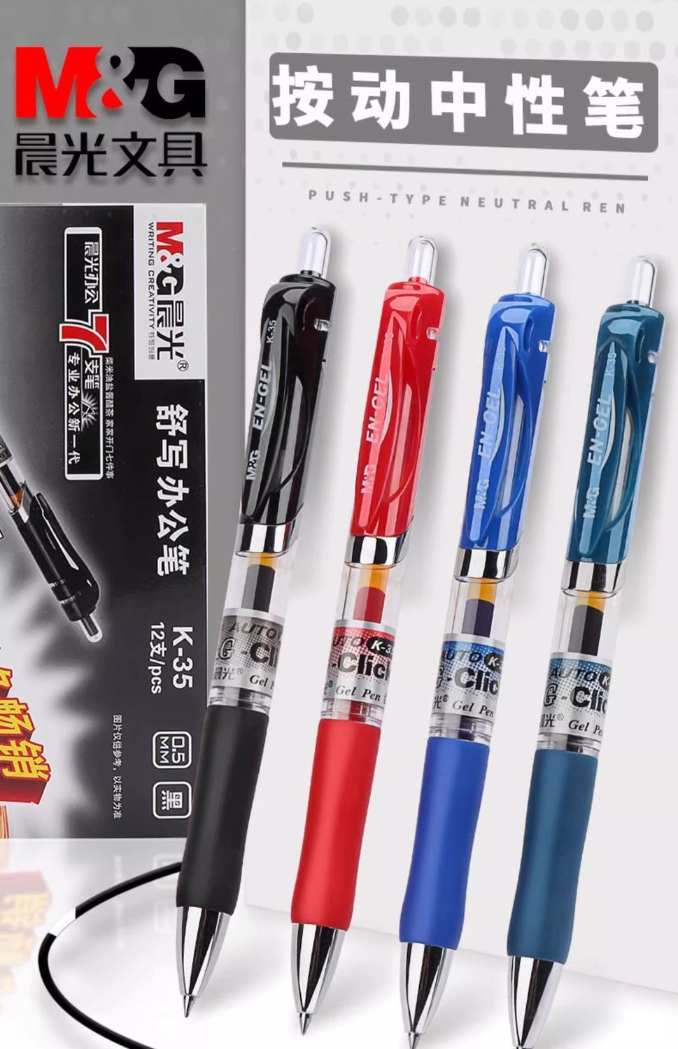 Chen/Guang K35 젤펜 0.5mm 푸시버튼형 서명펜 회의용 펜 검정/빨강/파랑 잉크펜 학생 학습 및 사무용스토어 가기