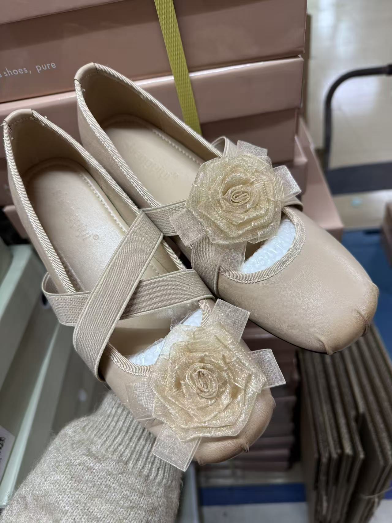 양가죽 버전 ~ 5CM 프랑스 복고풍 동백 꽃 메리 제인 신발 여성 2025 새로운 조커 크로스 탄성 밴드스토어 가기