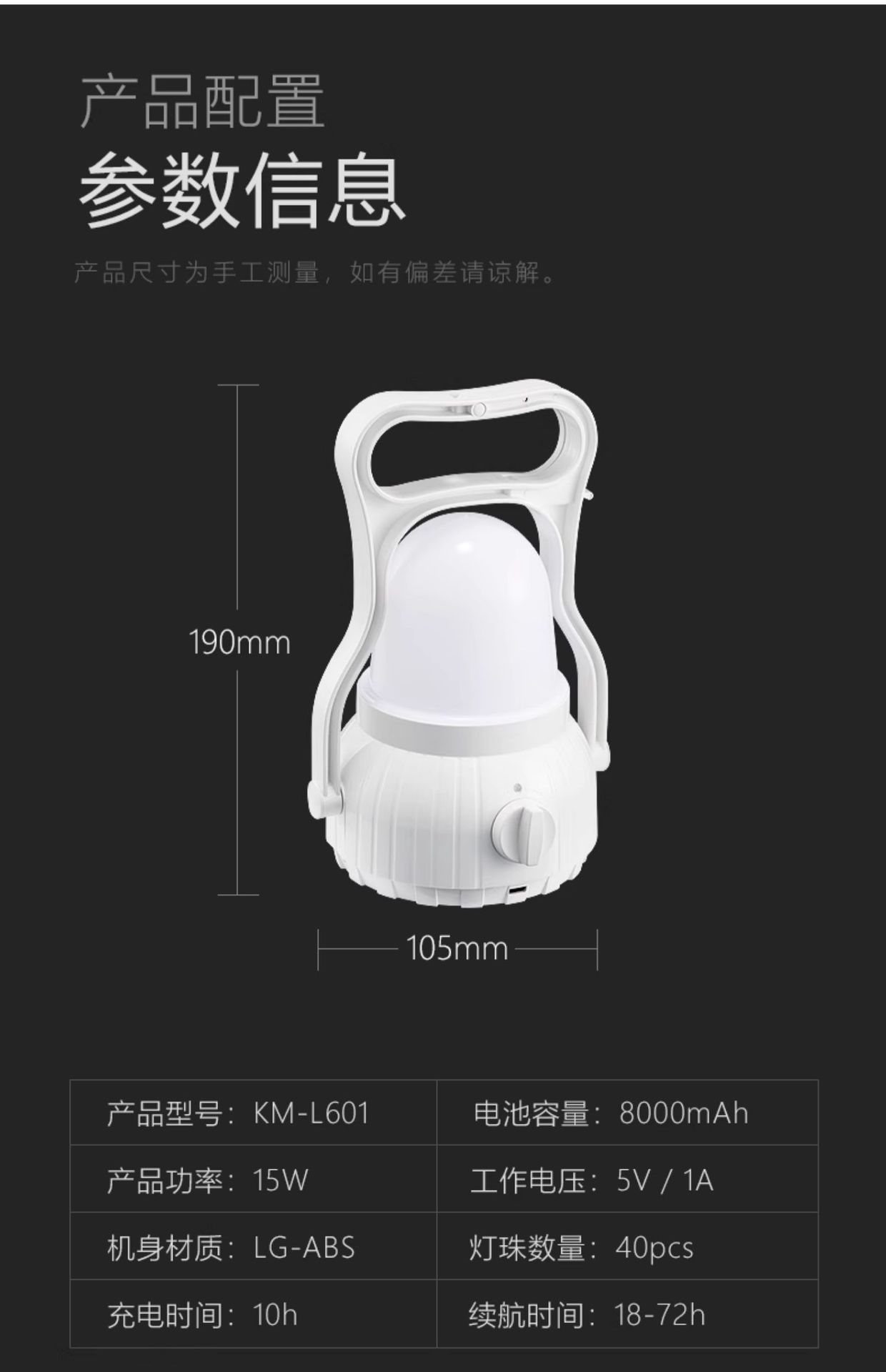 • 8000mAh 흰색 배터리 수명 12~72시간
