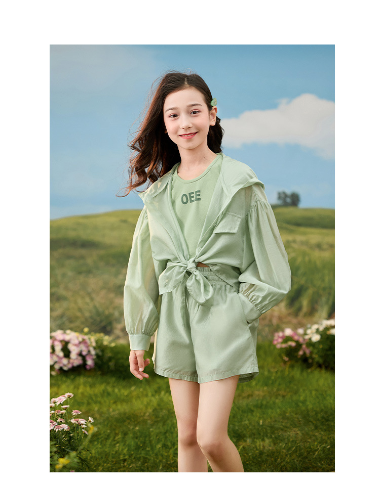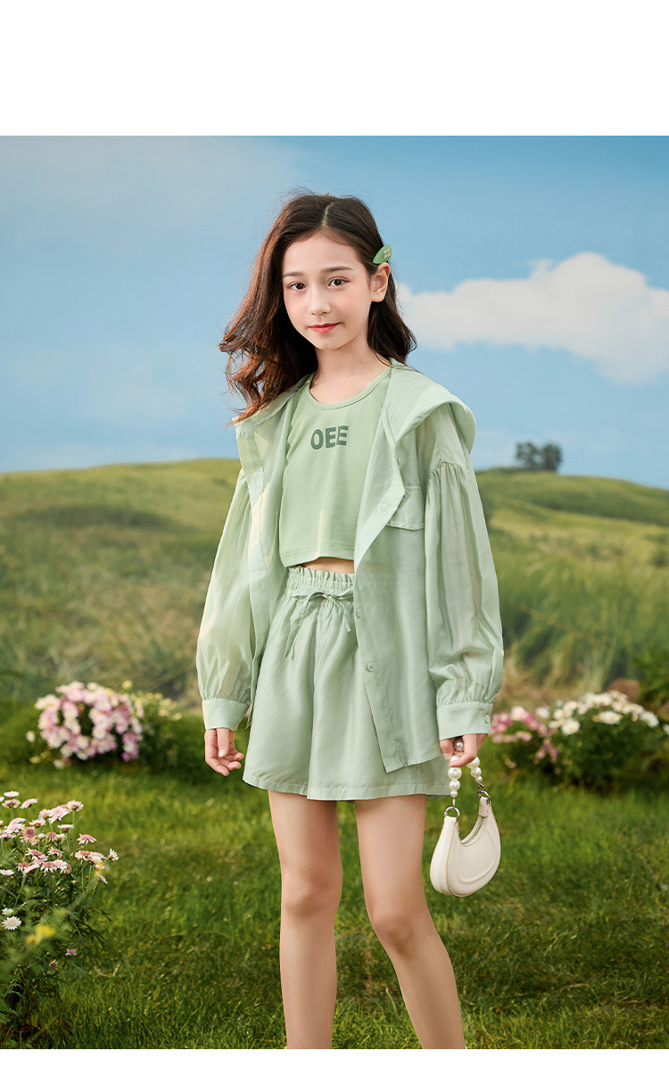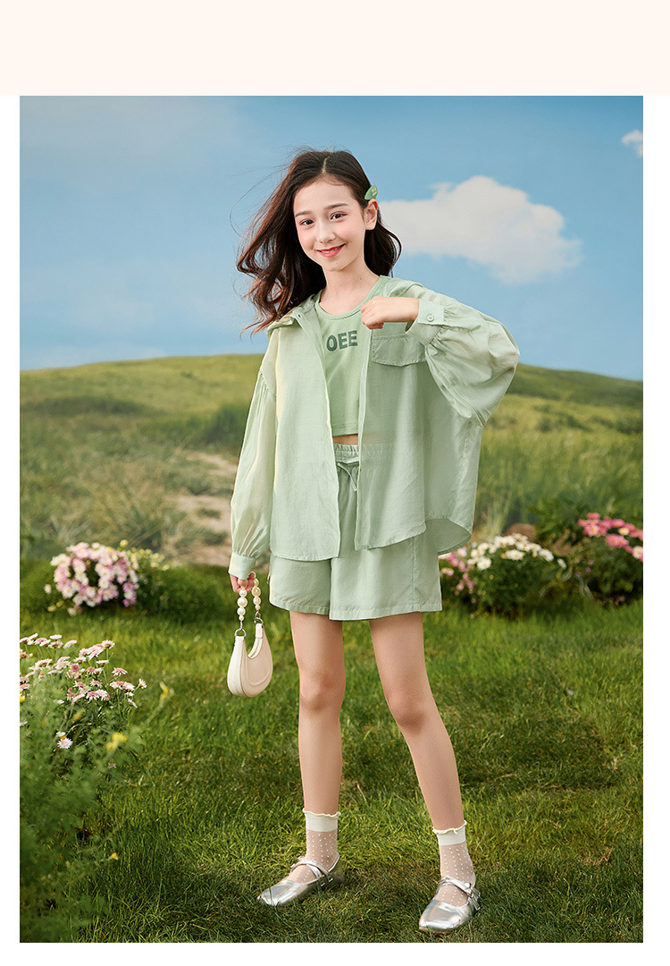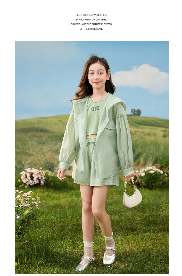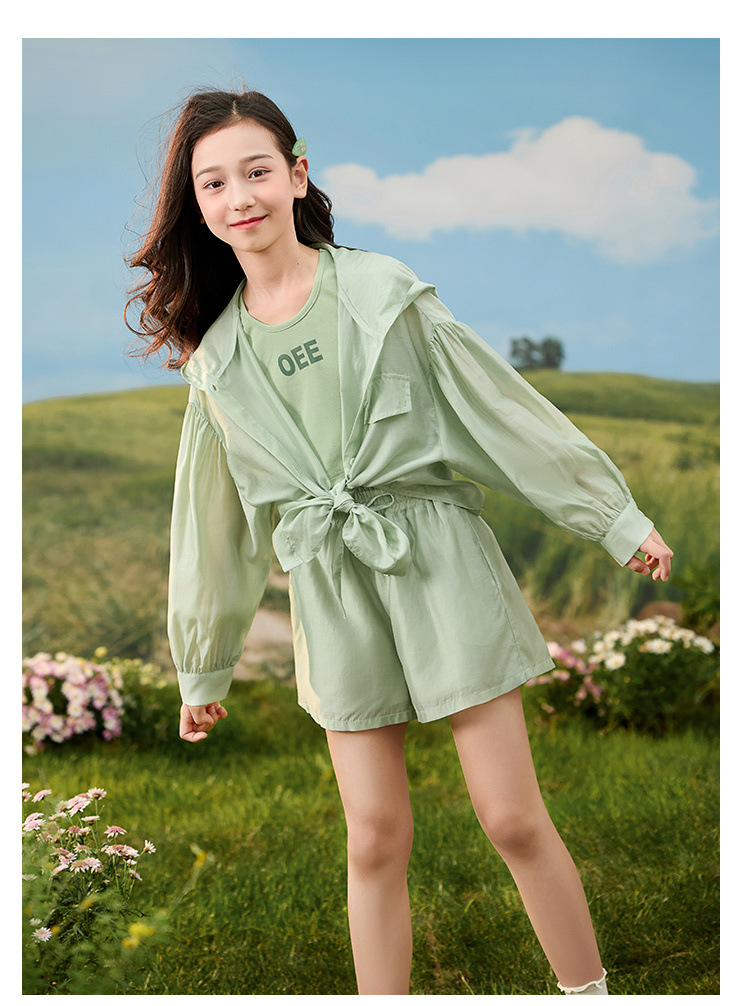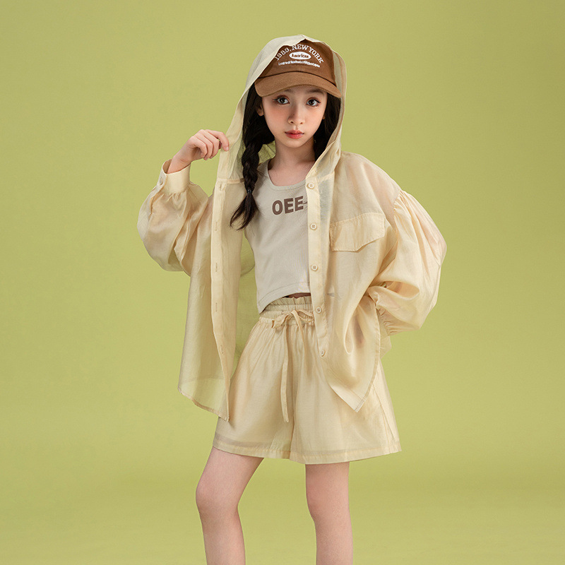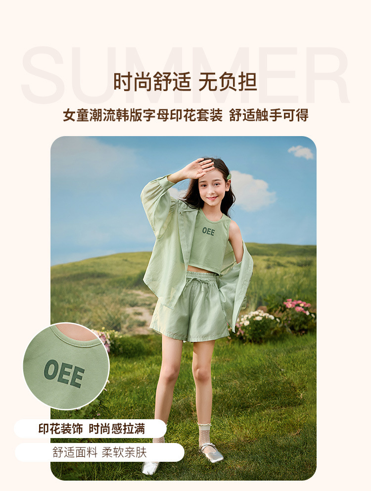 베티 걸스 서양식 세트 2025 여름 새 조끼 반바지 선 스크린 재킷 소녀 어린이 3 종 세트스토어 가기