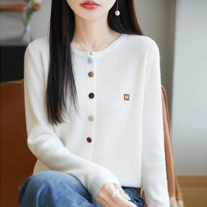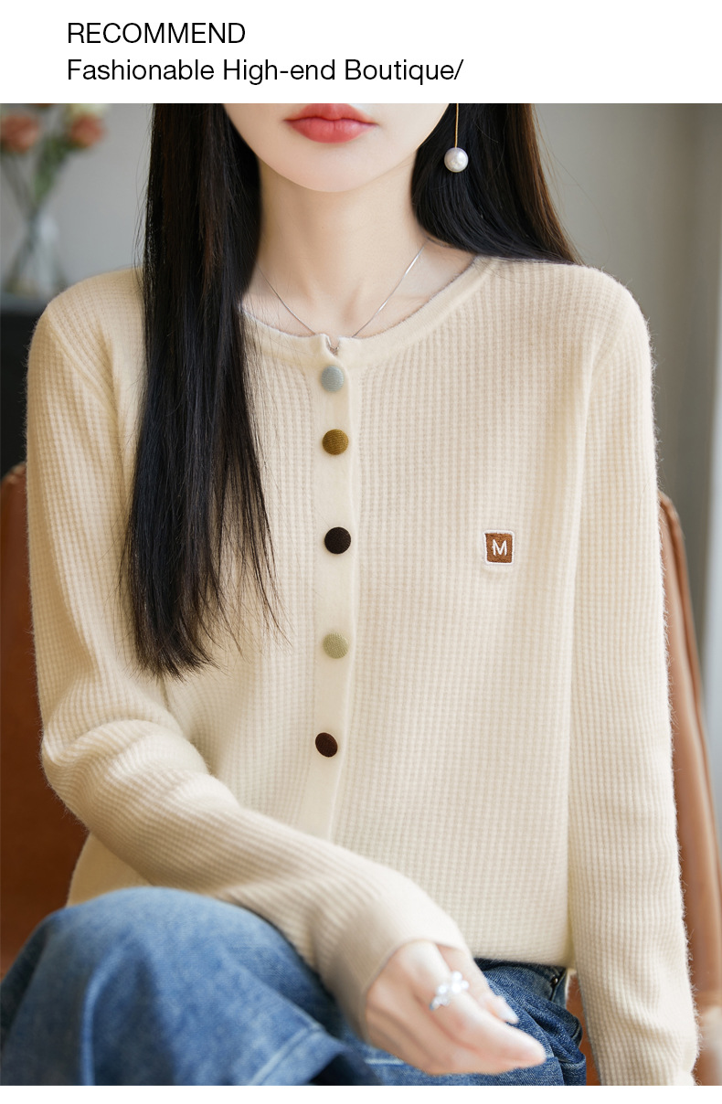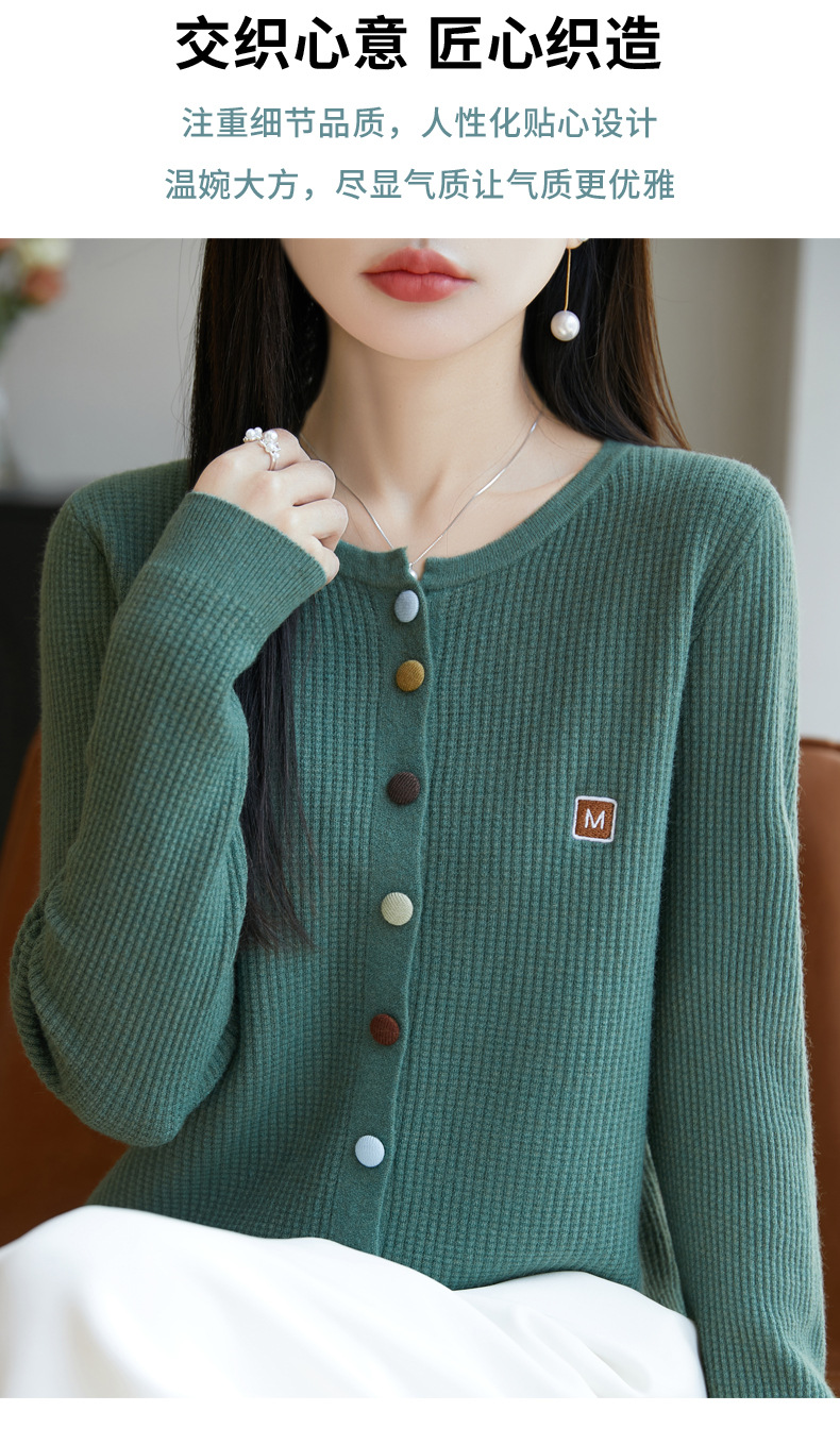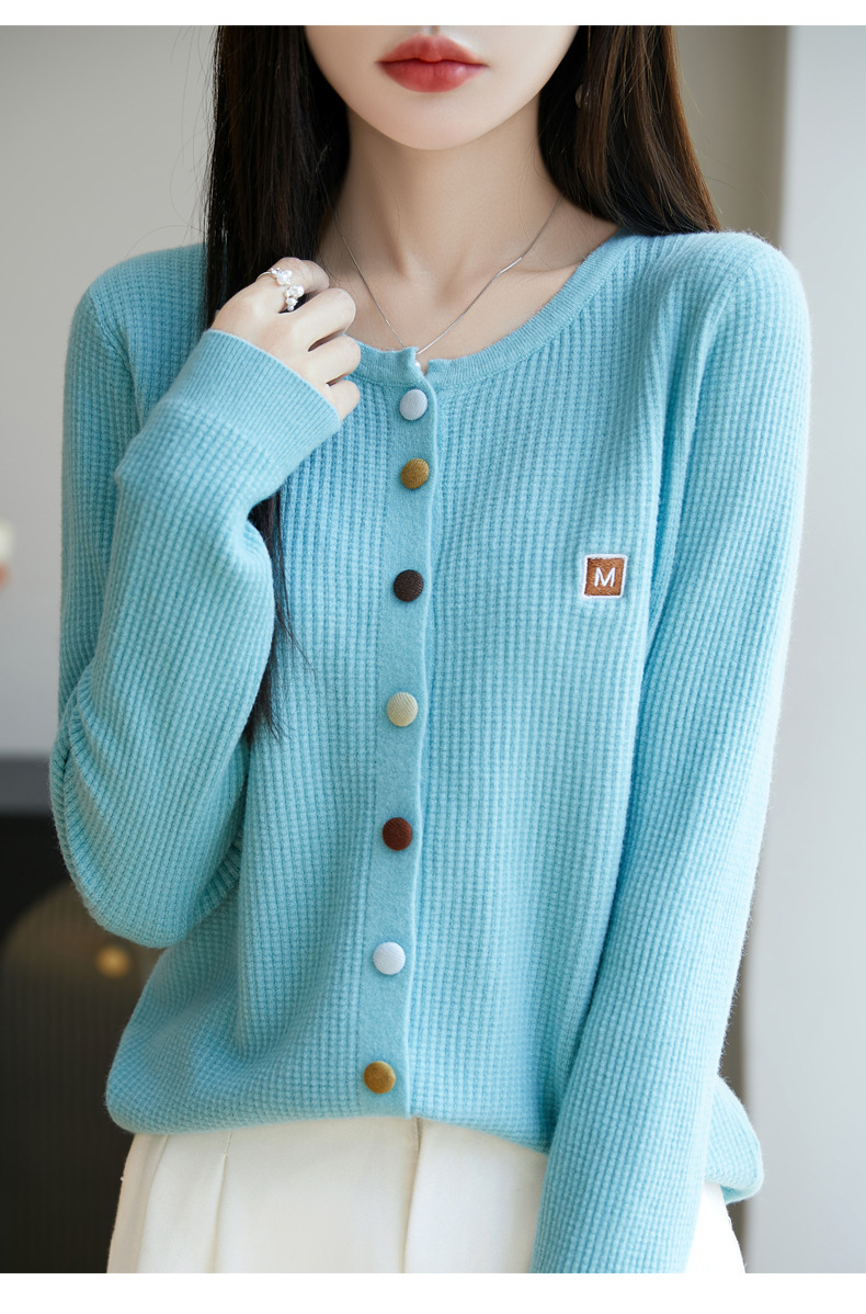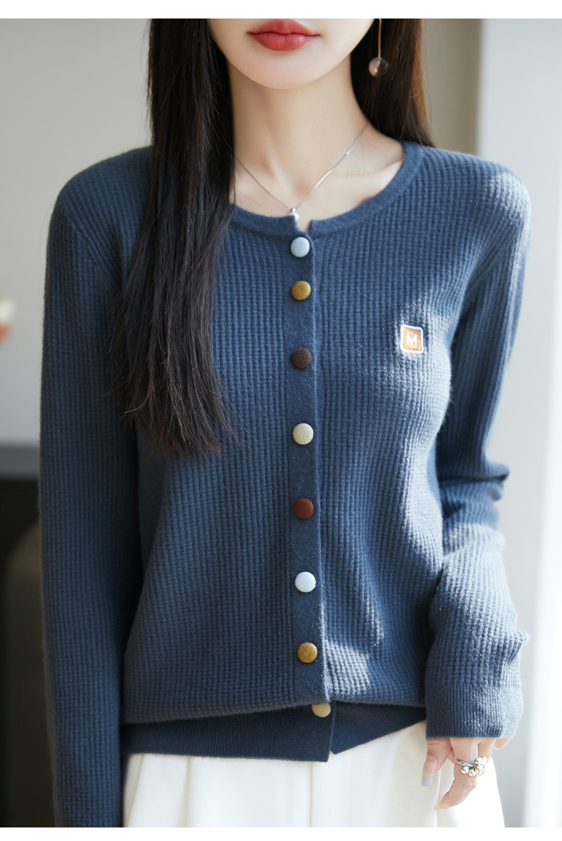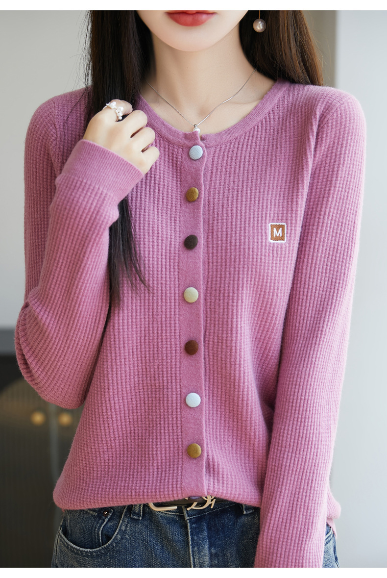 다채로운 버클 한국 스타일 캐주얼 니트 라운드 넥 카디건 여성 2025 봄 새로운 프랑스 인기 스웨터 재킷스토어 가기