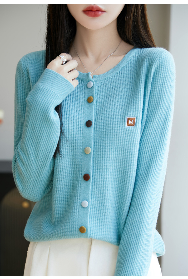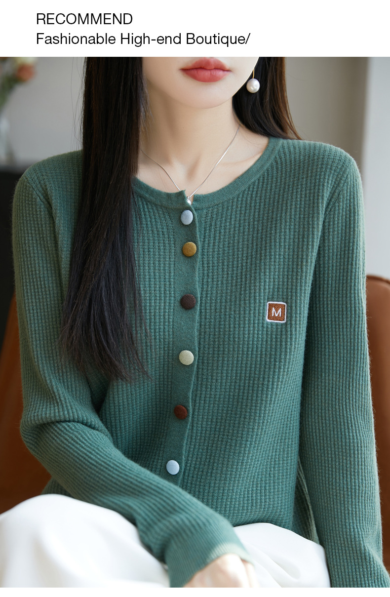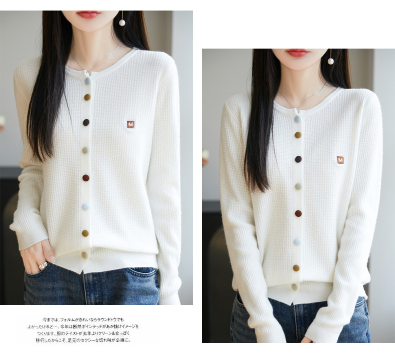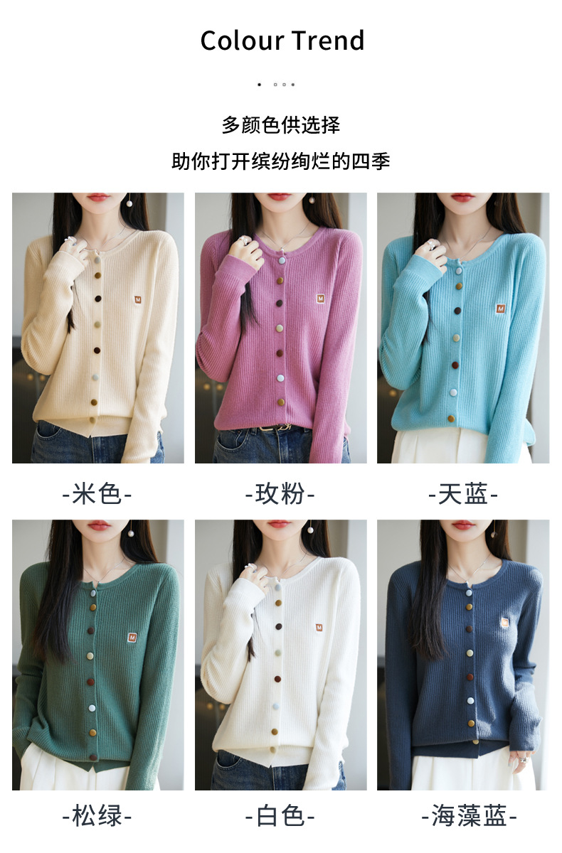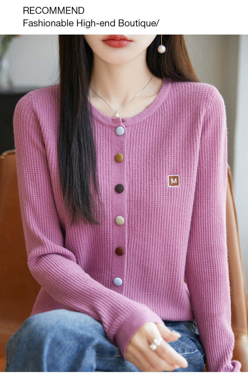 다채로운 버클 한국 스타일 캐주얼 니트 라운드 넥 카디건 여성 2025 봄 새로운 프랑스 인기 스웨터 재킷