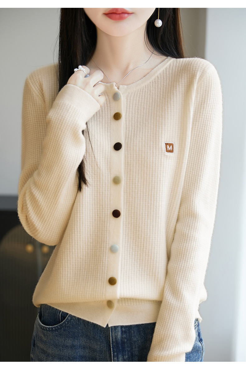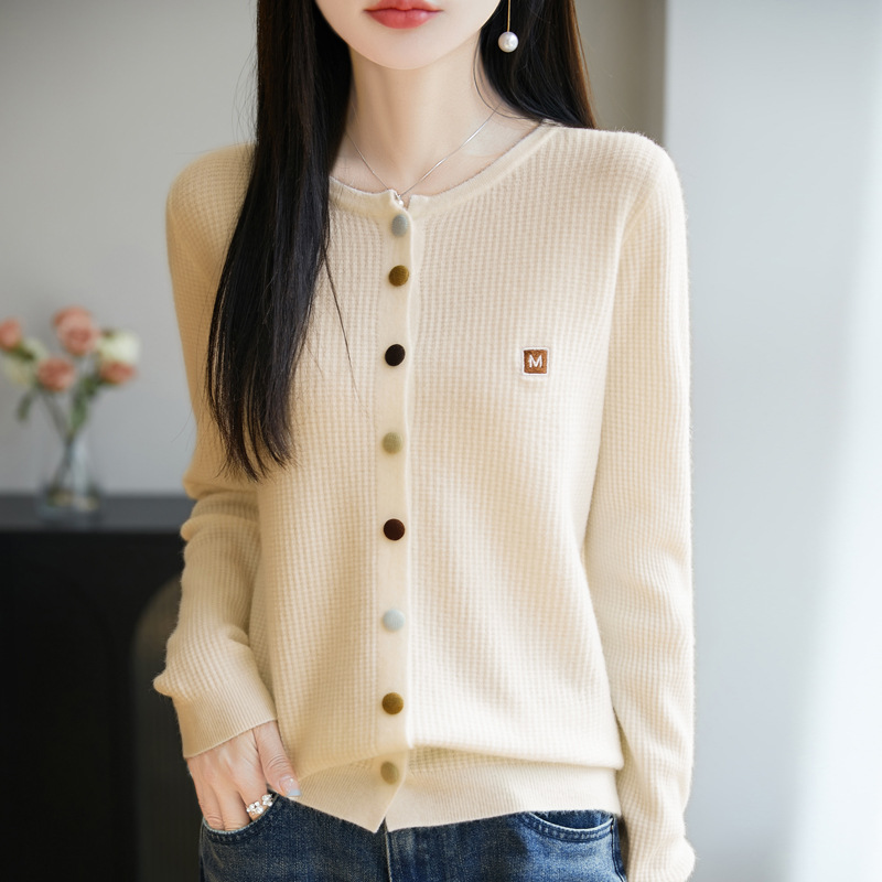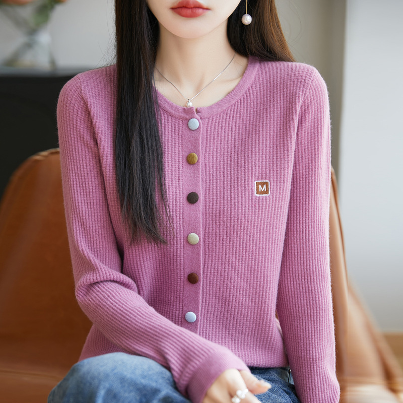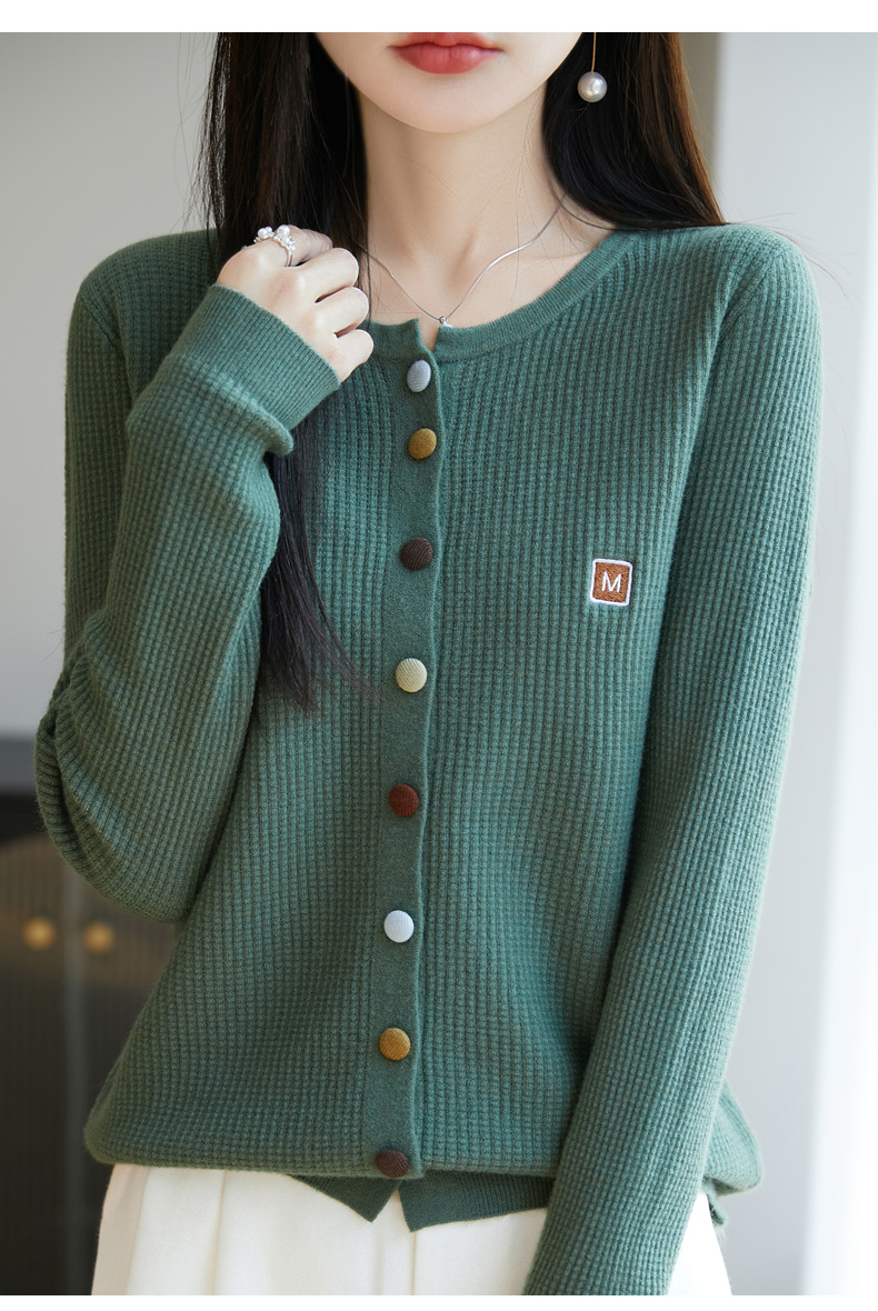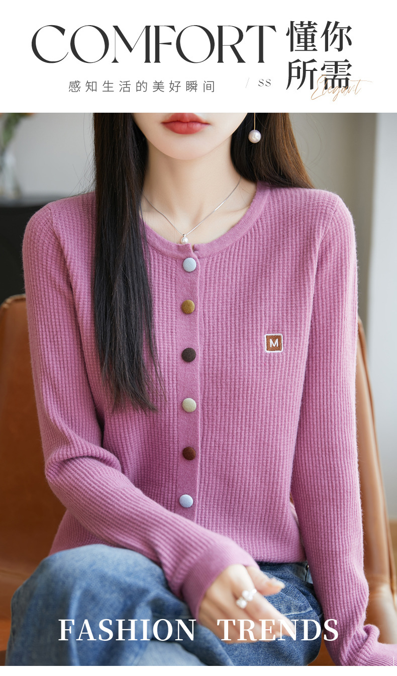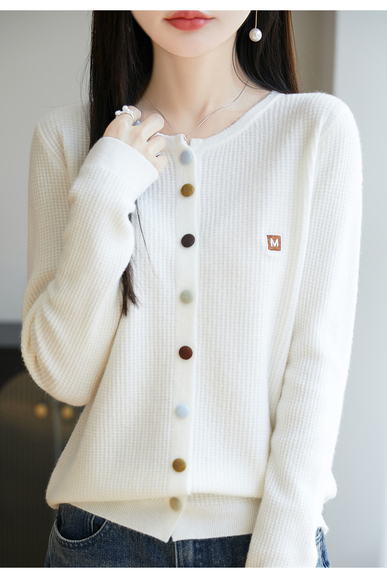 다채로운 버클 한국 스타일 캐주얼 니트 라운드 넥 카디건 여성 2025 봄 새로운 프랑스 인기 스웨터 재킷