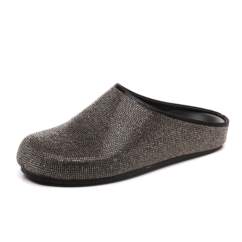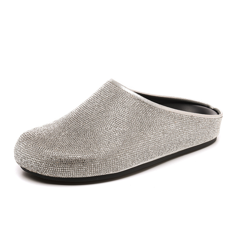 2025년 봄 신상 여성용 밑창과 앞코가 가득한 슬리퍼, 반짝이는 스타즈 디자인, 패셔너블한 워터 다이아몬드 플랫 샌들
