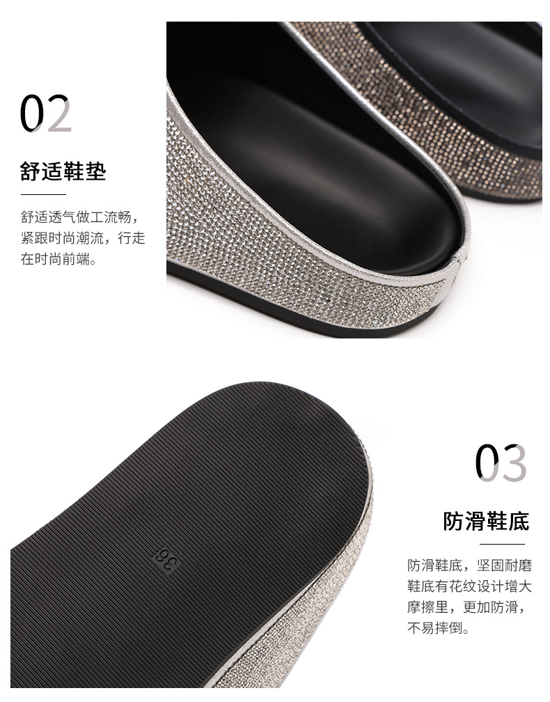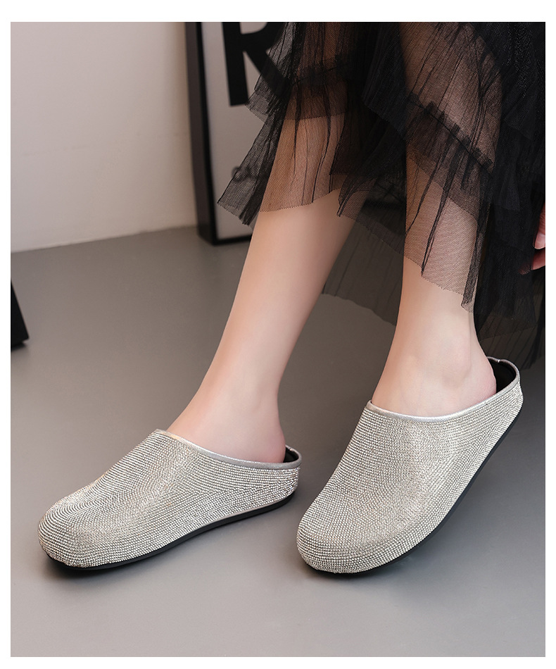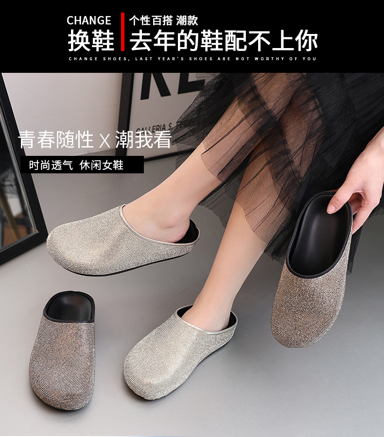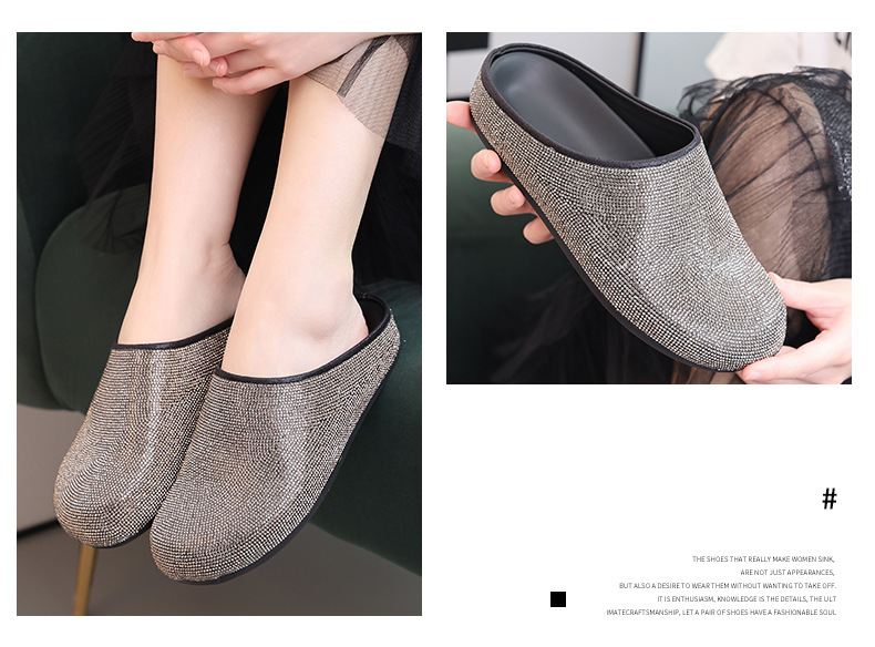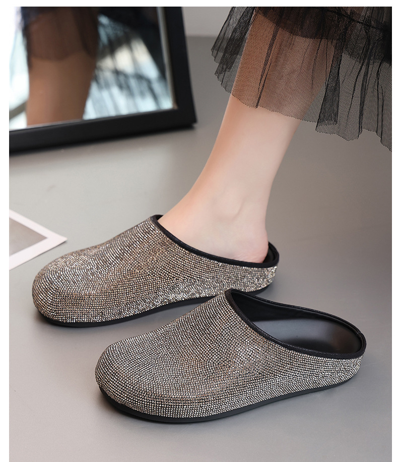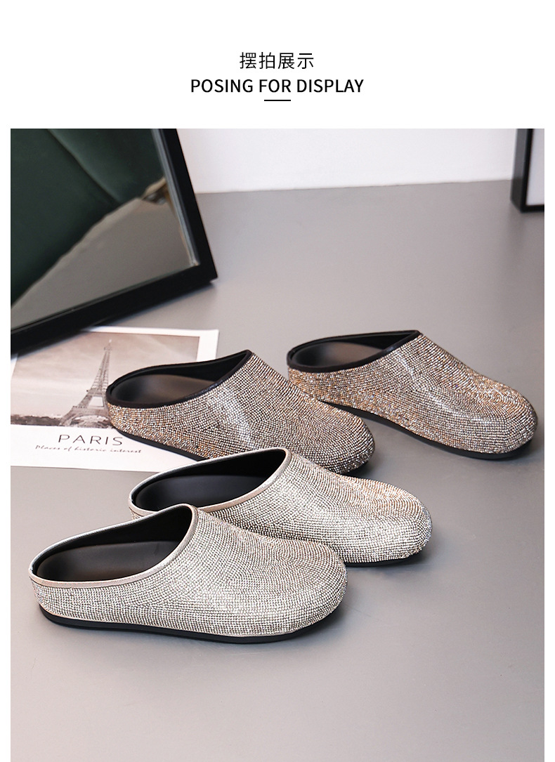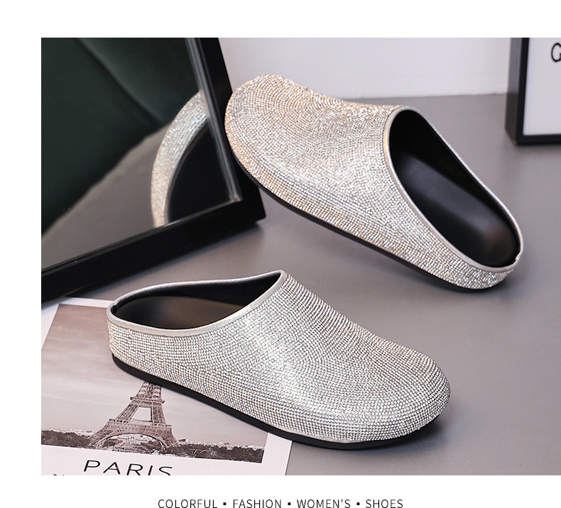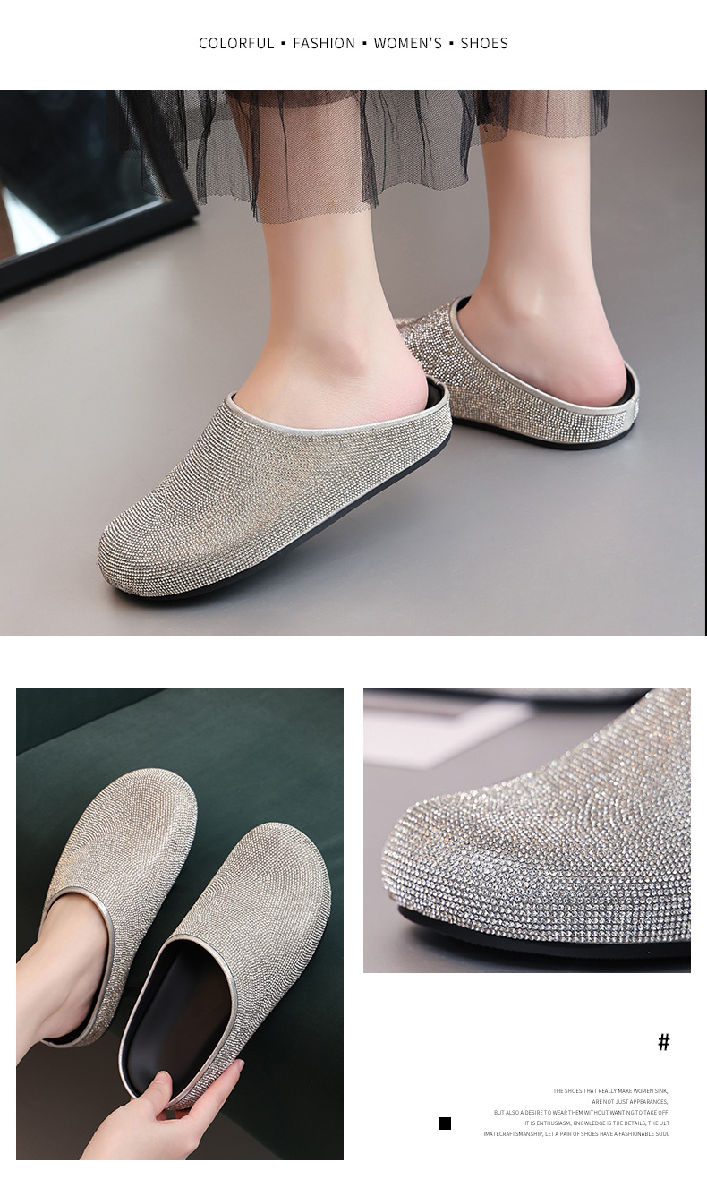 2025년 봄 신상 여성용 밑창과 앞코가 가득한 슬리퍼, 반짝이는 스타즈 디자인, 패셔너블한 워터 다이아몬드 플랫 샌들스토어 가기
