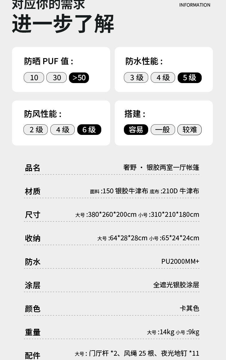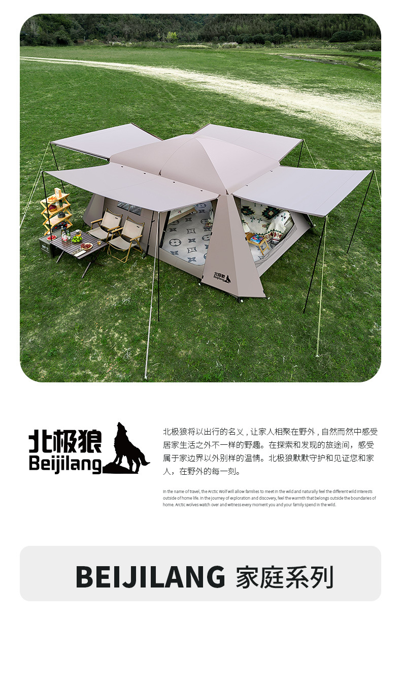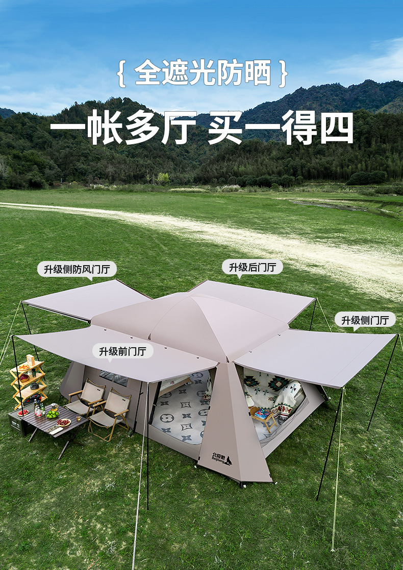 텐트 야외 캠핑 장비 공급 검은 고무 지붕 13 선 스크린 및 방비 2 개의 객실과 1 개의 홀 캠핑 하룻밤 텐트