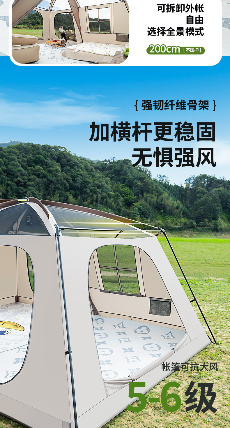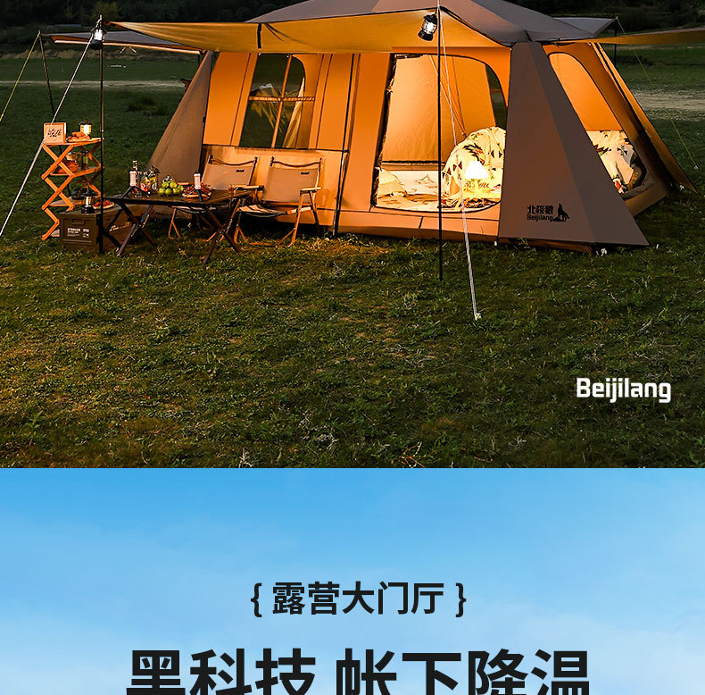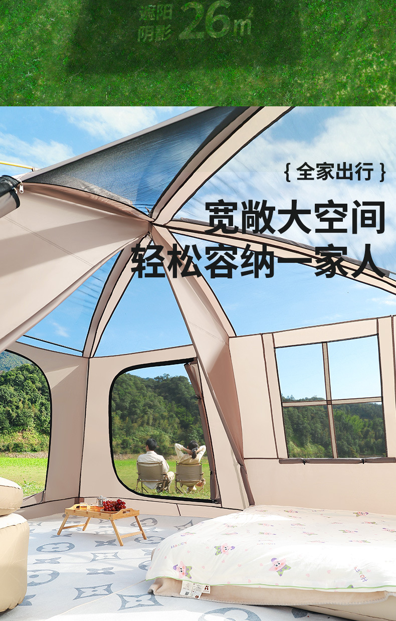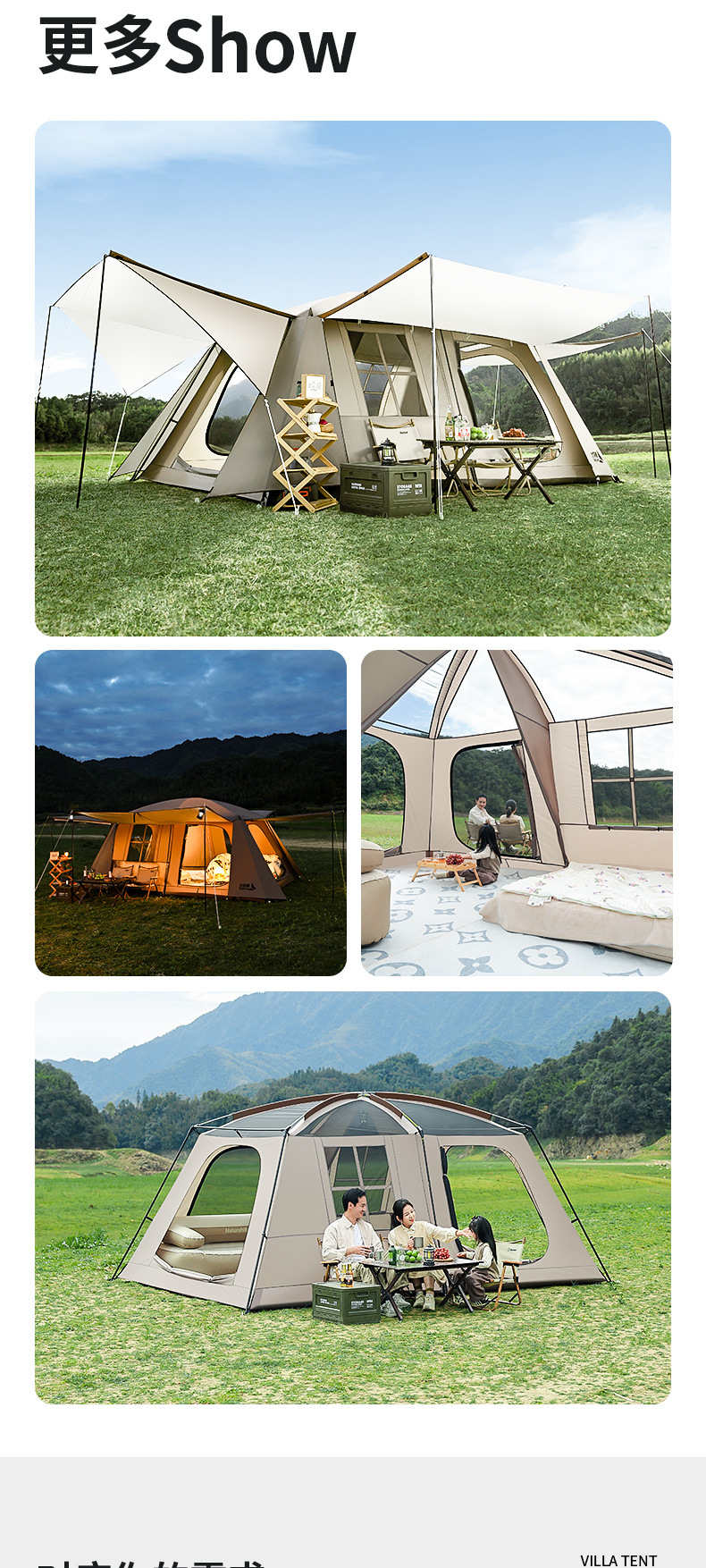 텐트 야외 캠핑 장비 공급 검은 고무 지붕 13 선 스크린 및 방비 2 개의 객실과 1 개의 홀 캠핑 하룻밤 텐트스토어 가기