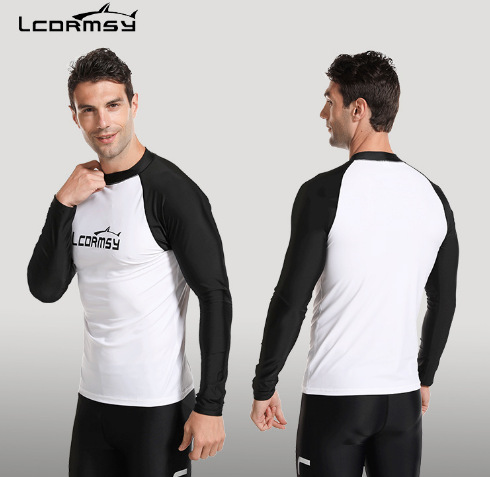 한국 랑첸 새로운 도착 다이빙 세트 남자 긴팔 크루 넥 선 스크린 슬림 핏 높은 탄성 수영복 스포츠 캐주얼 서핑 수트
