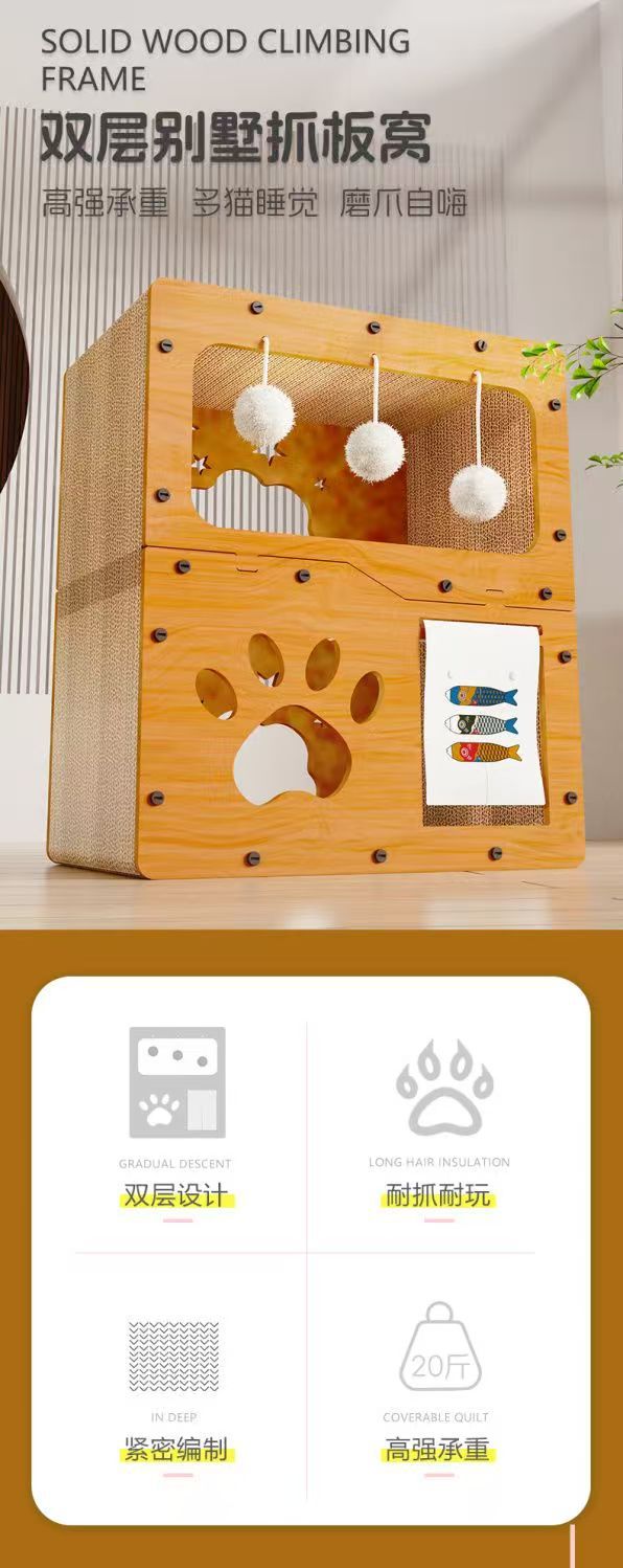 고양이 스크래치 보드 겸 고양이 집 일체형 골판지 교체 가능 3층 빌라 애완용품 새끼 고양이용 내구성 강한 스크래치 보드스토어 가기