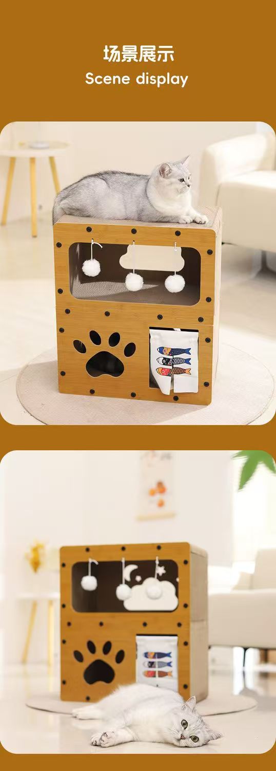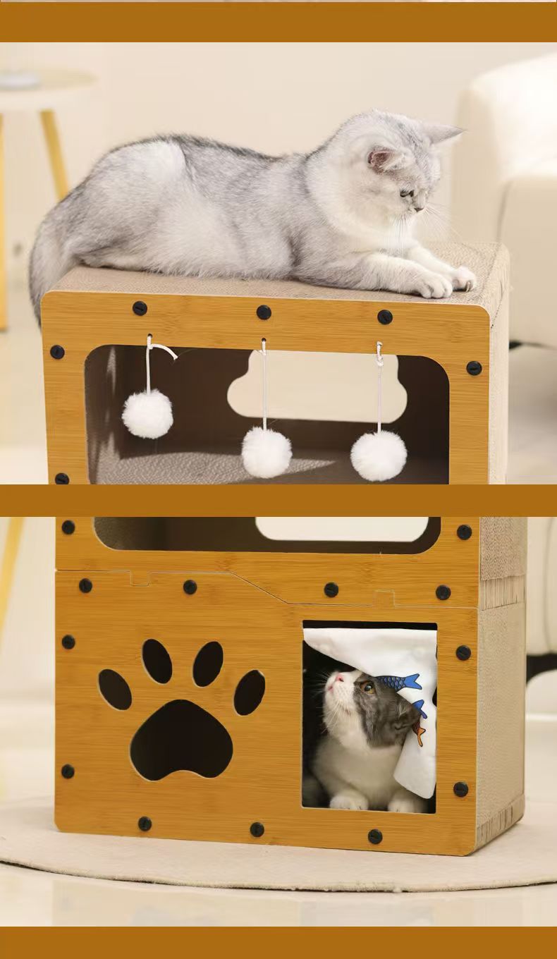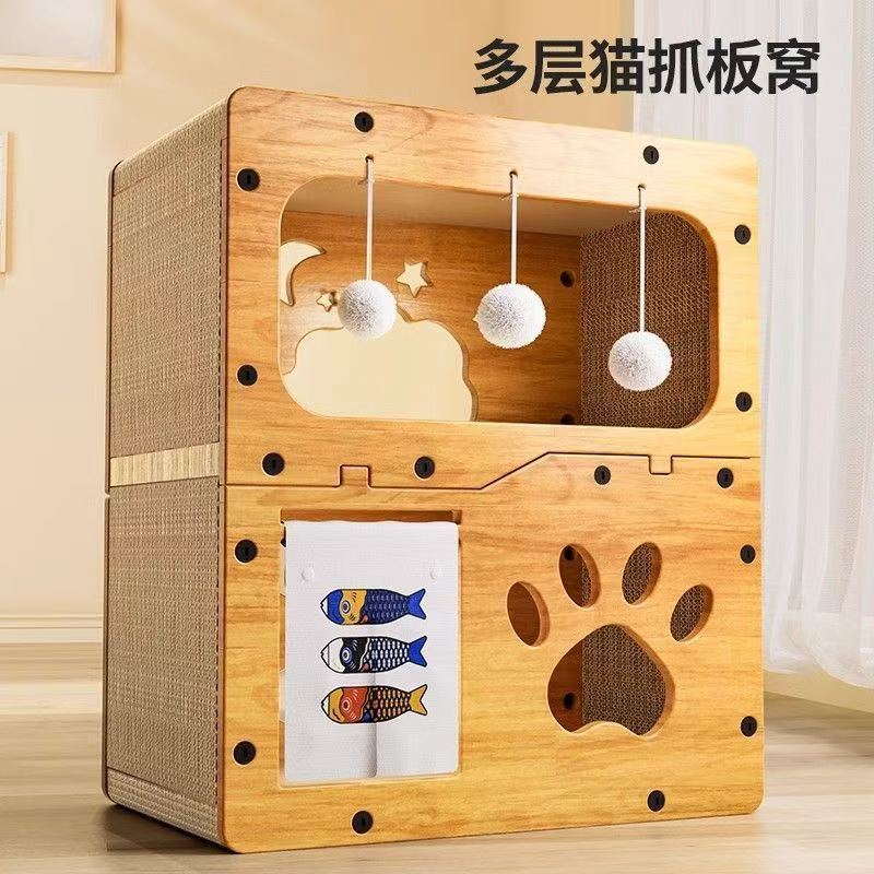 고양이 스크래치 보드 겸 고양이 집 일체형 골판지 교체 가능 3층 빌라 애완용품 새끼 고양이용 내구성 강한 스크래치 보드