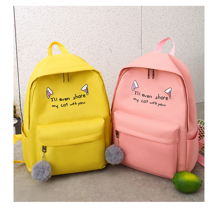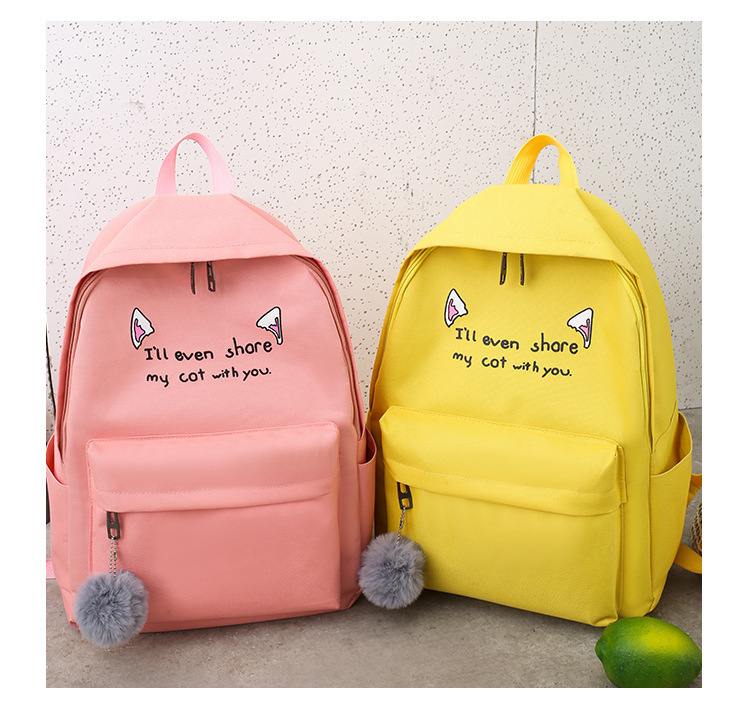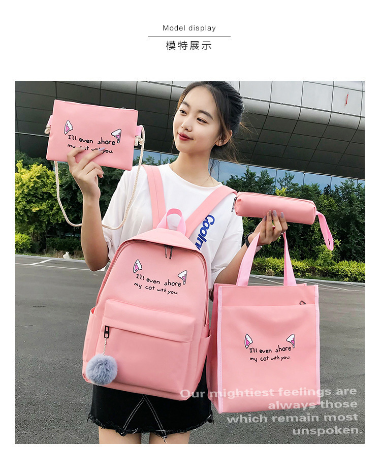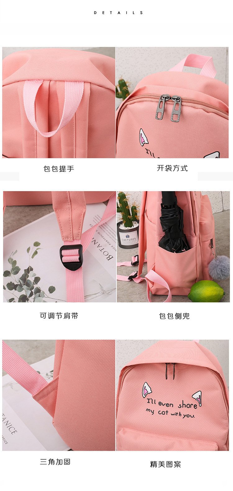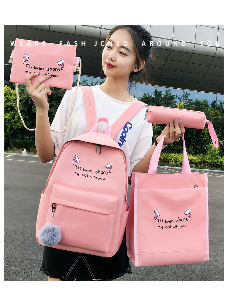 2023 봄과 여름 새로운 여성 배낭 패션 4 피스 캔버스 고양이 귀 배낭 학생 Schoolbag