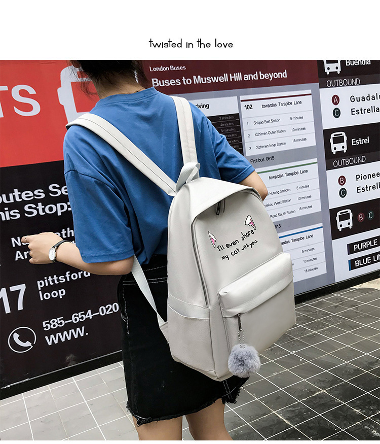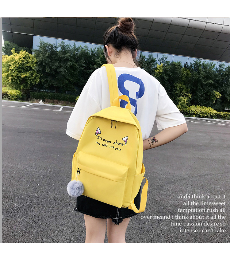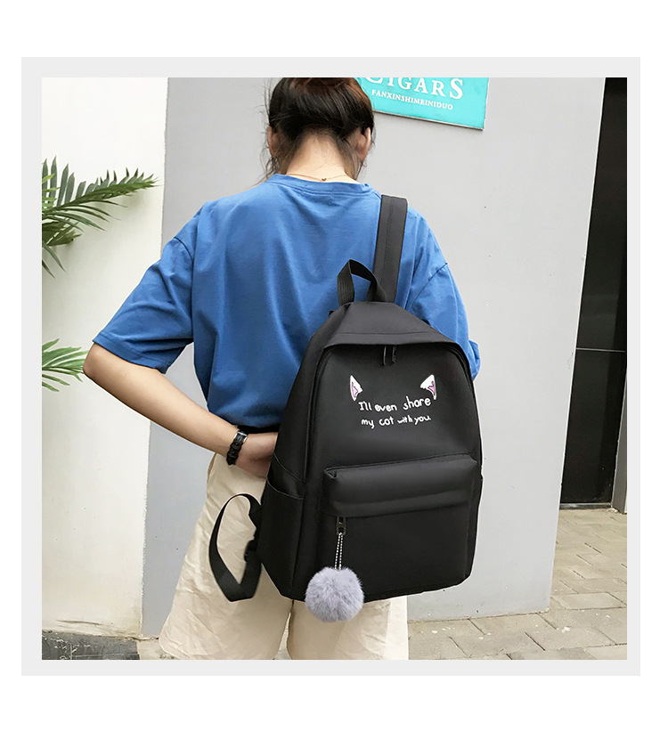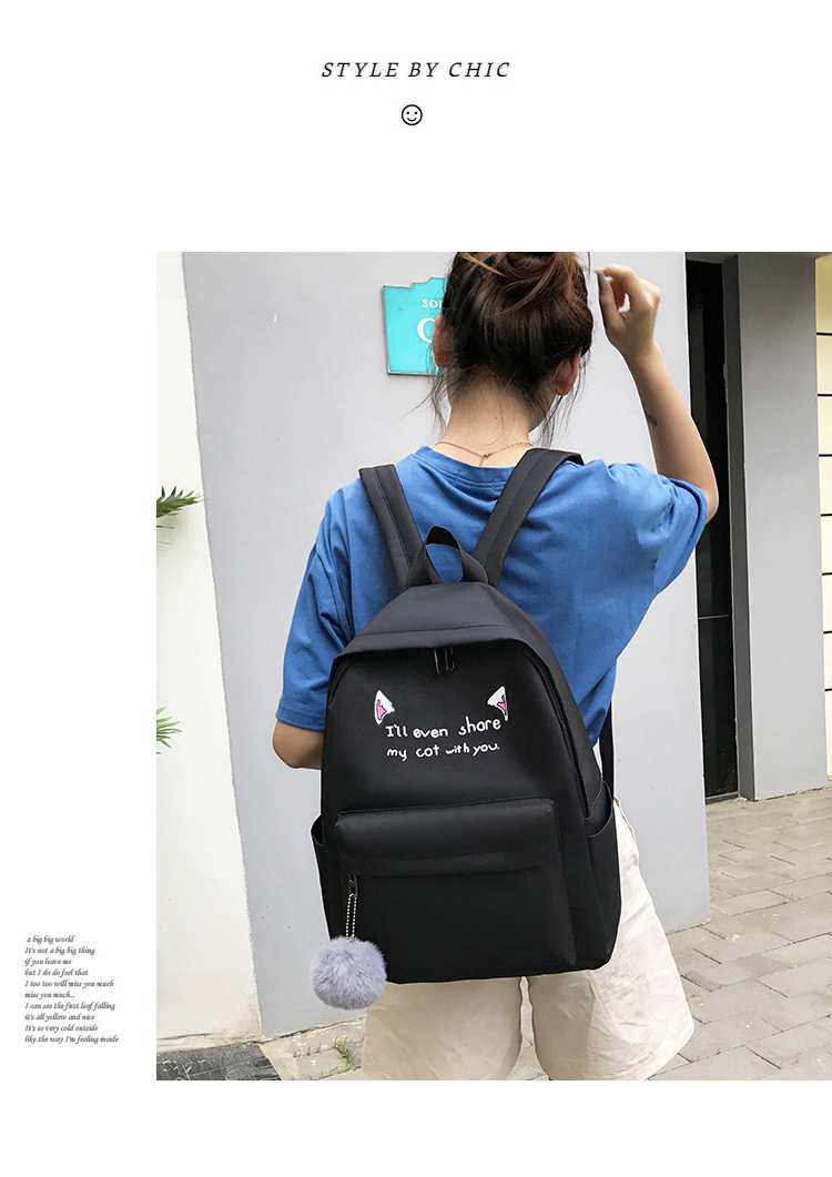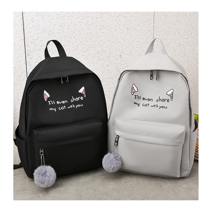 2023 봄과 여름 새로운 여성 배낭 패션 4 피스 캔버스 고양이 귀 배낭 학생 Schoolbag