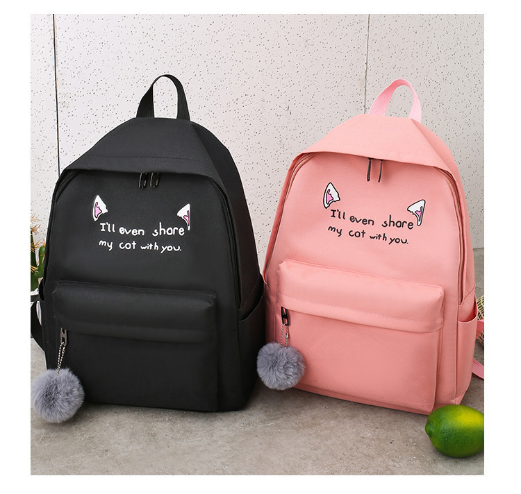 2023 봄과 여름 새로운 여성 배낭 패션 4 피스 캔버스 고양이 귀 배낭 학생 Schoolbag스토어 가기