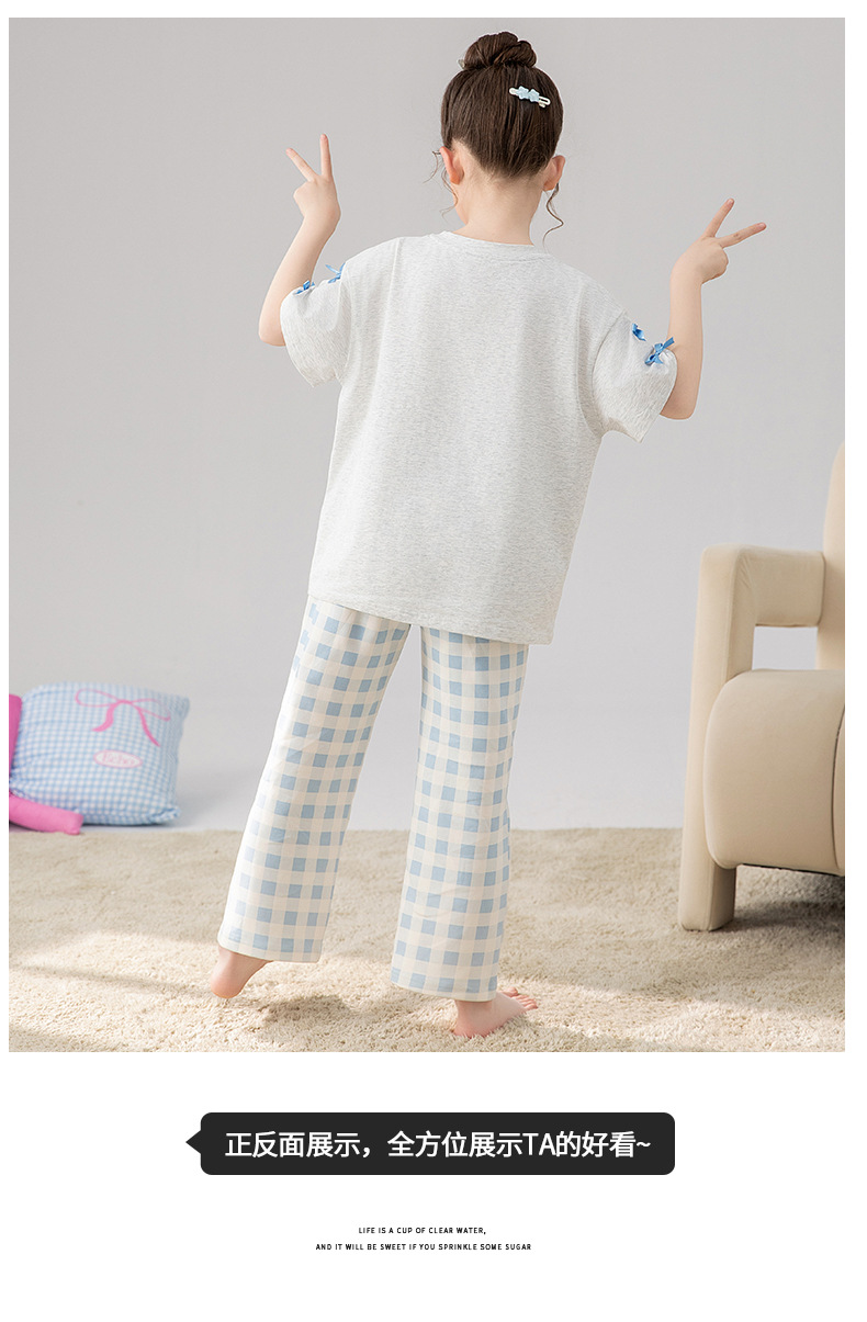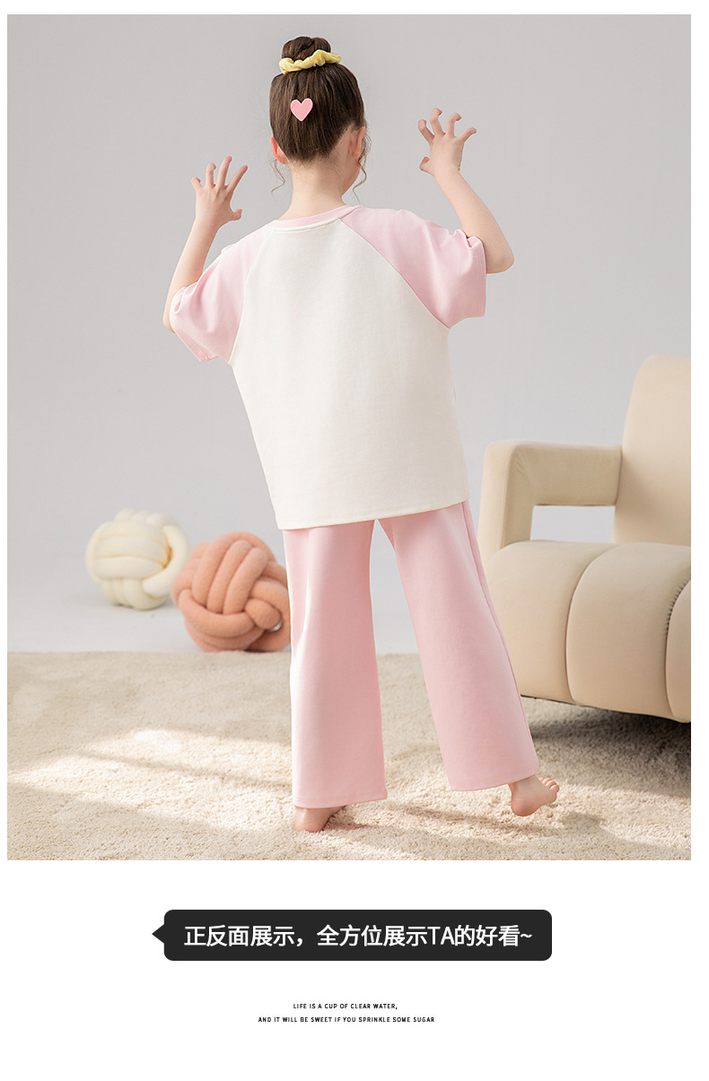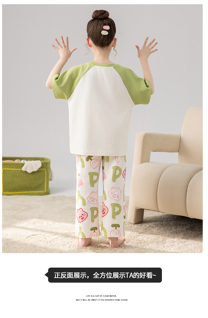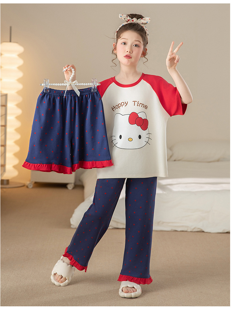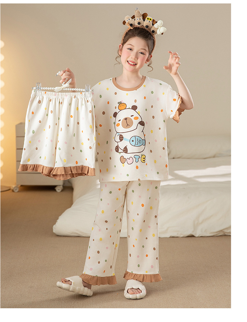어린이 잠옷 소녀 여름 면 3 종 세트 2025 새 소녀의 얇은 반팔 바지 홈 옷 봄 옷