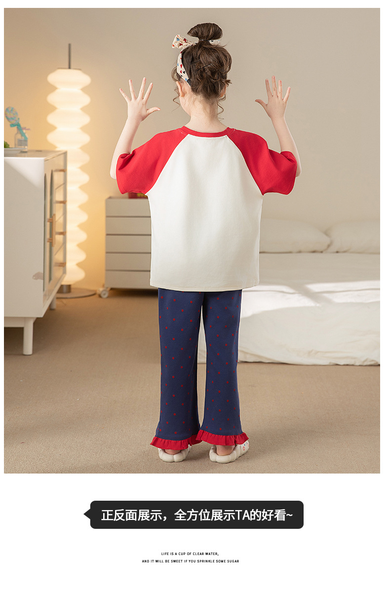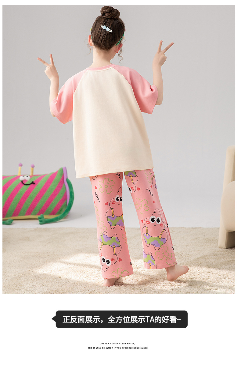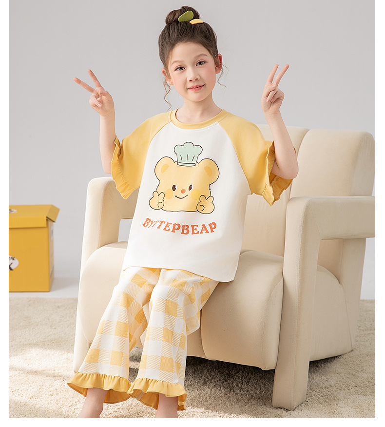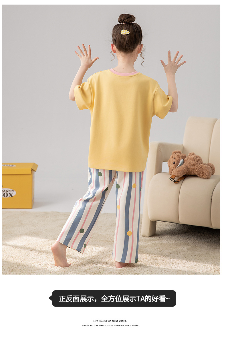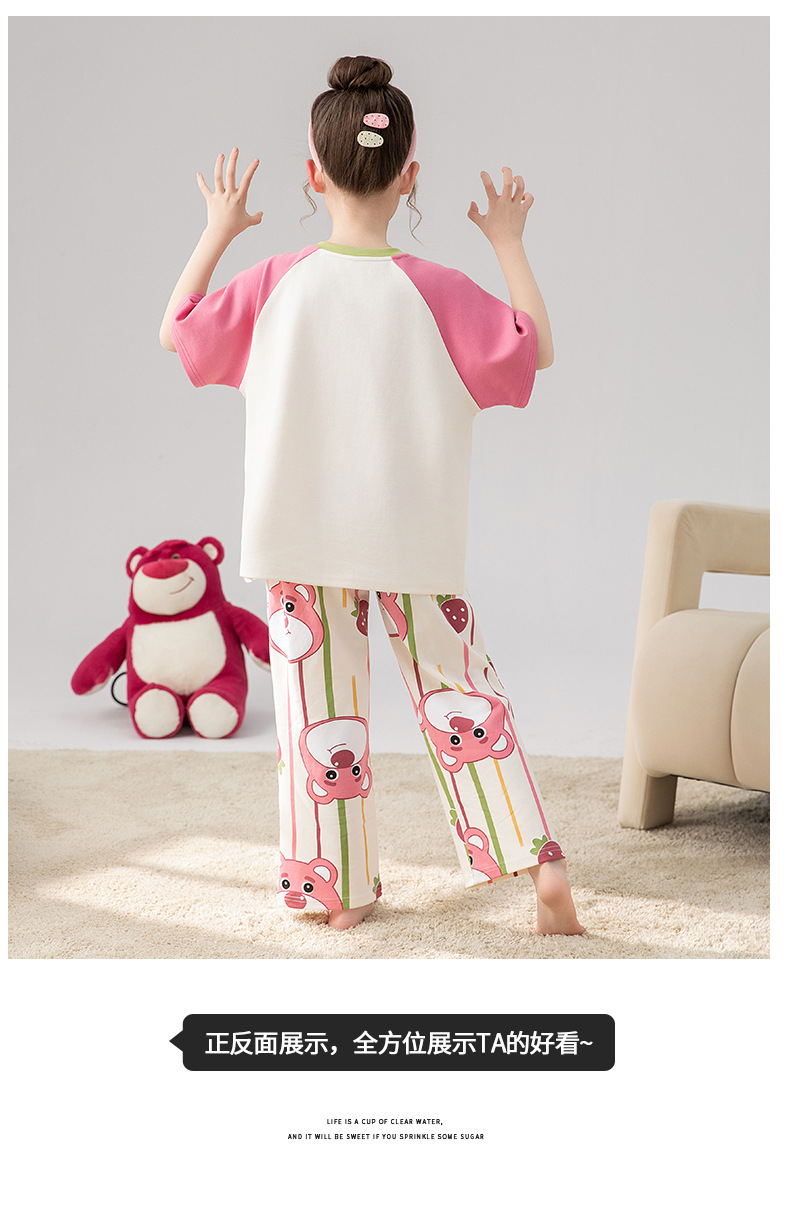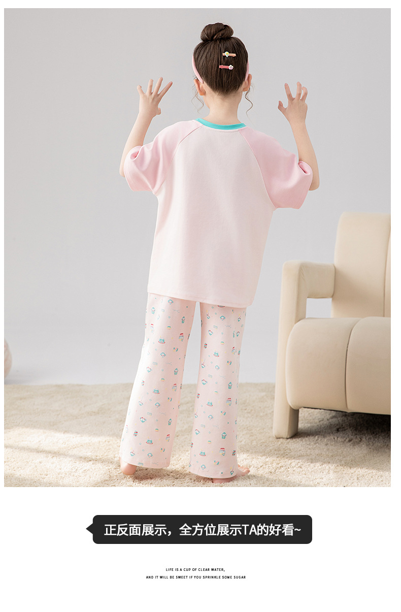 어린이 잠옷 소녀 여름 면 3 종 세트 2025 새 소녀의 얇은 반팔 바지 홈 옷 봄 옷