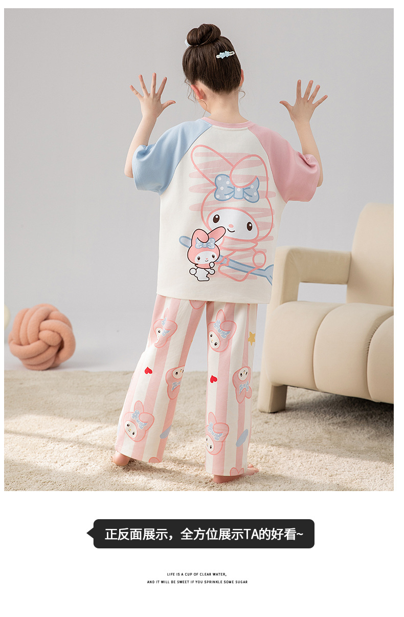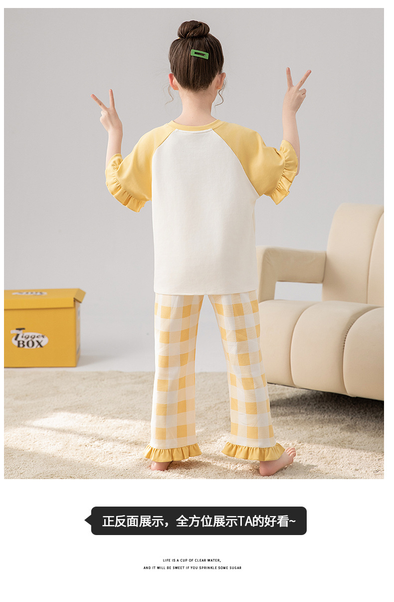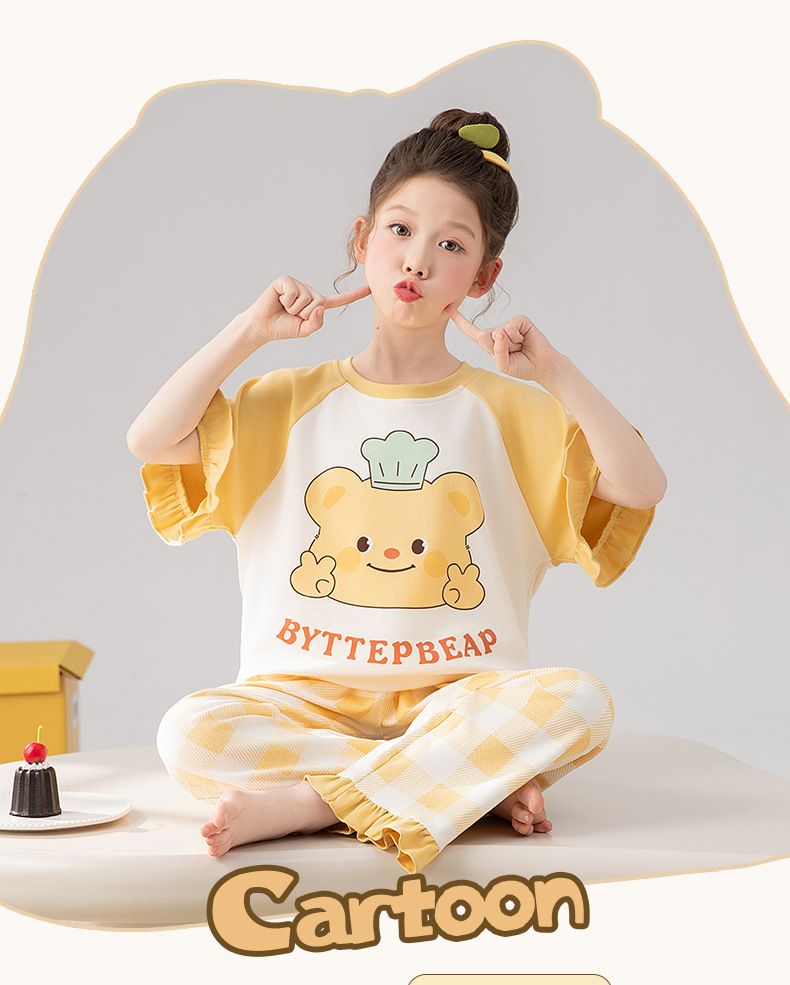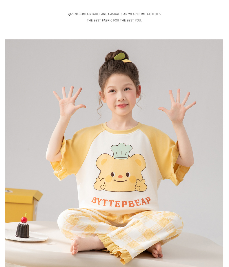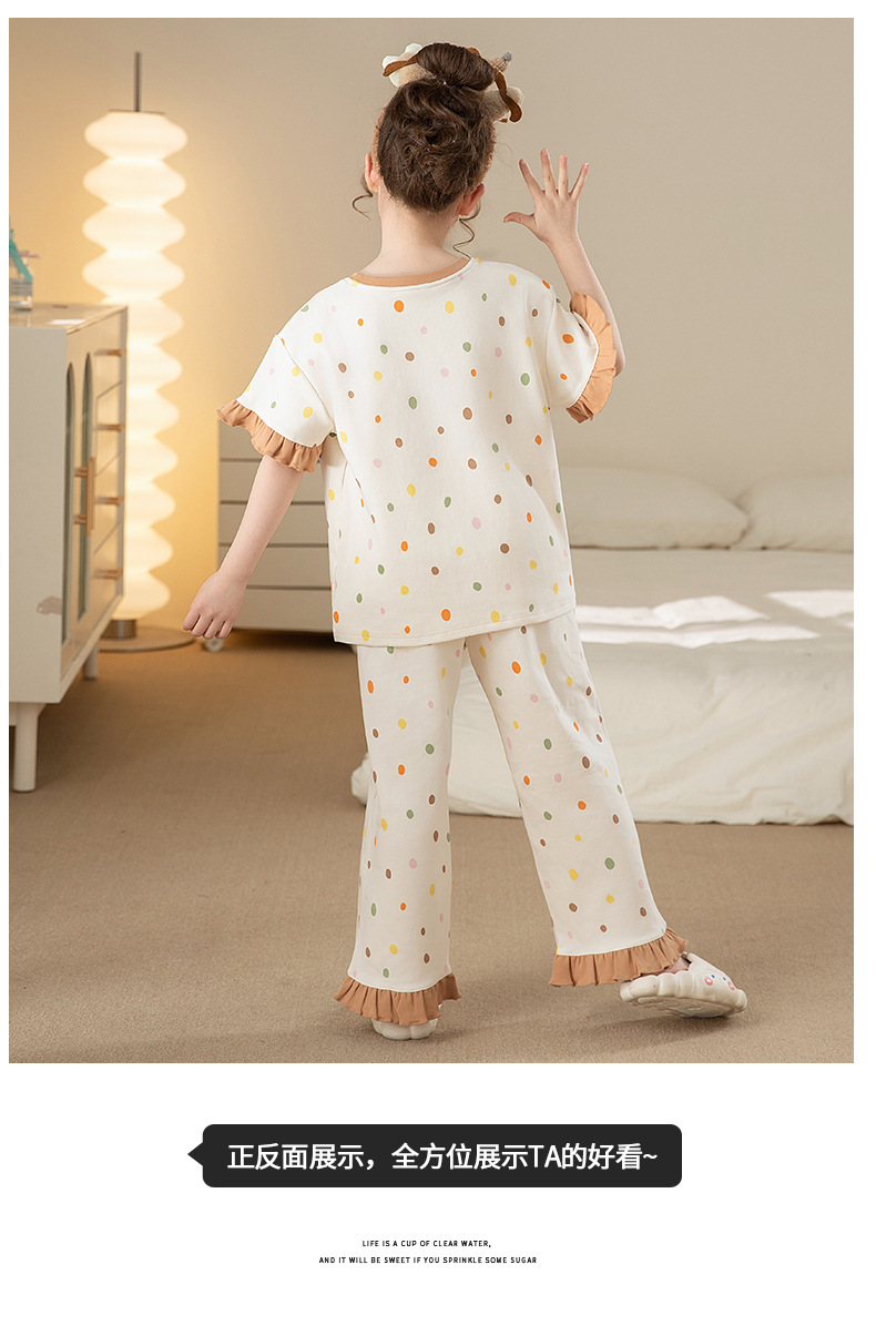 어린이 잠옷 소녀 여름 면 3 종 세트 2025 새 소녀의 얇은 반팔 바지 홈 옷 봄 옷