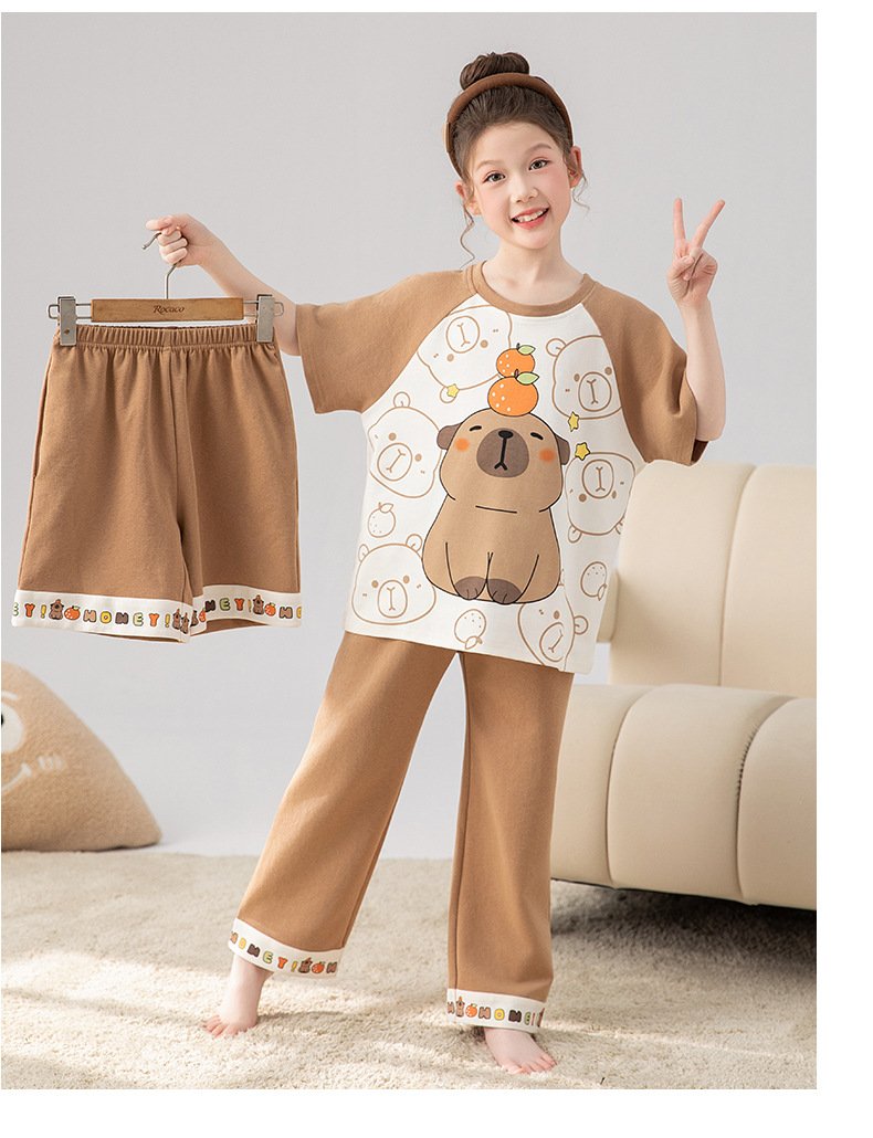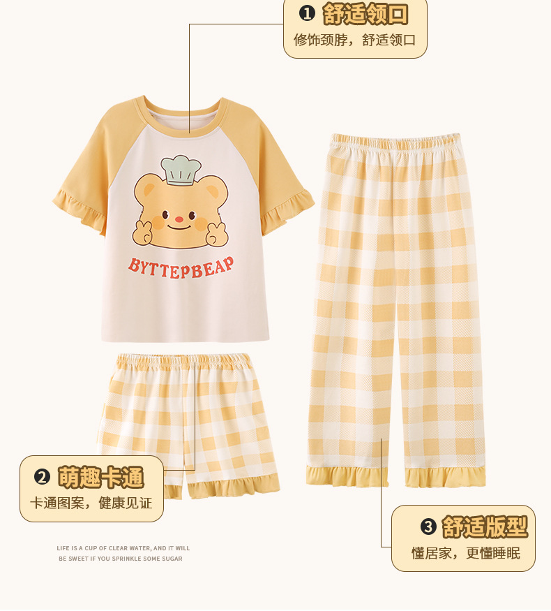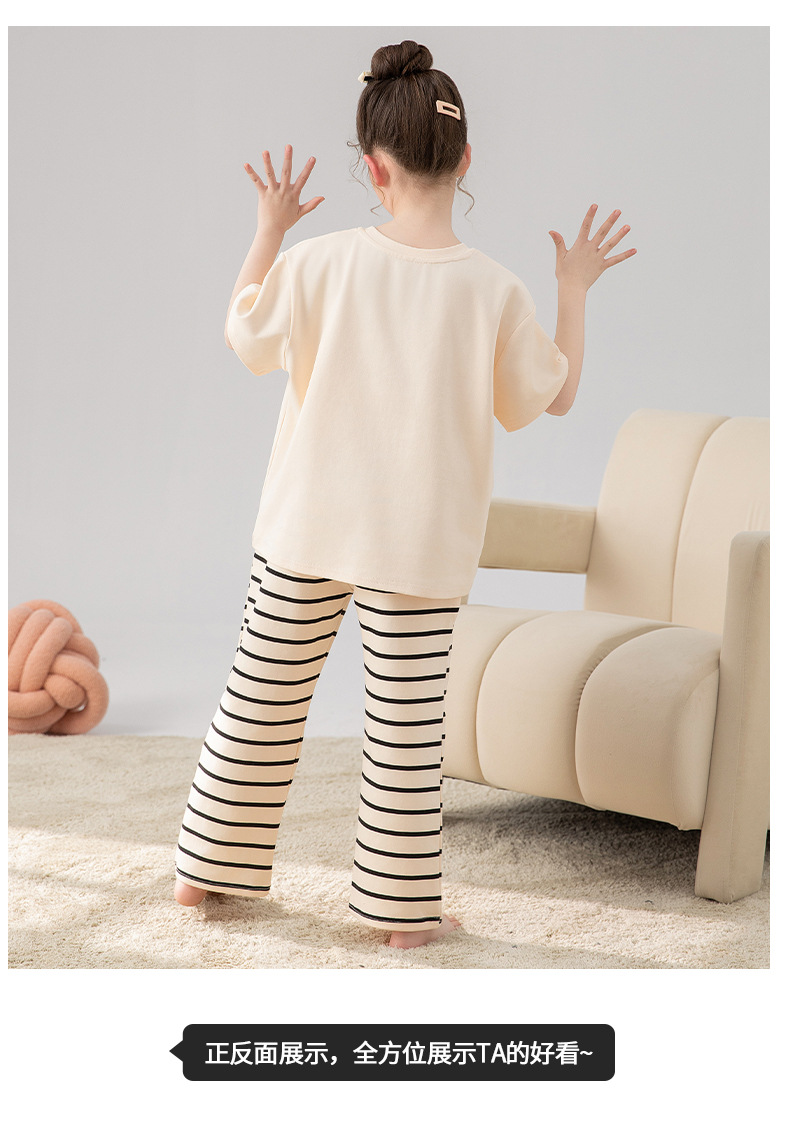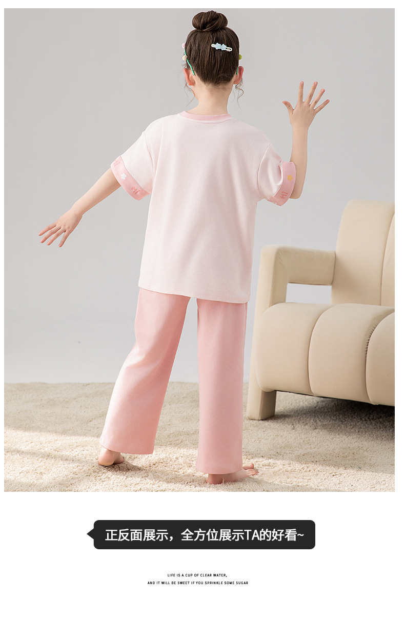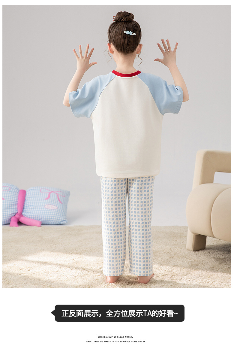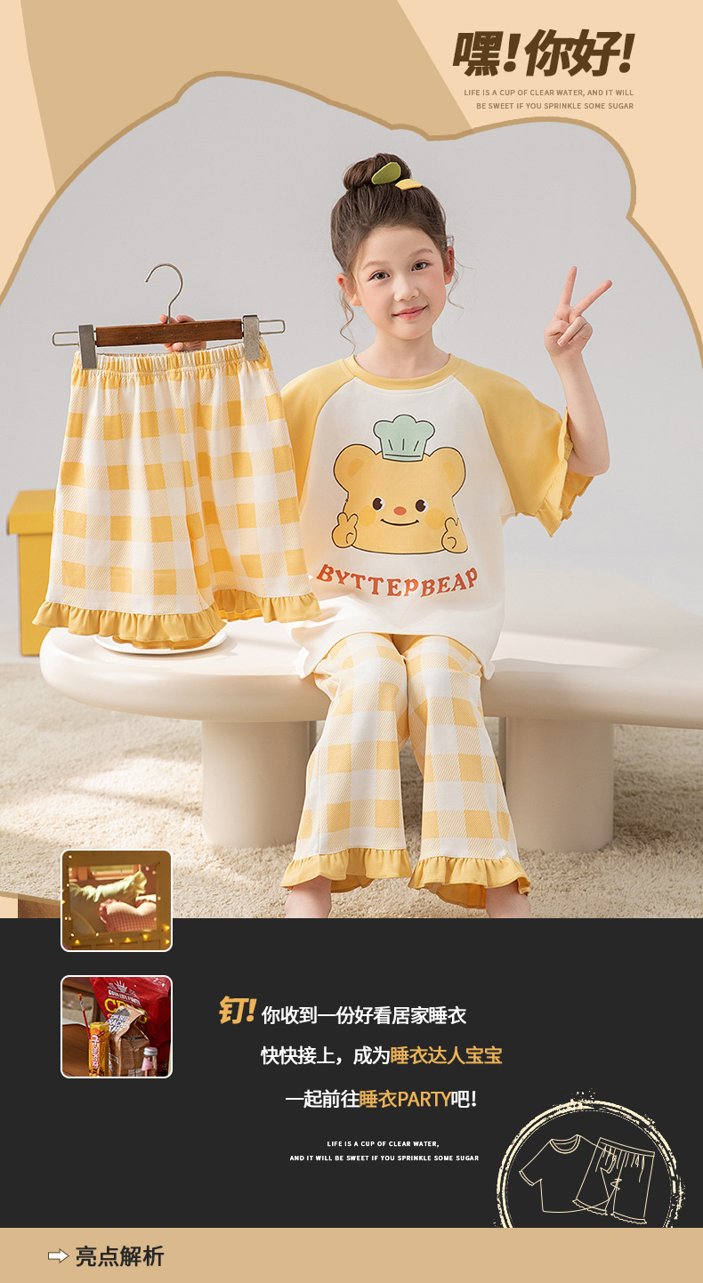 어린이 잠옷 소녀 여름 면 3 종 세트 2025 새 소녀의 얇은 반팔 바지 홈 옷 봄 옷스토어 가기