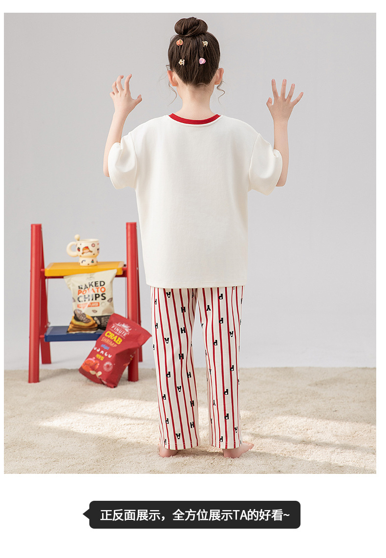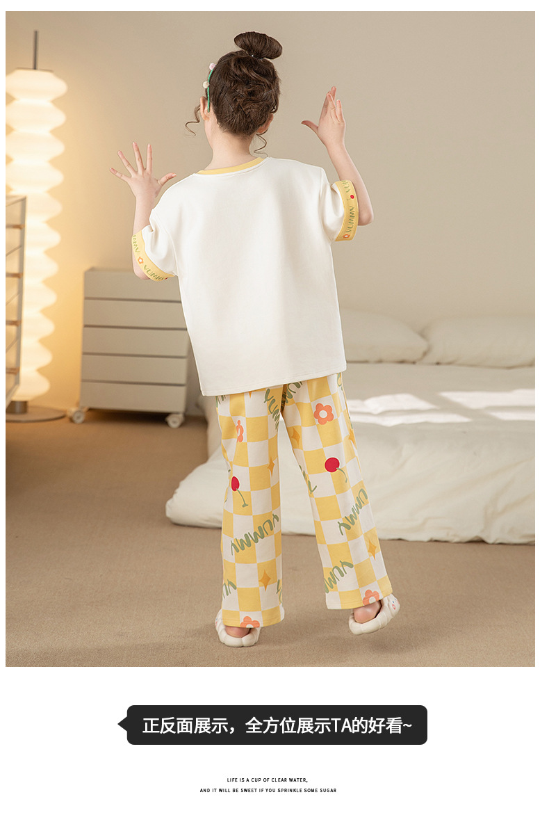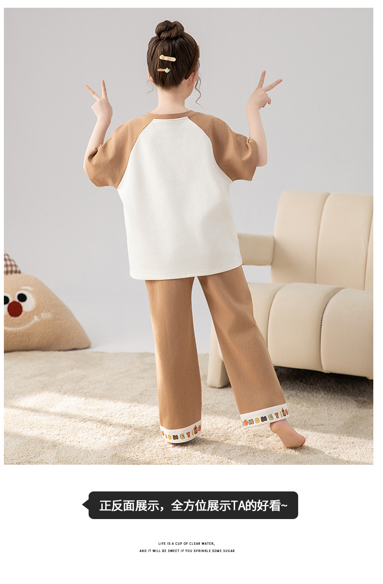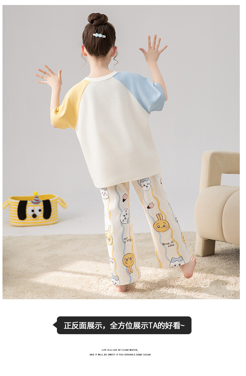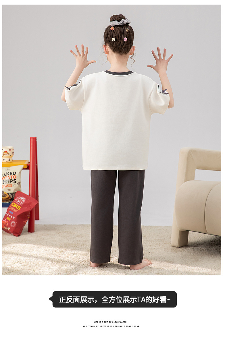 어린이 잠옷 소녀 여름 면 3 종 세트 2025 새 소녀의 얇은 반팔 바지 홈 옷 봄 옷스토어 가기