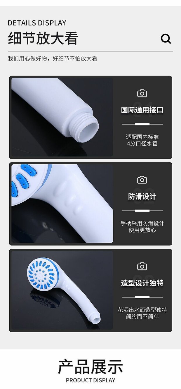 욕실 온수기 샤워 헤드 샤워 헤드 샤워 헤드 핸드 헬드 샤워 헤드 욕조 싱글 헤드 단일 기능 탈착식 및 빨 수있는 흰색
