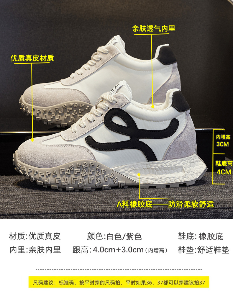 7CM ~ 내부 높이 포레스트 검프 신발 여성의 2025 새로운 봄과 여름 작은 두꺼운 바닥 캐주얼 토레 스포츠 훈련 여성 신발스토어 가기
