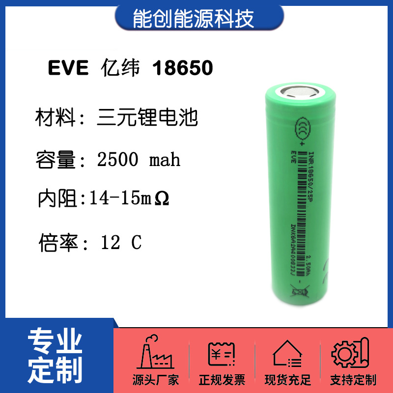 18650 리튬 배터리 EVE 2500mah 12C 전원 전기 자동차 전동 공구 시작 전원 공급 장치