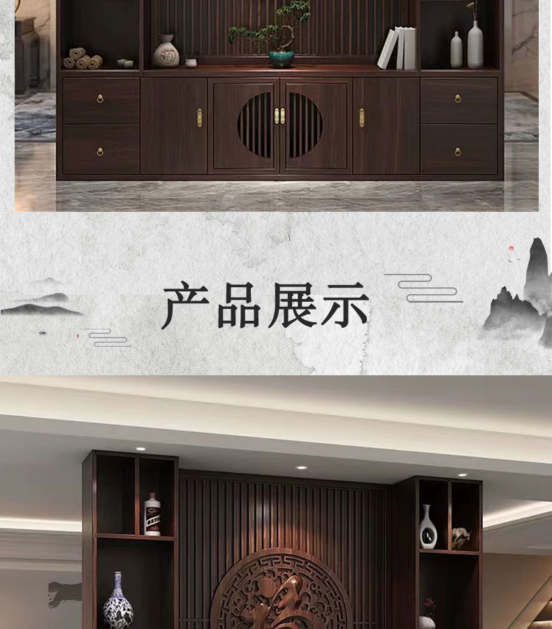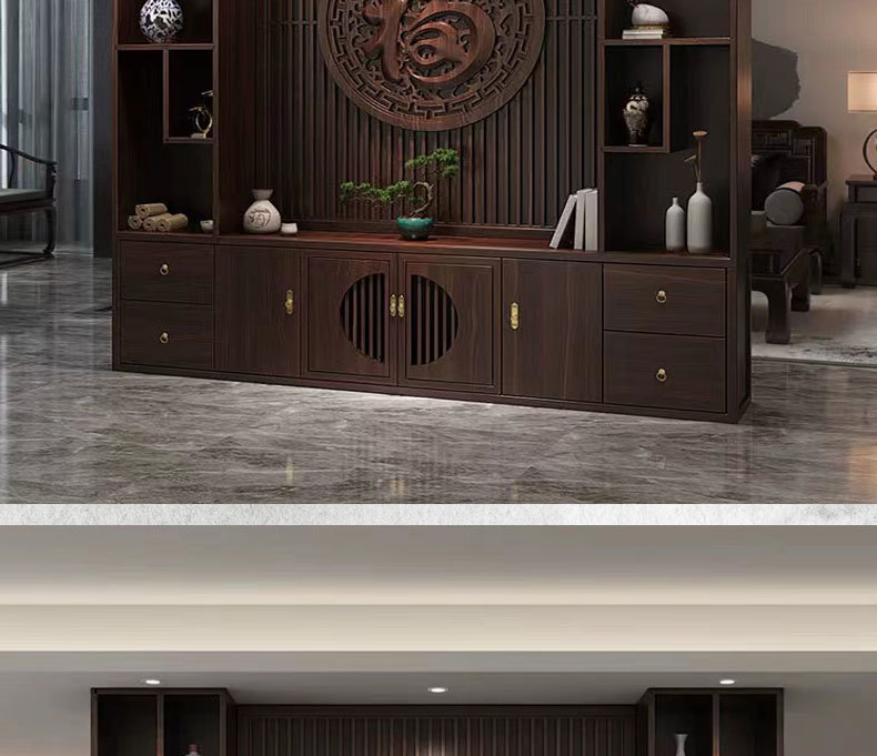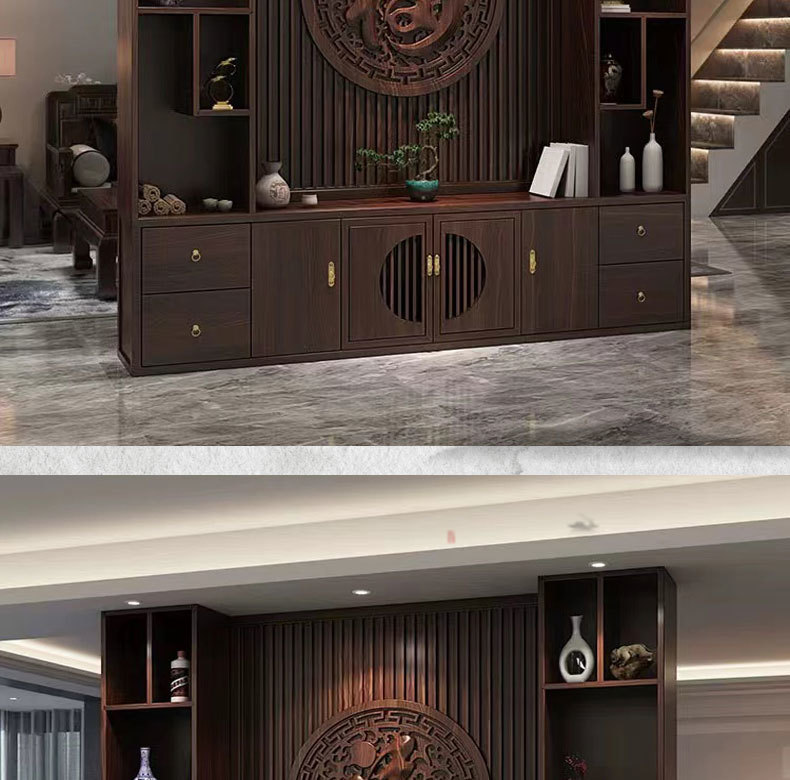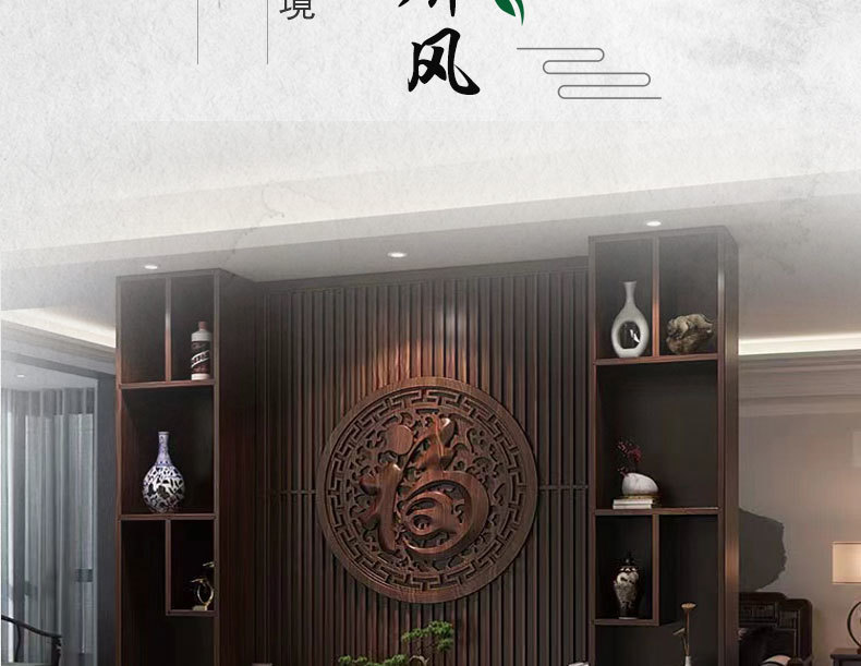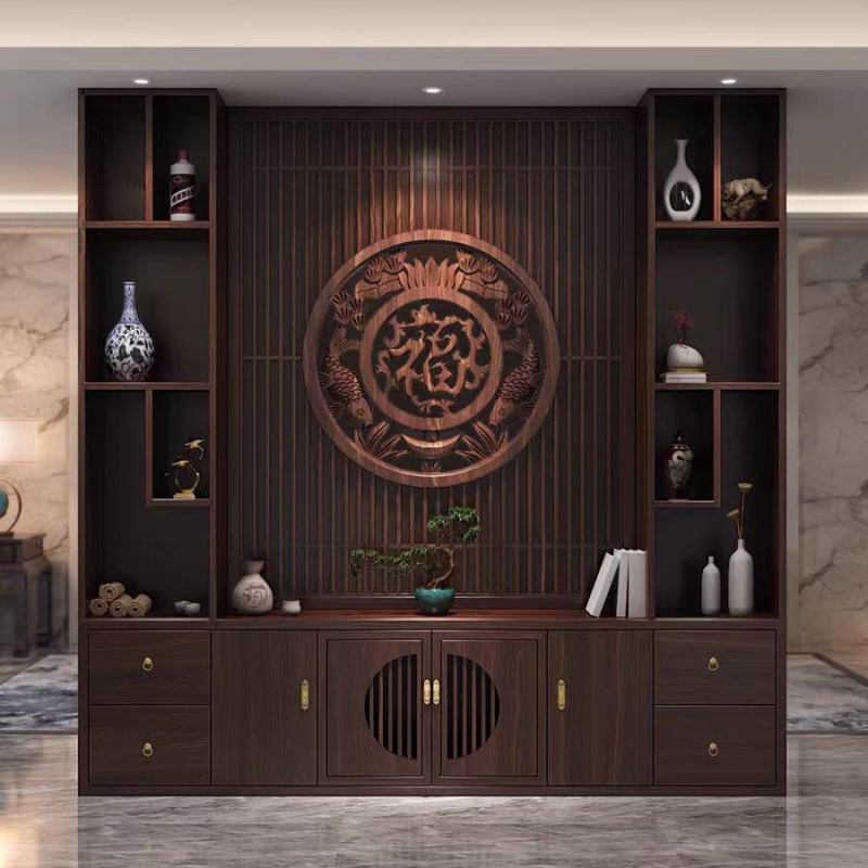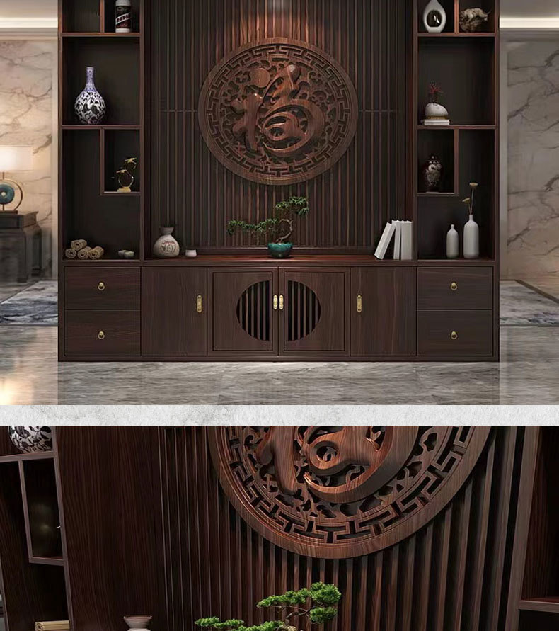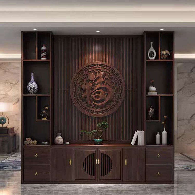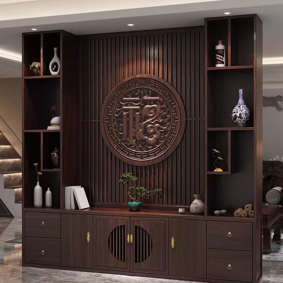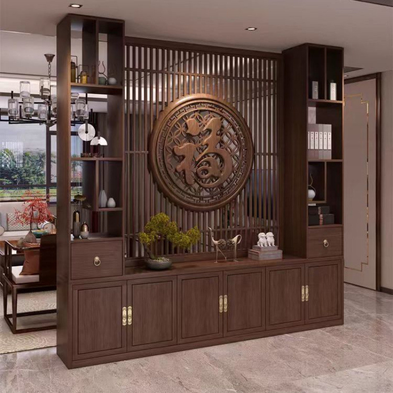 새로운 중국 스타일 솔리드 우드 스크린 거실 파티션 입구 캐비닛 차폐 푸 캐릭터 구호 새로운 하이 엔드 스토리지 랙