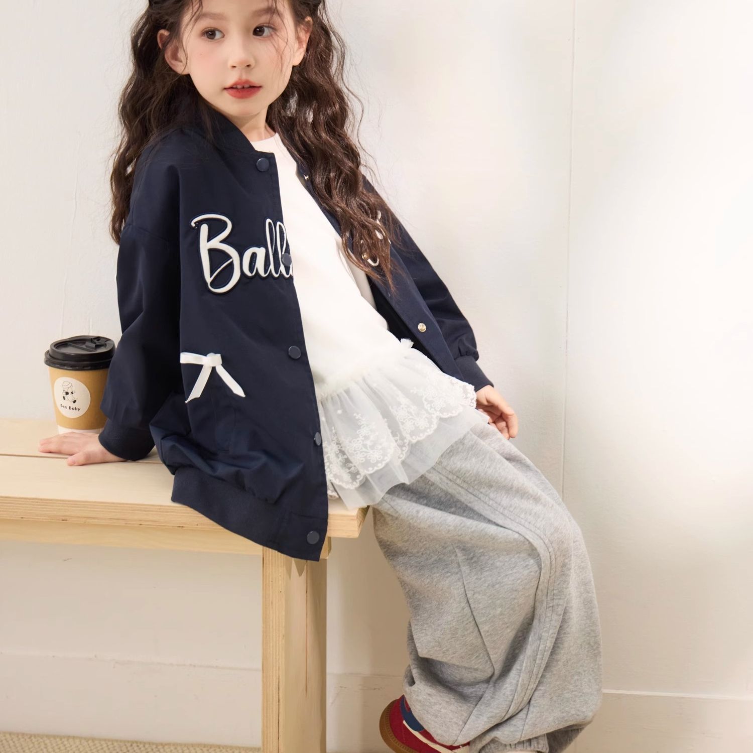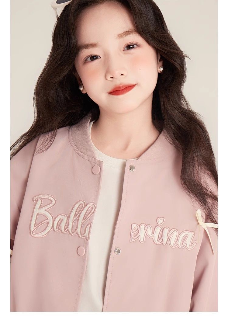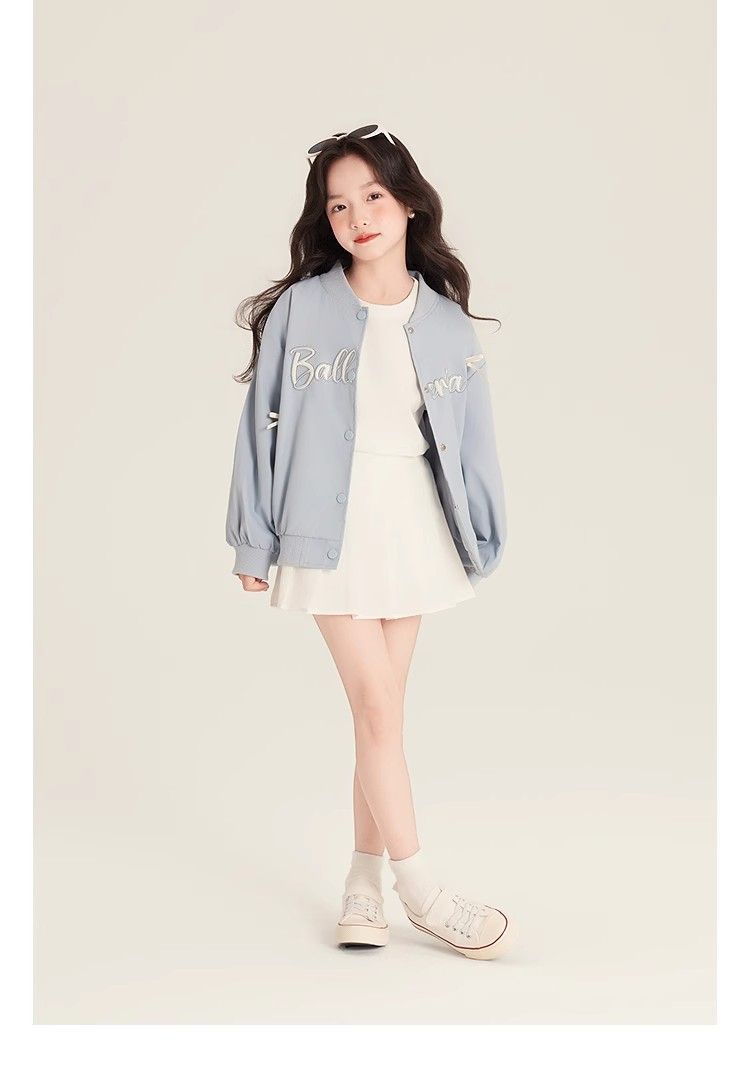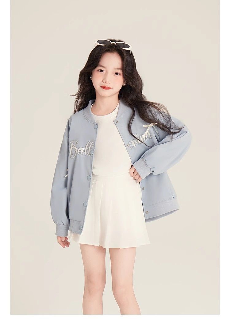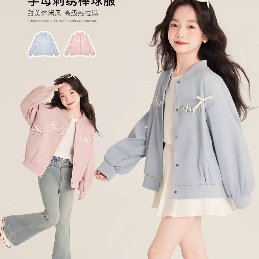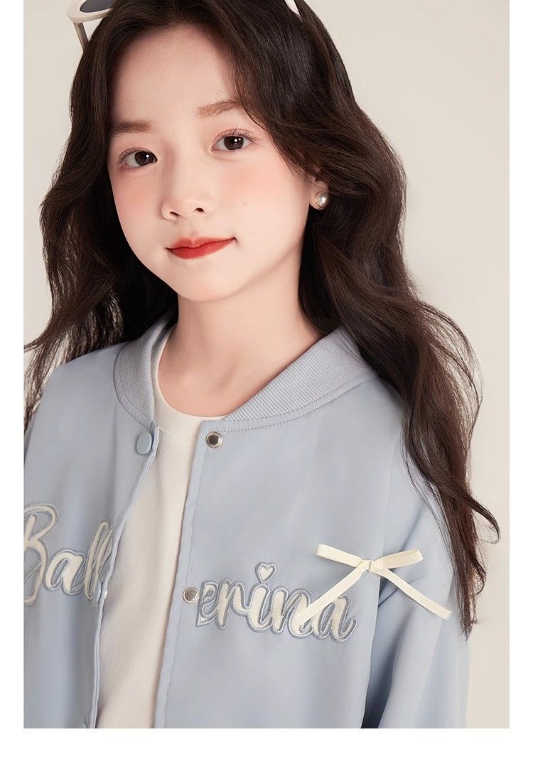 소녀 탑 여름 2025 새로운 한국식 편지 자수 달콤한 활 야구 세트 중 · 빅 키즈 코트 트렌디