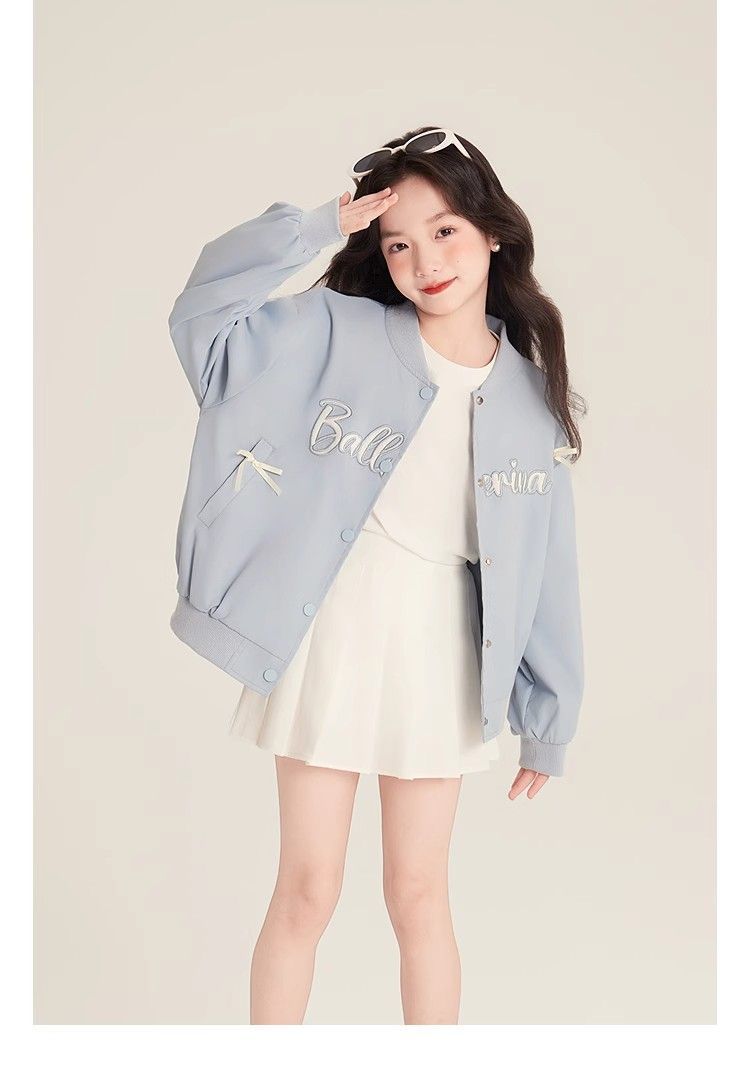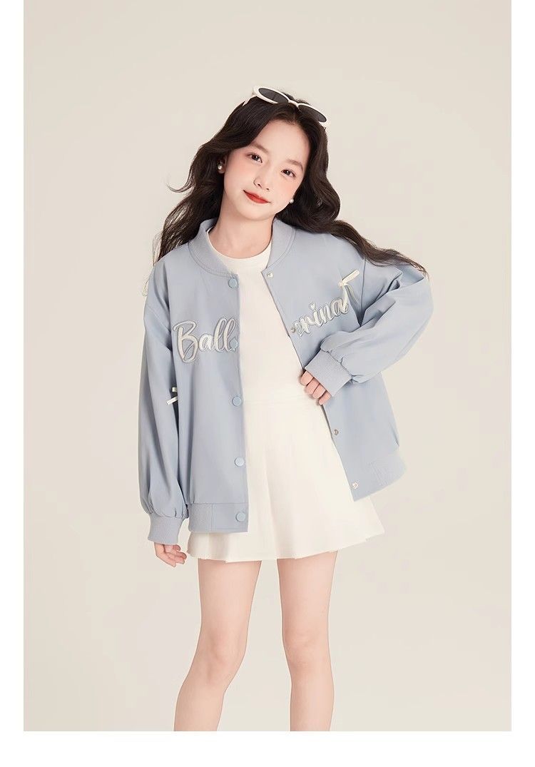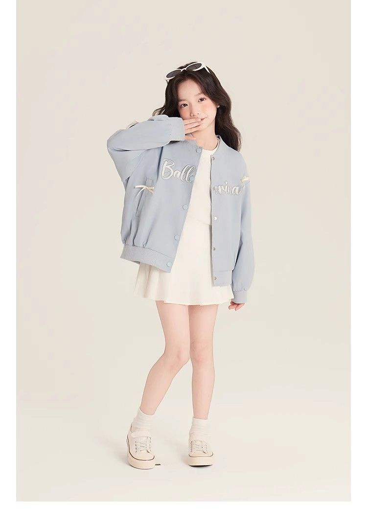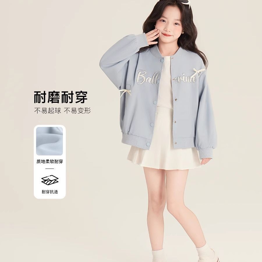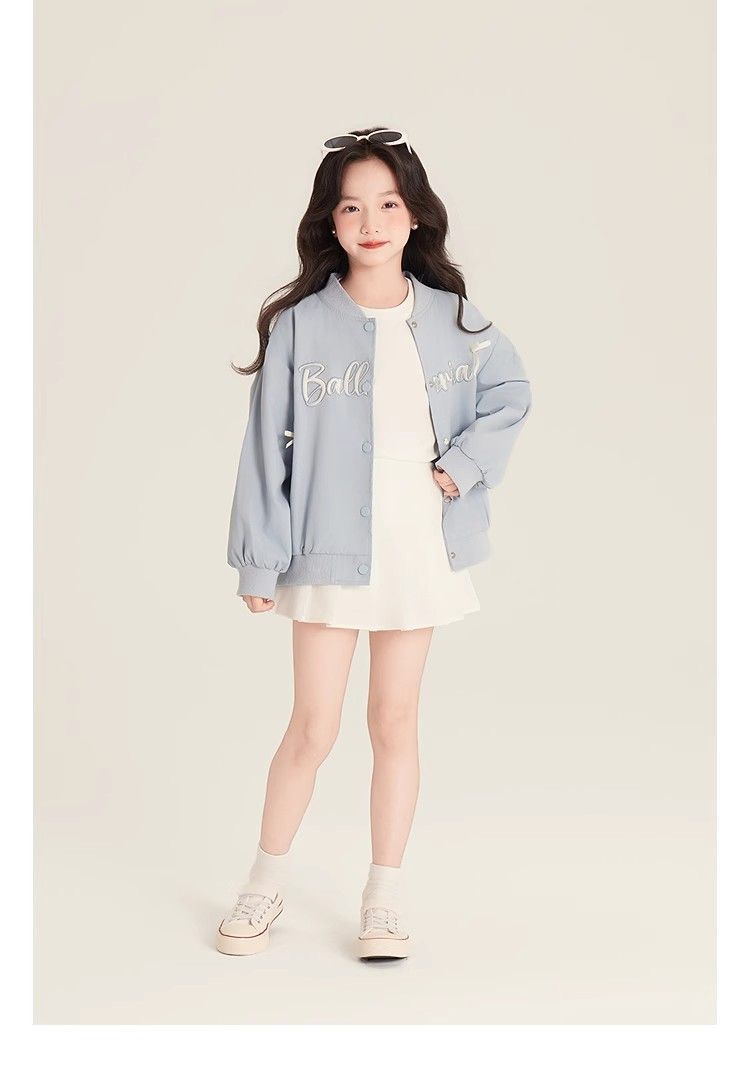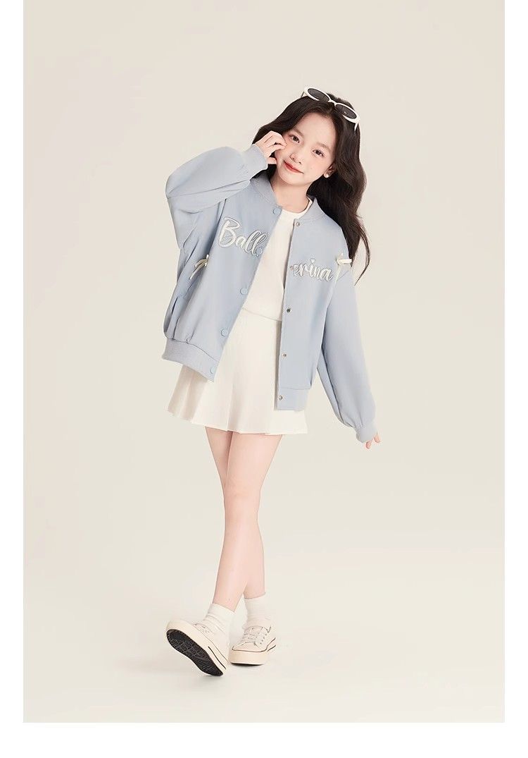 소녀 탑 여름 2025 새로운 한국식 편지 자수 달콤한 활 야구 세트 중 · 빅 키즈 코트 트렌디