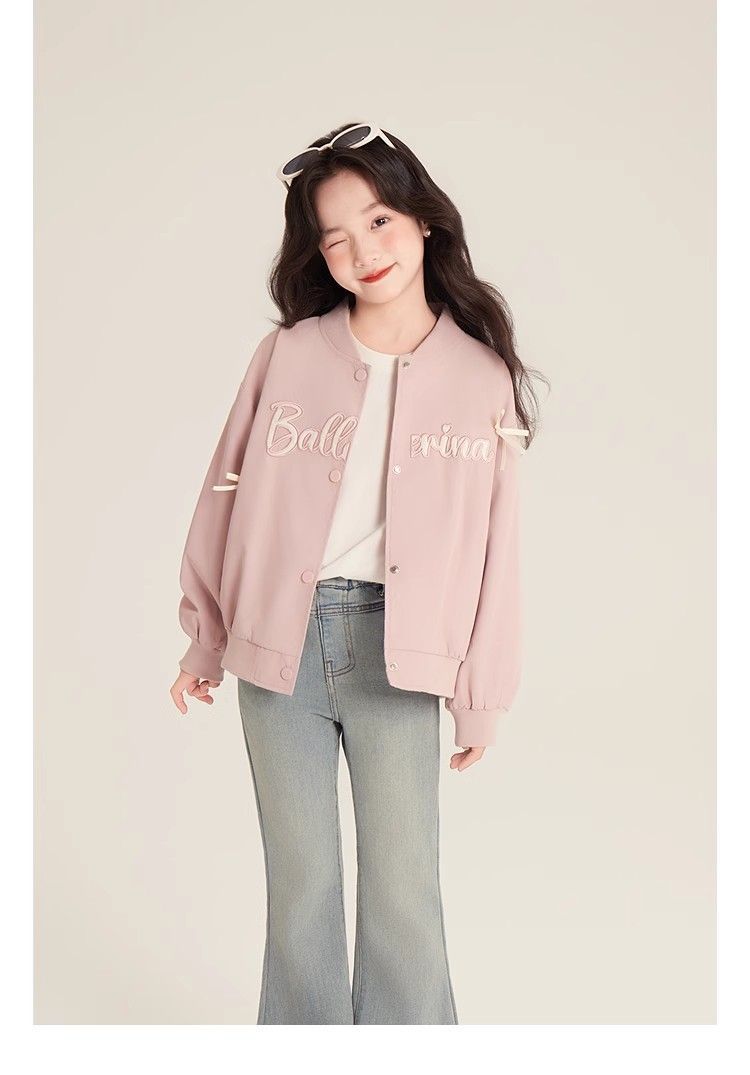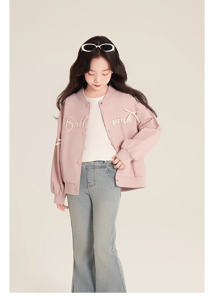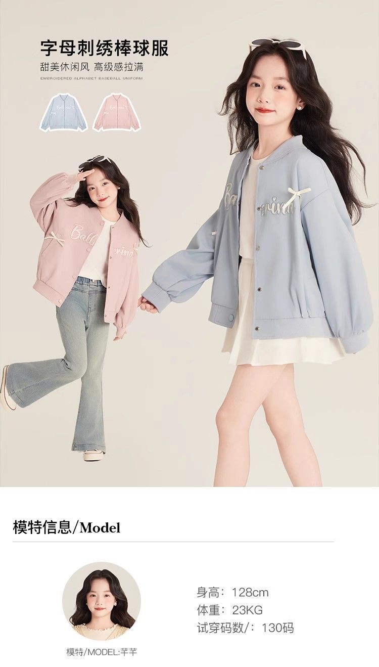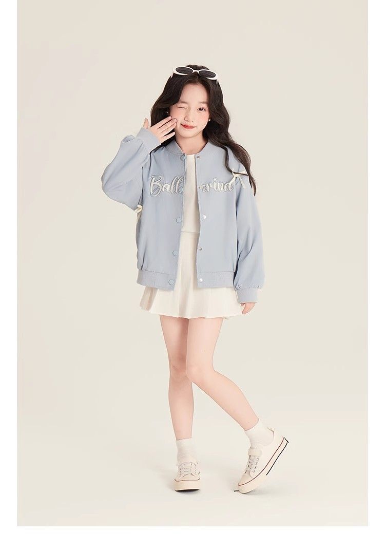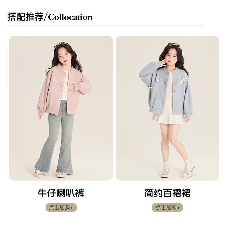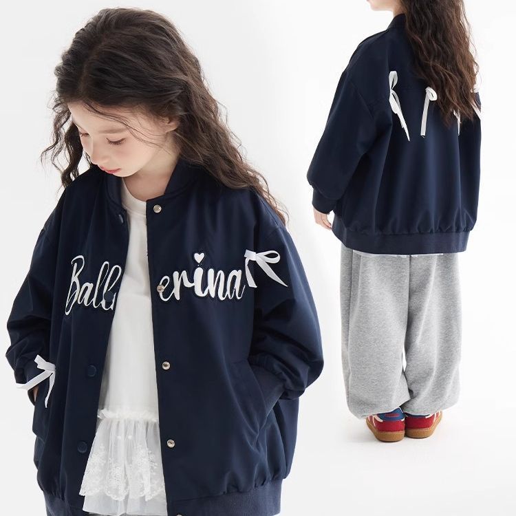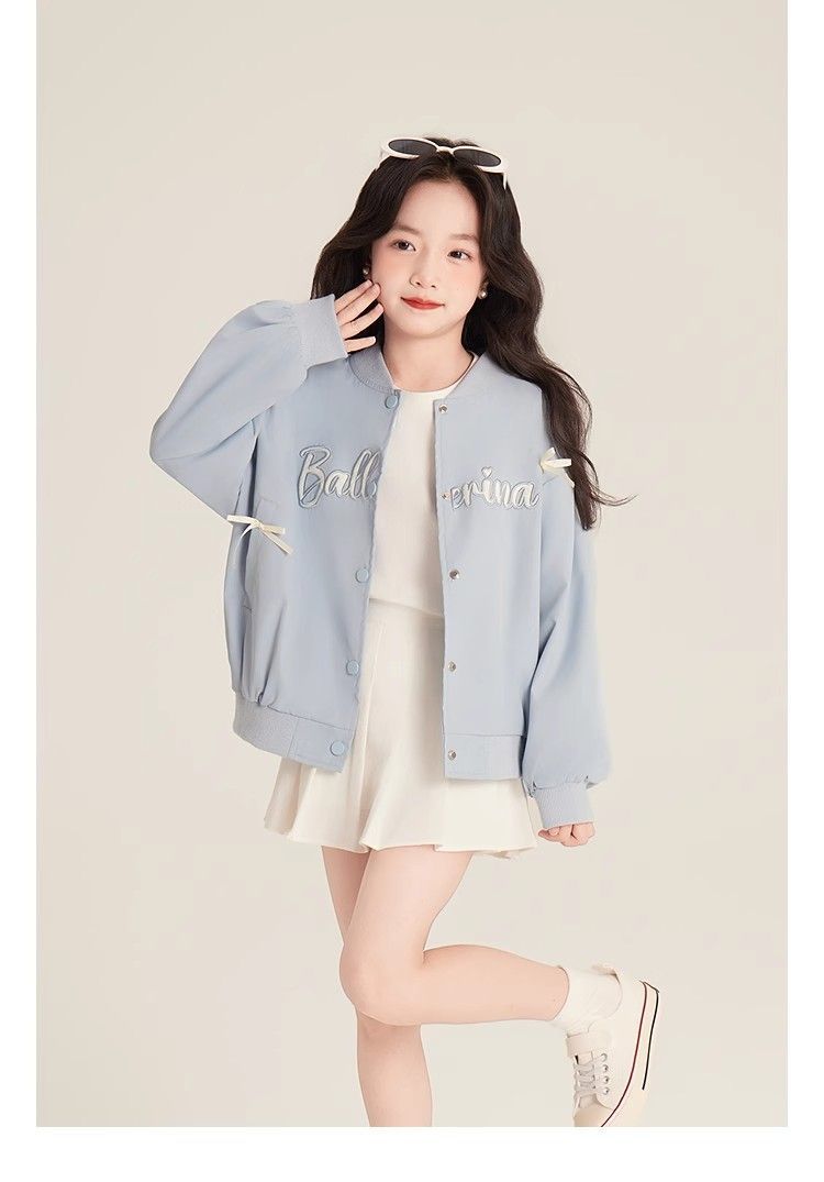 소녀 탑 여름 2025 새로운 한국식 편지 자수 달콤한 활 야구 세트 중 · 빅 키즈 코트 트렌디