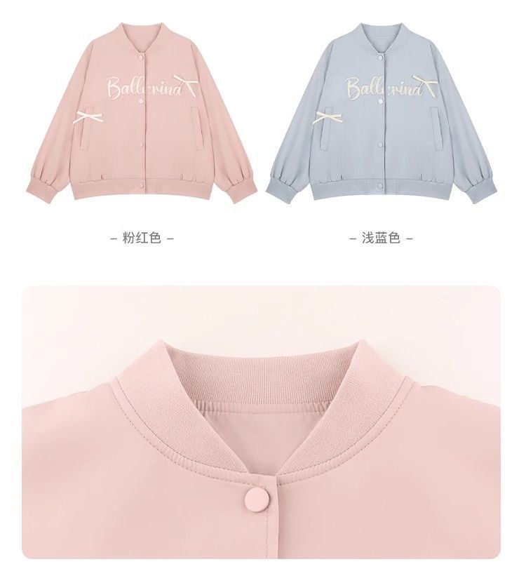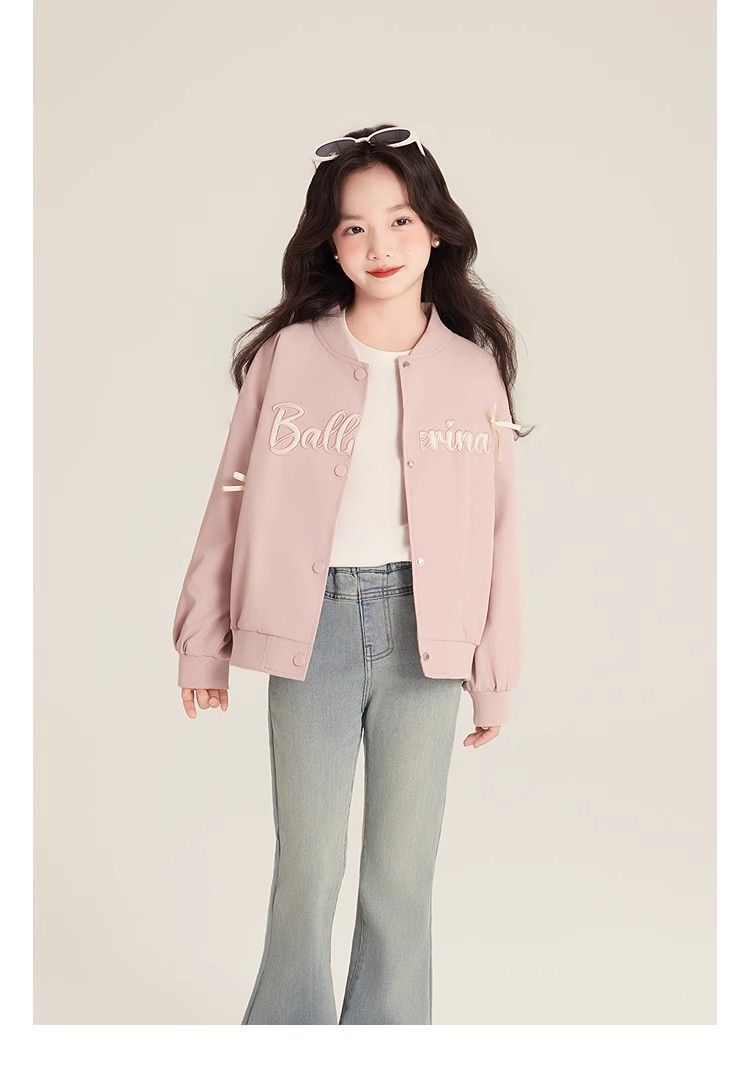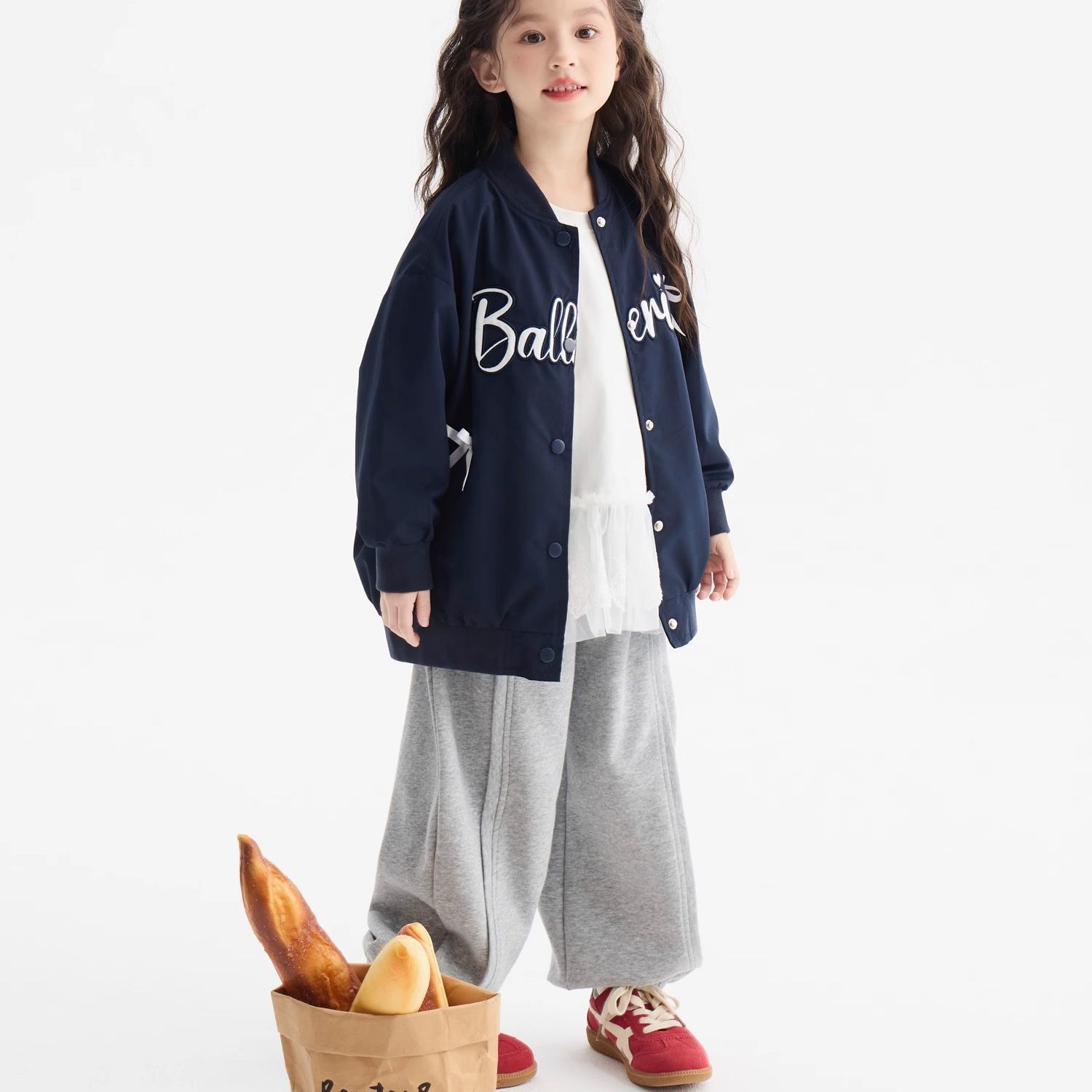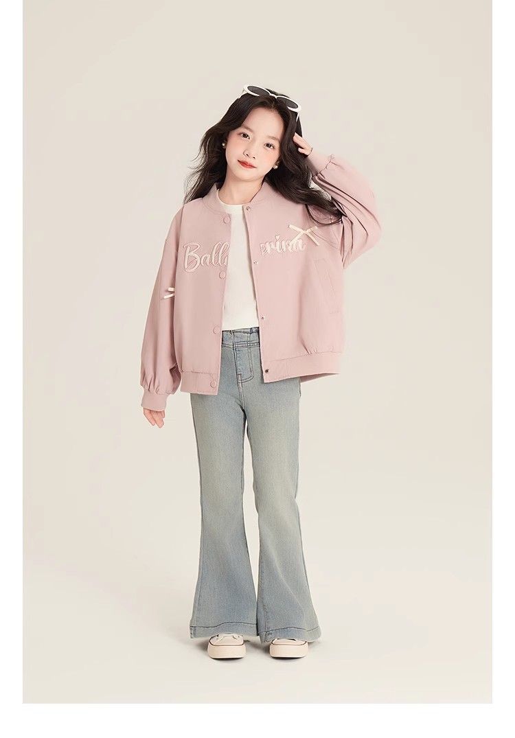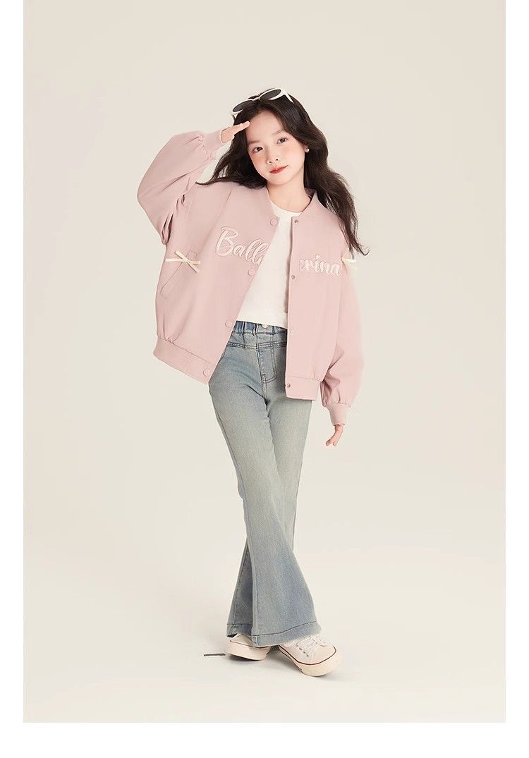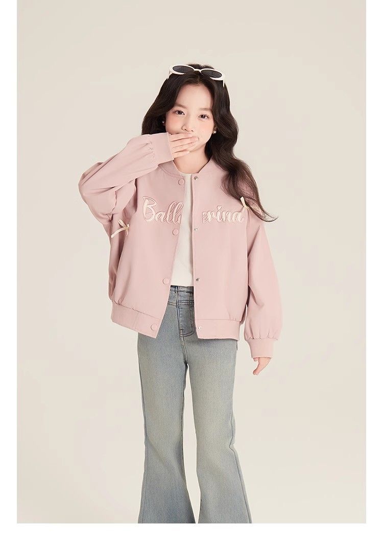 소녀 탑 여름 2025 새로운 한국식 편지 자수 달콤한 활 야구 세트 중 · 빅 키즈 코트 트렌디