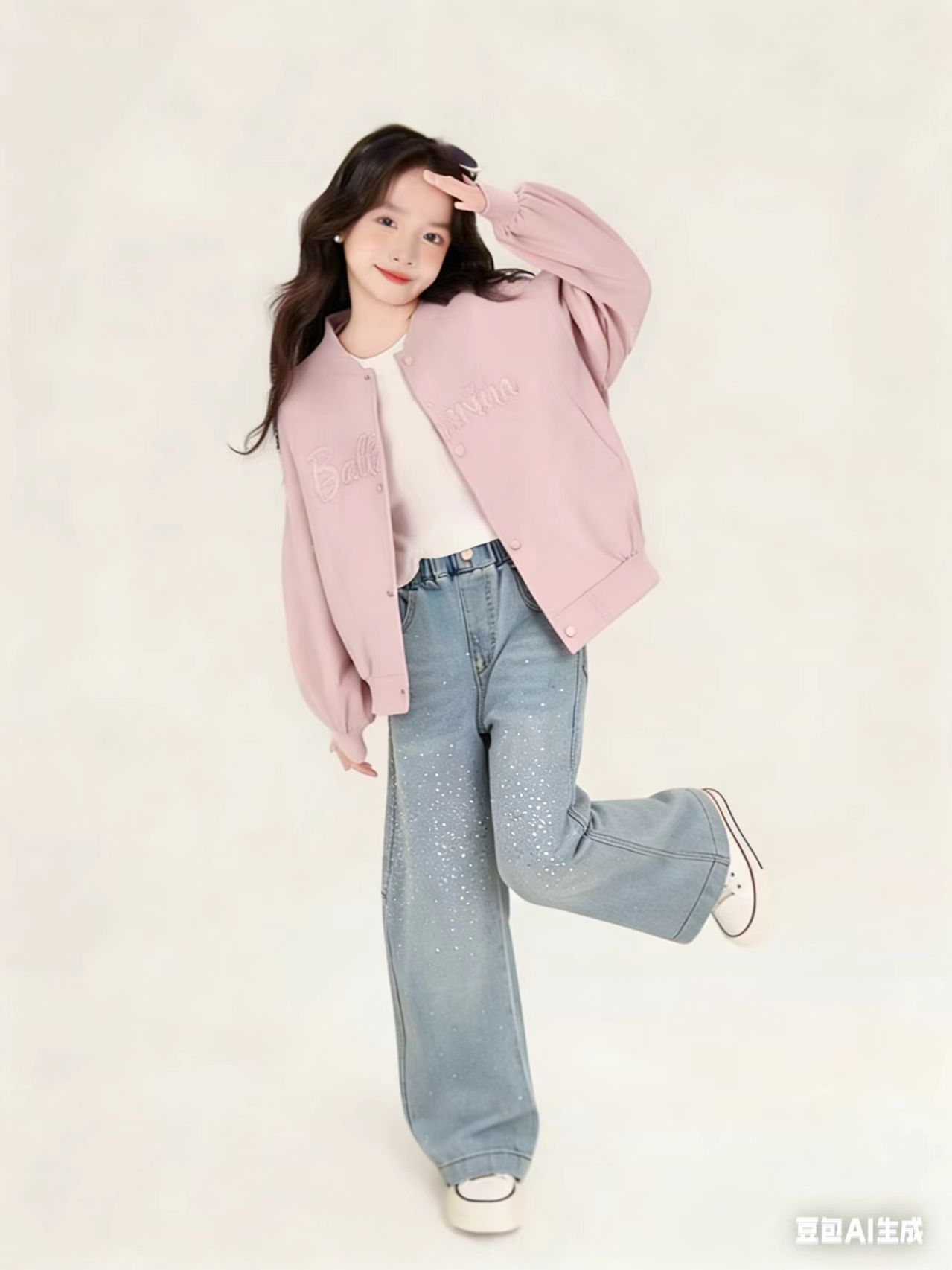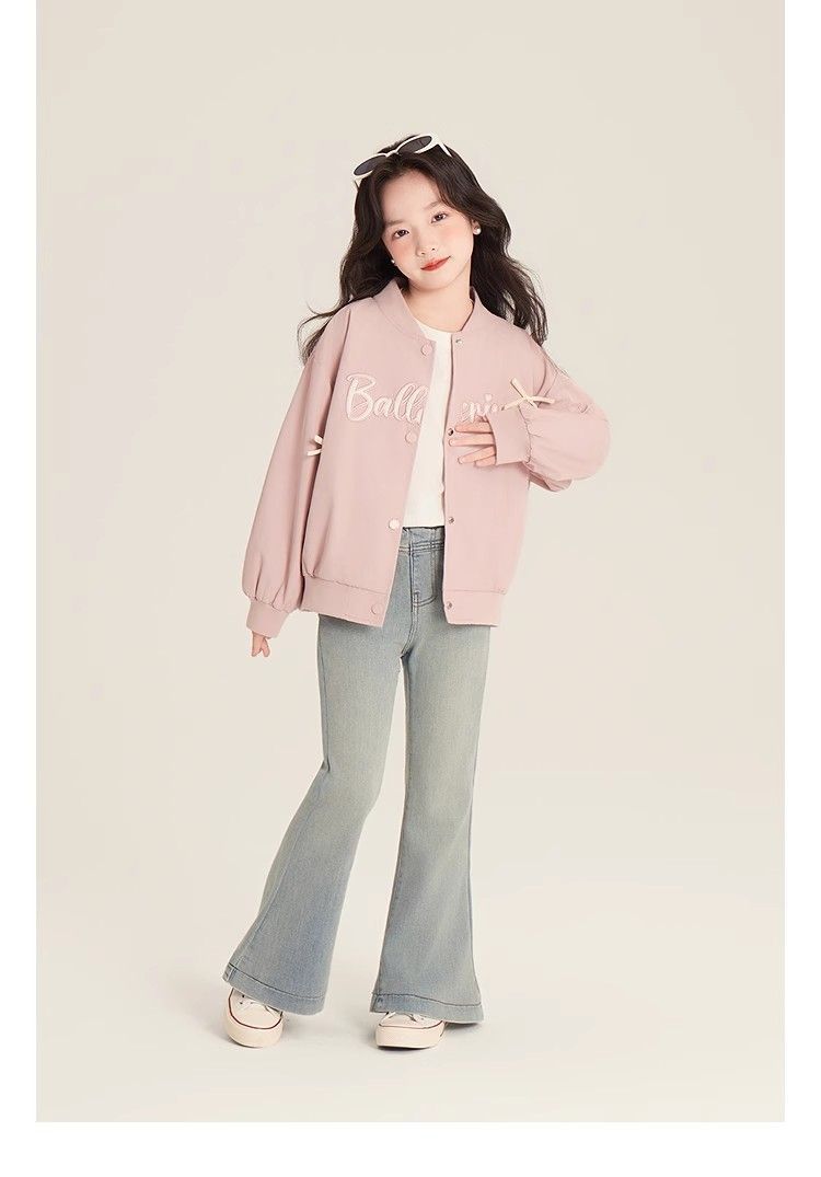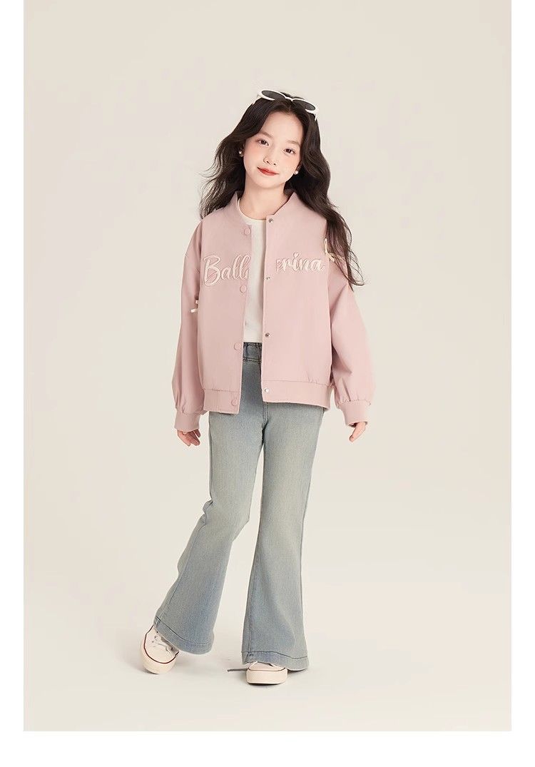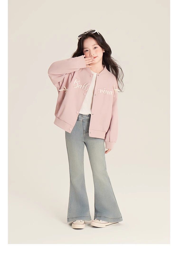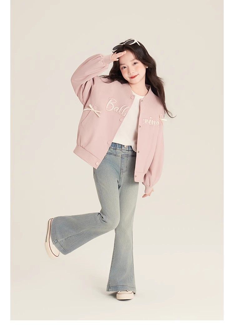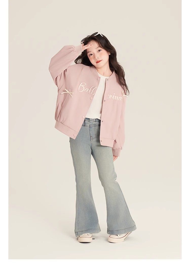 소녀 탑 여름 2025 새로운 한국식 편지 자수 달콤한 활 야구 세트 중 · 빅 키즈 코트 트렌디