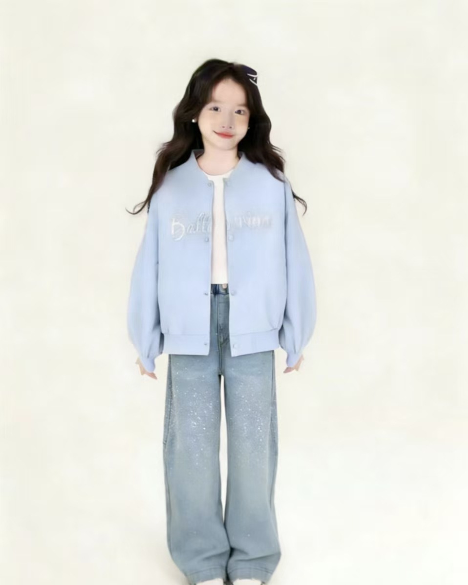 소녀 탑 여름 2025 새로운 한국식 편지 자수 달콤한 활 야구 세트 중 · 빅 키즈 코트 트렌디스토어 가기