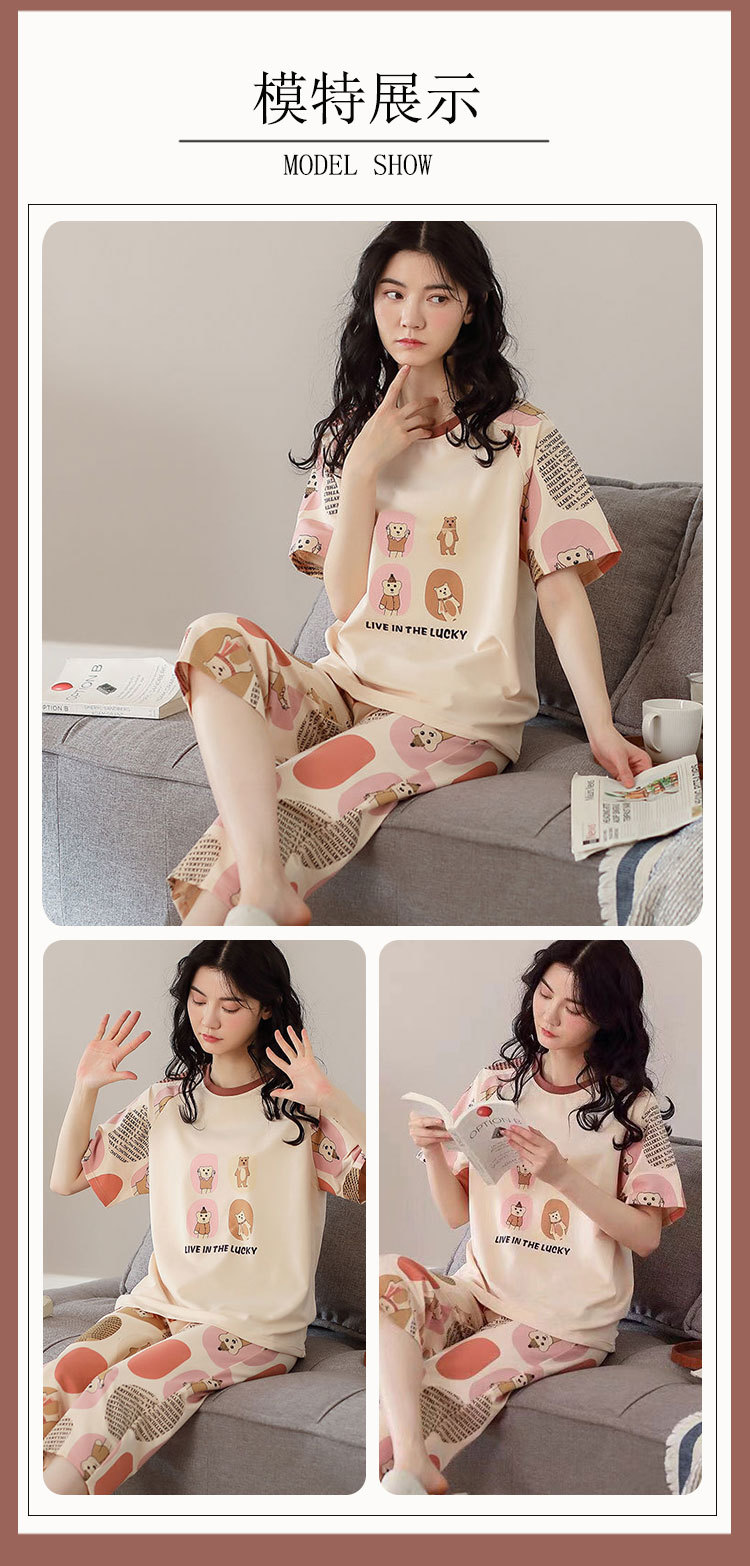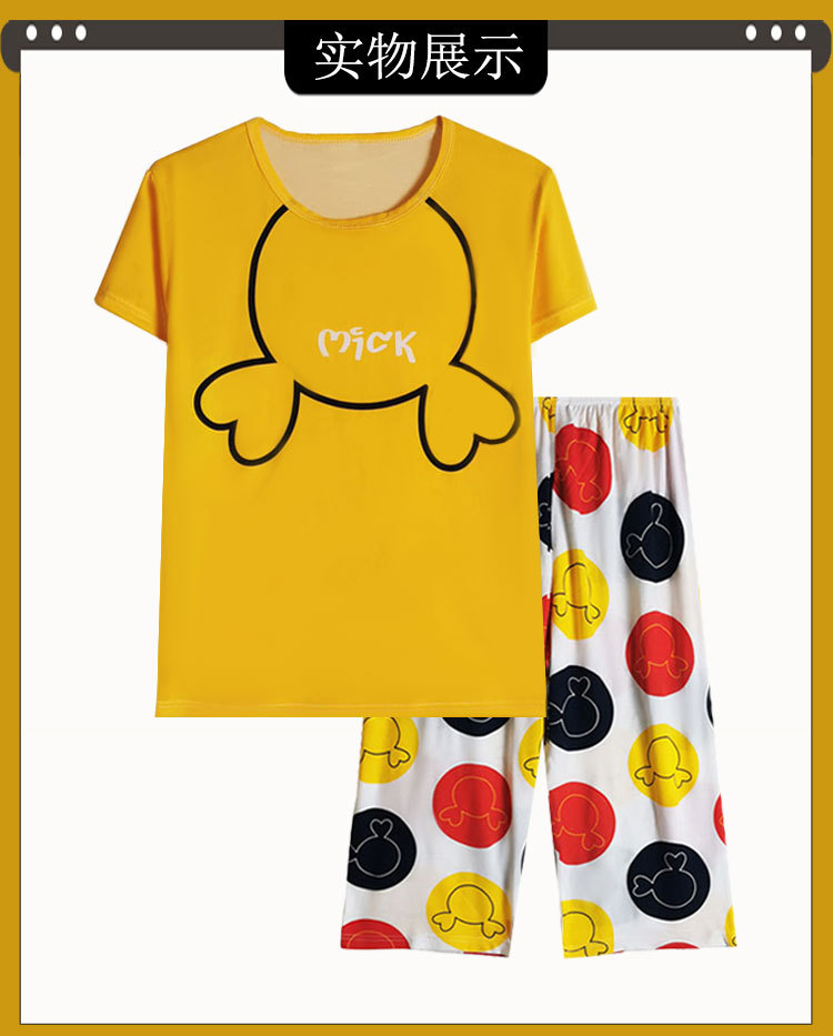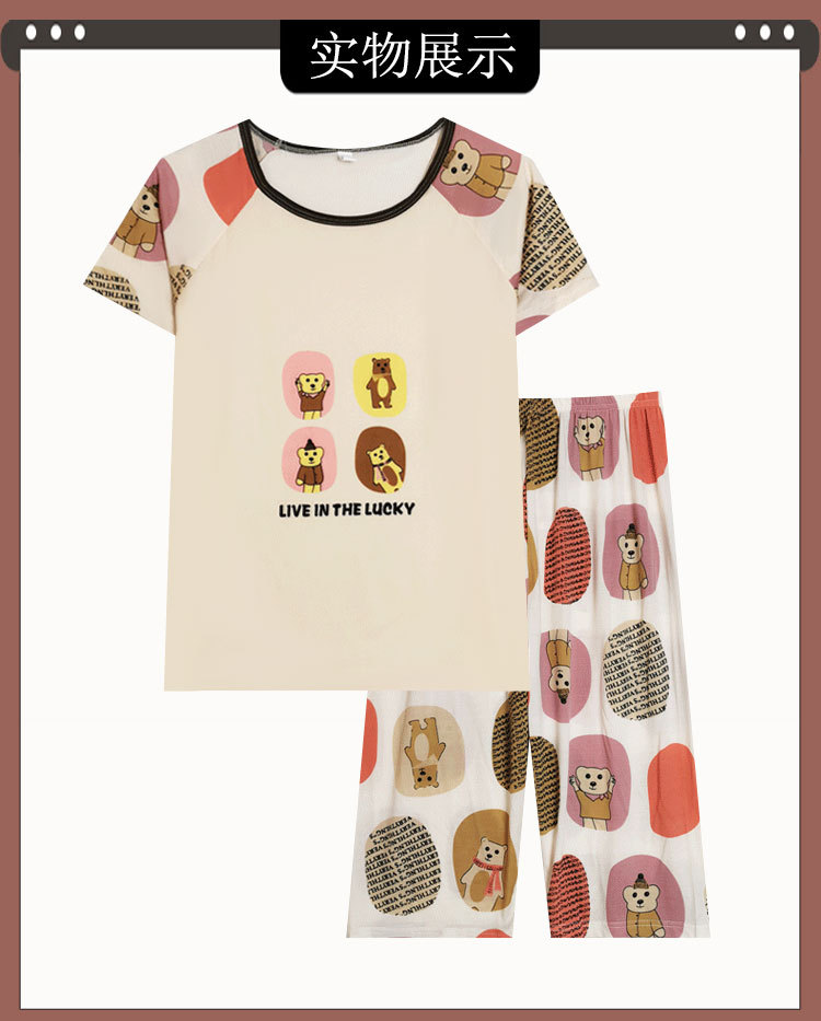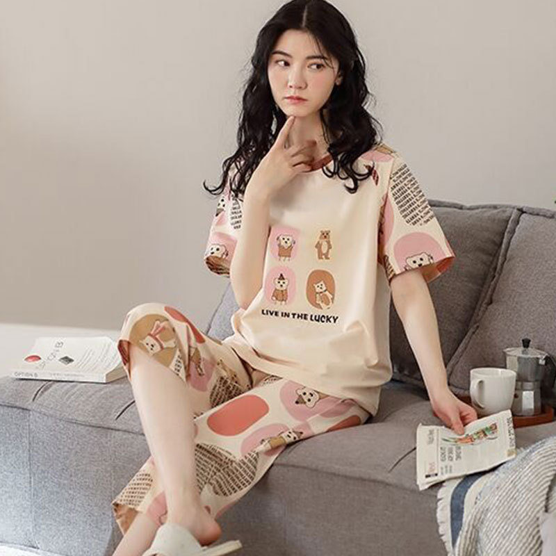 만화 반팔 잠옷 여성 카프리 바지 세트 여성 여름 얇은 한국식 느슨한 외형 홈 의류 여름 스타일스토어 가기