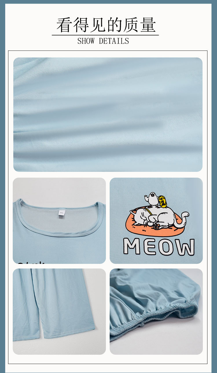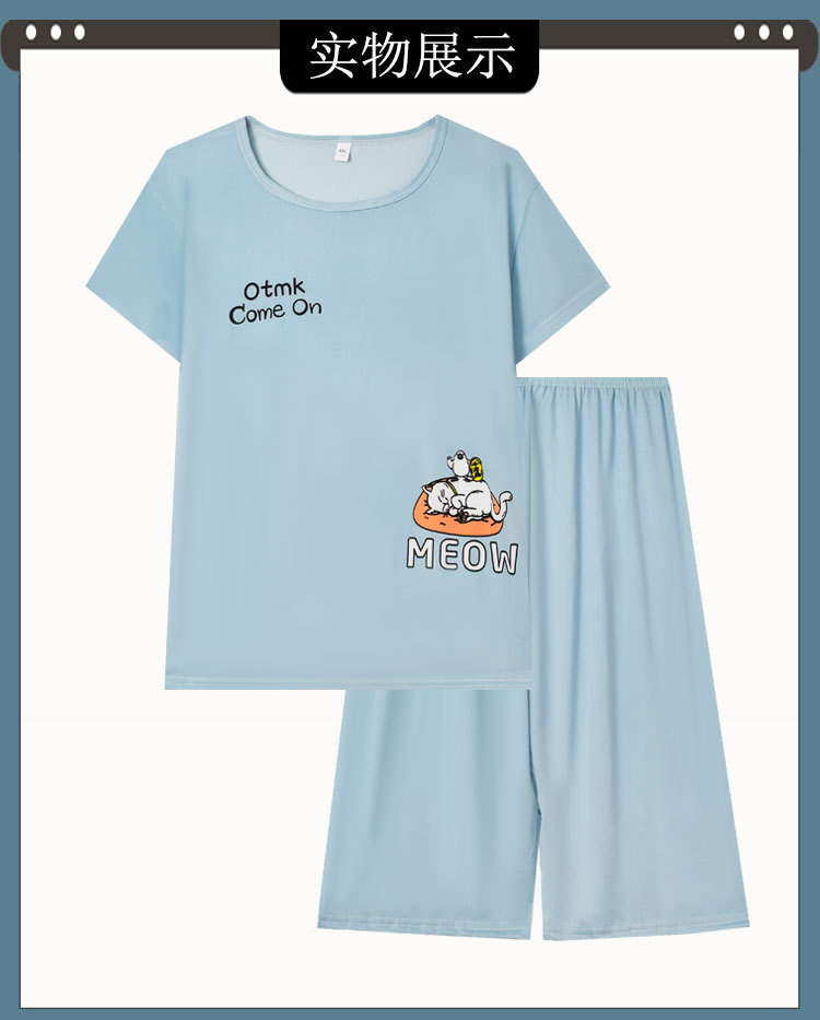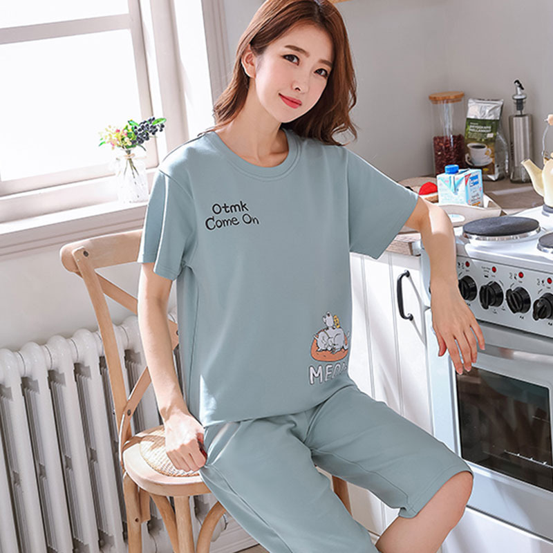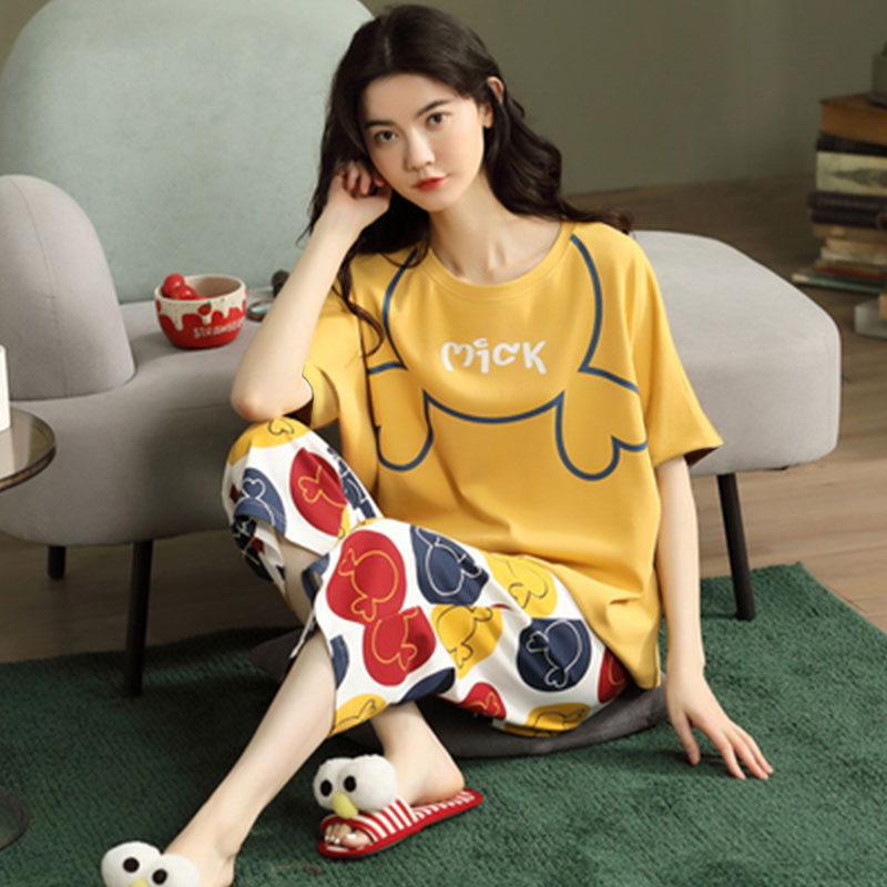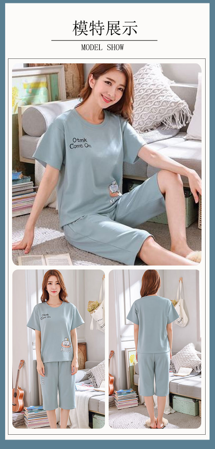 만화 반팔 잠옷 여성 카프리 바지 세트 여성 여름 얇은 한국식 느슨한 외형 홈 의류 여름 스타일스토어 가기