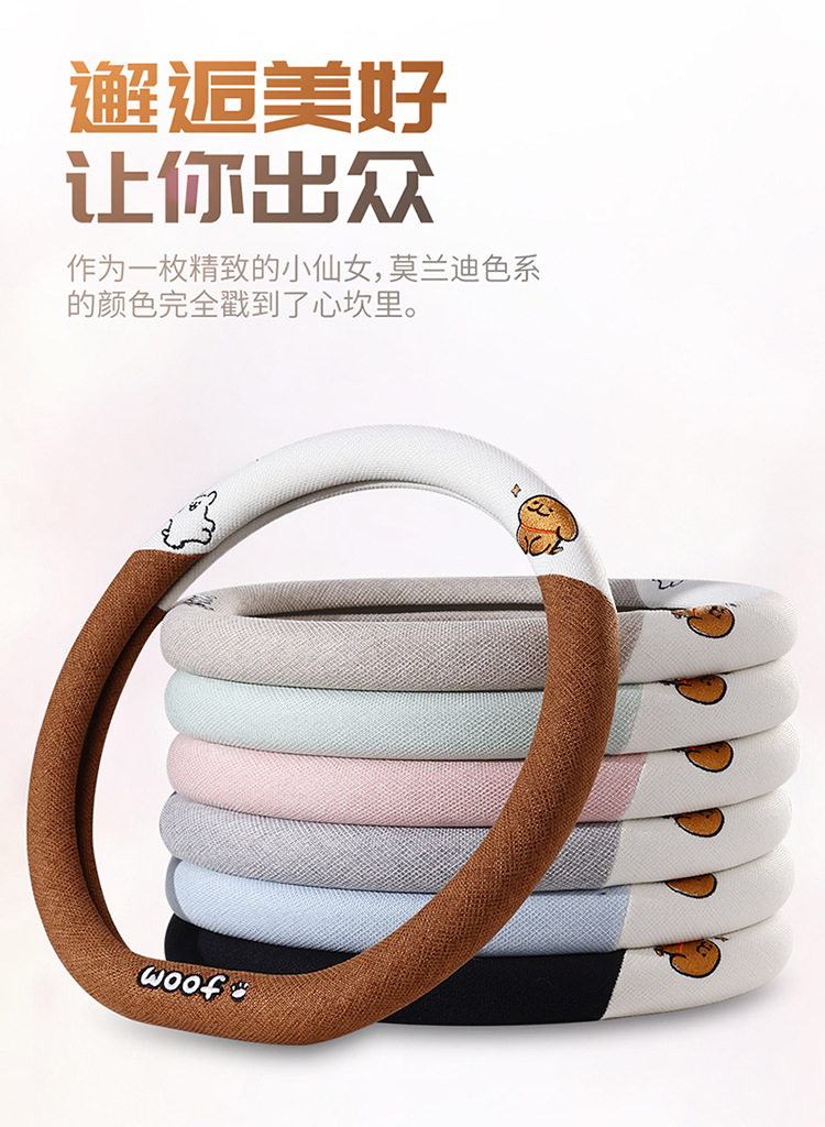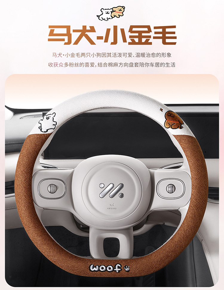 새로운 자동차 스티어링 휠 커버 말 개 작은 골든 리트리버 린넨 핸들 BYD 바다 유럽 돌고래 씰 EV 노래 PLUS스토어 가기