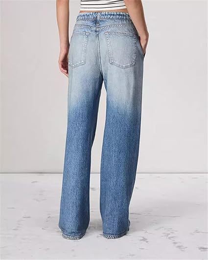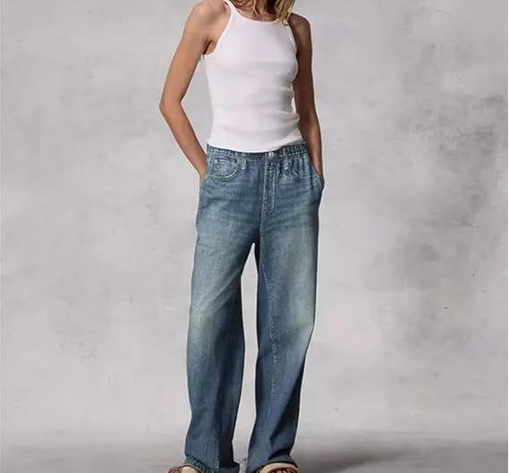 국경 간 대외 무역 아마존 레트로 중간 허리 넓은 다리 청바지 여성의 여름 얇은 세척 느슨한 슬리밍 걸레스토어 가기