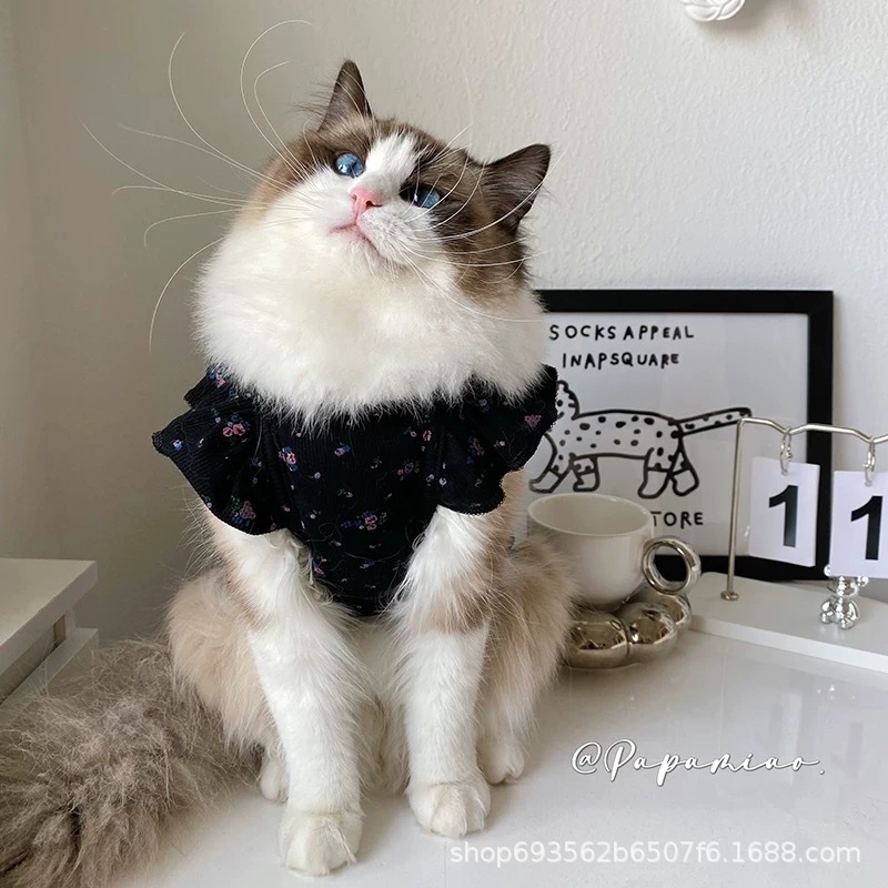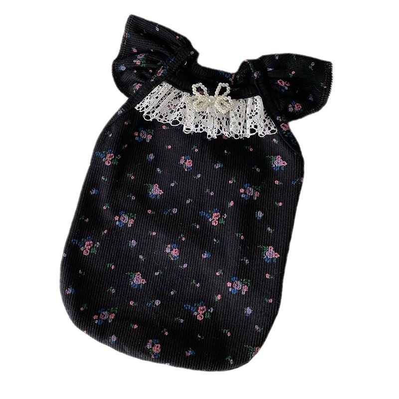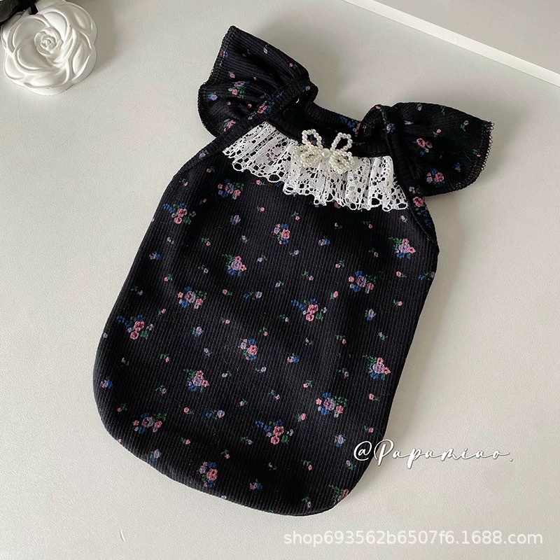 비행 소매 꽃 애완 동물 조끼 테디 개 봄과 여름 공주 레이스 얇은 안티 린트 아이스 실크 고양이 옷