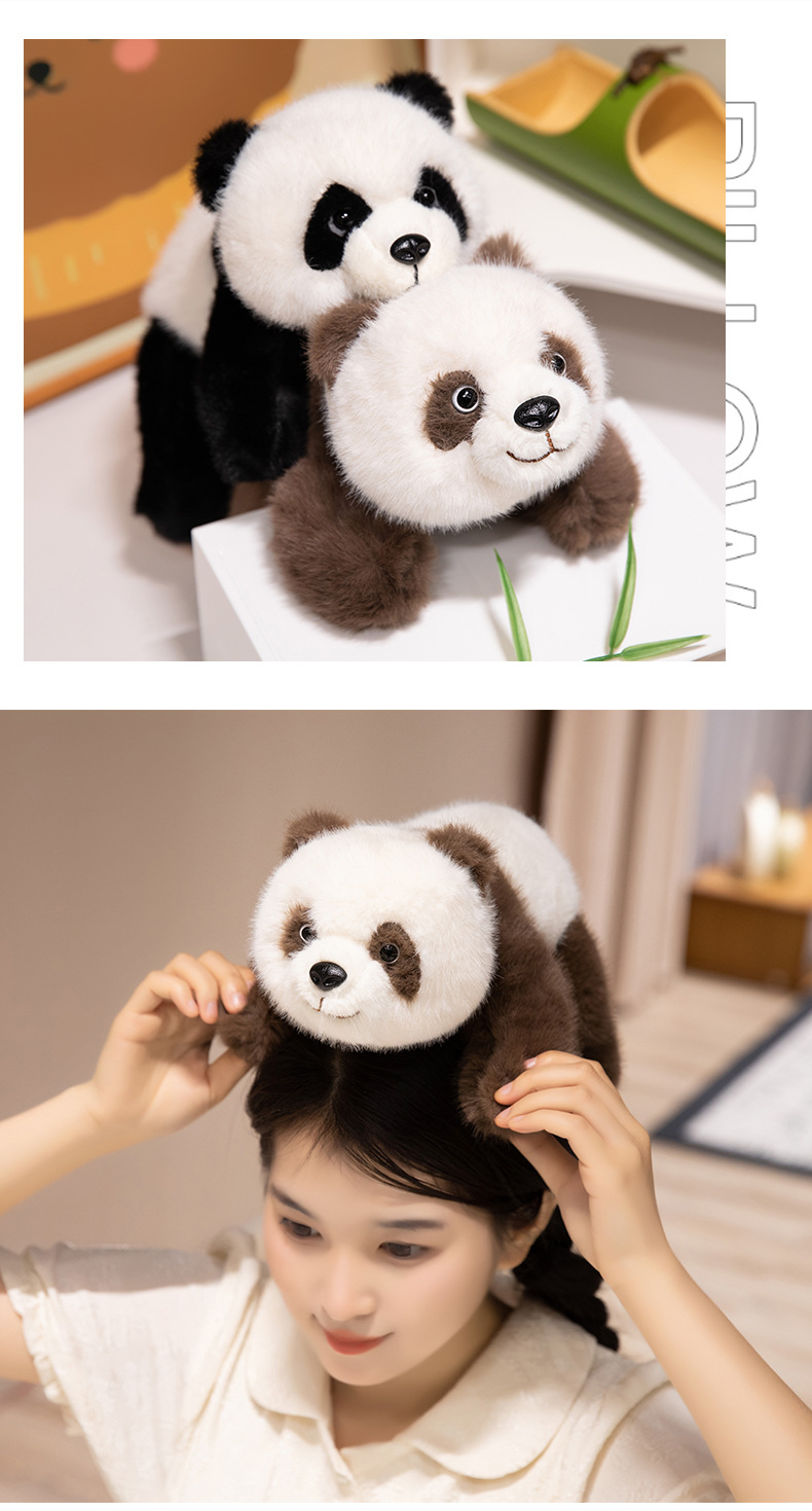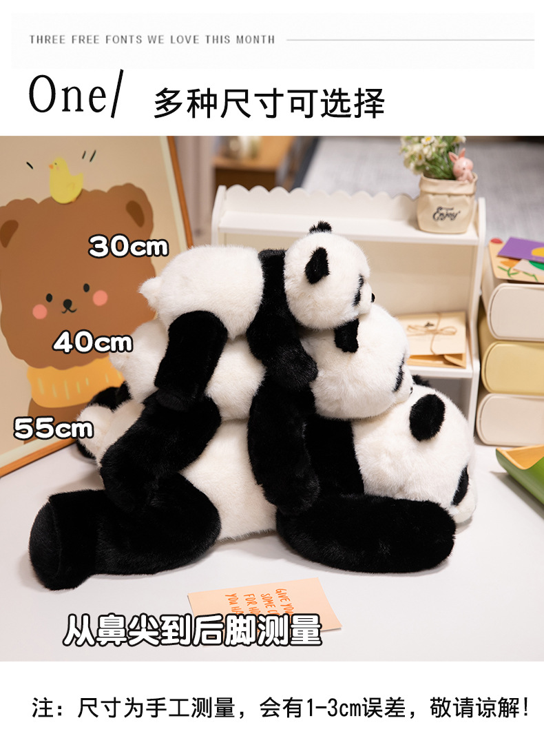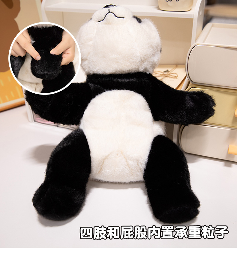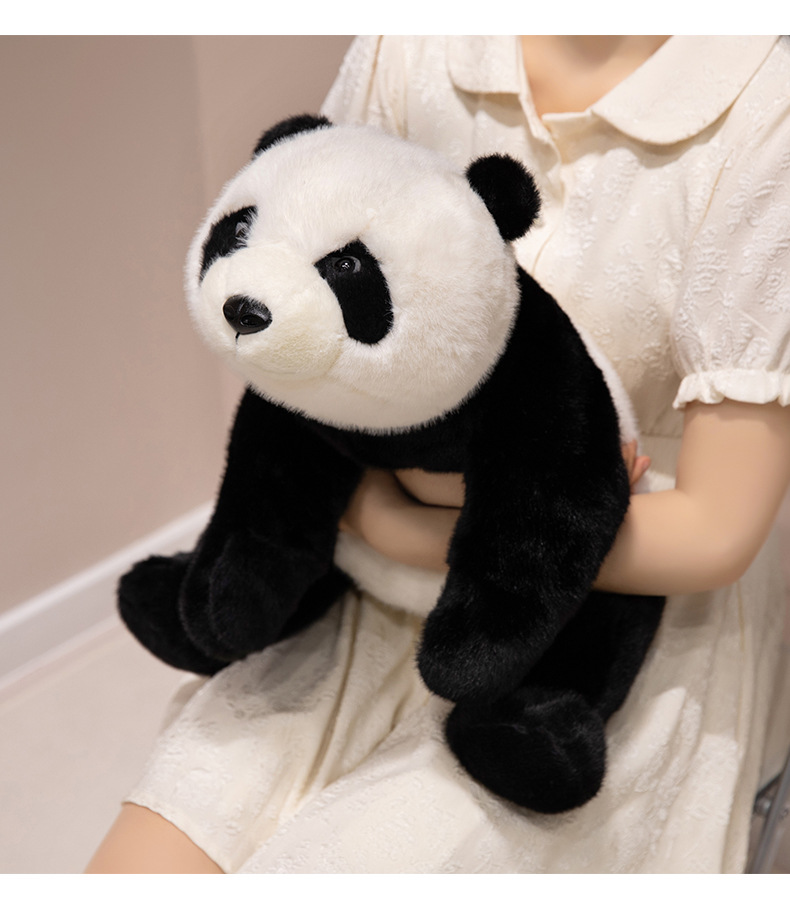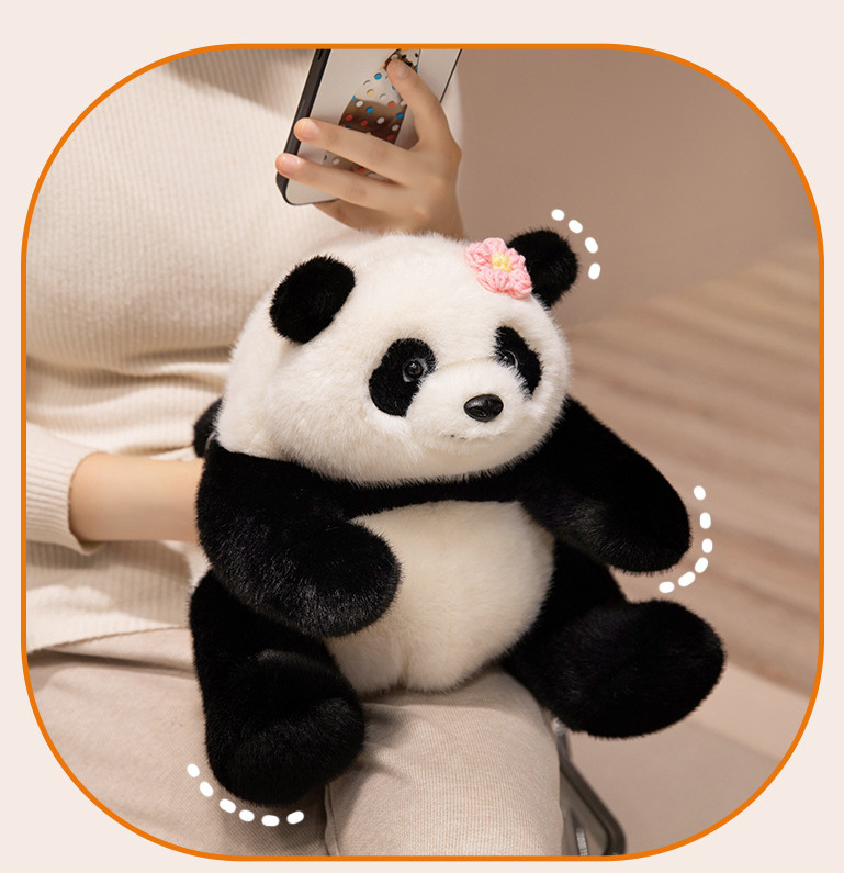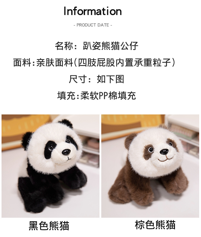 새로운 시뮬레이션 국보 자이언트 팬더 봉제 장난감 동물원 귀여운 거짓말 자세 꽃 7 인형 인형 도매
