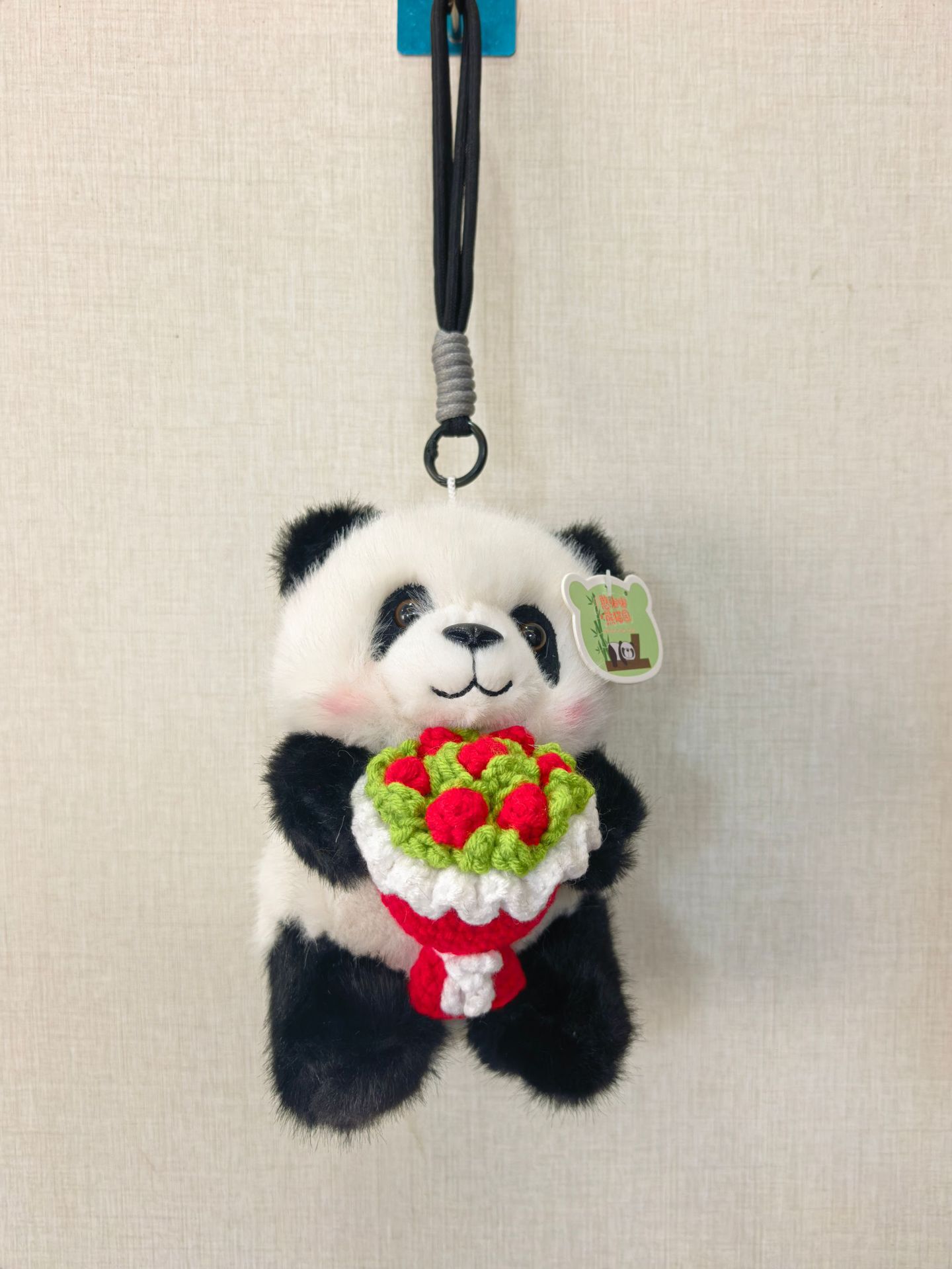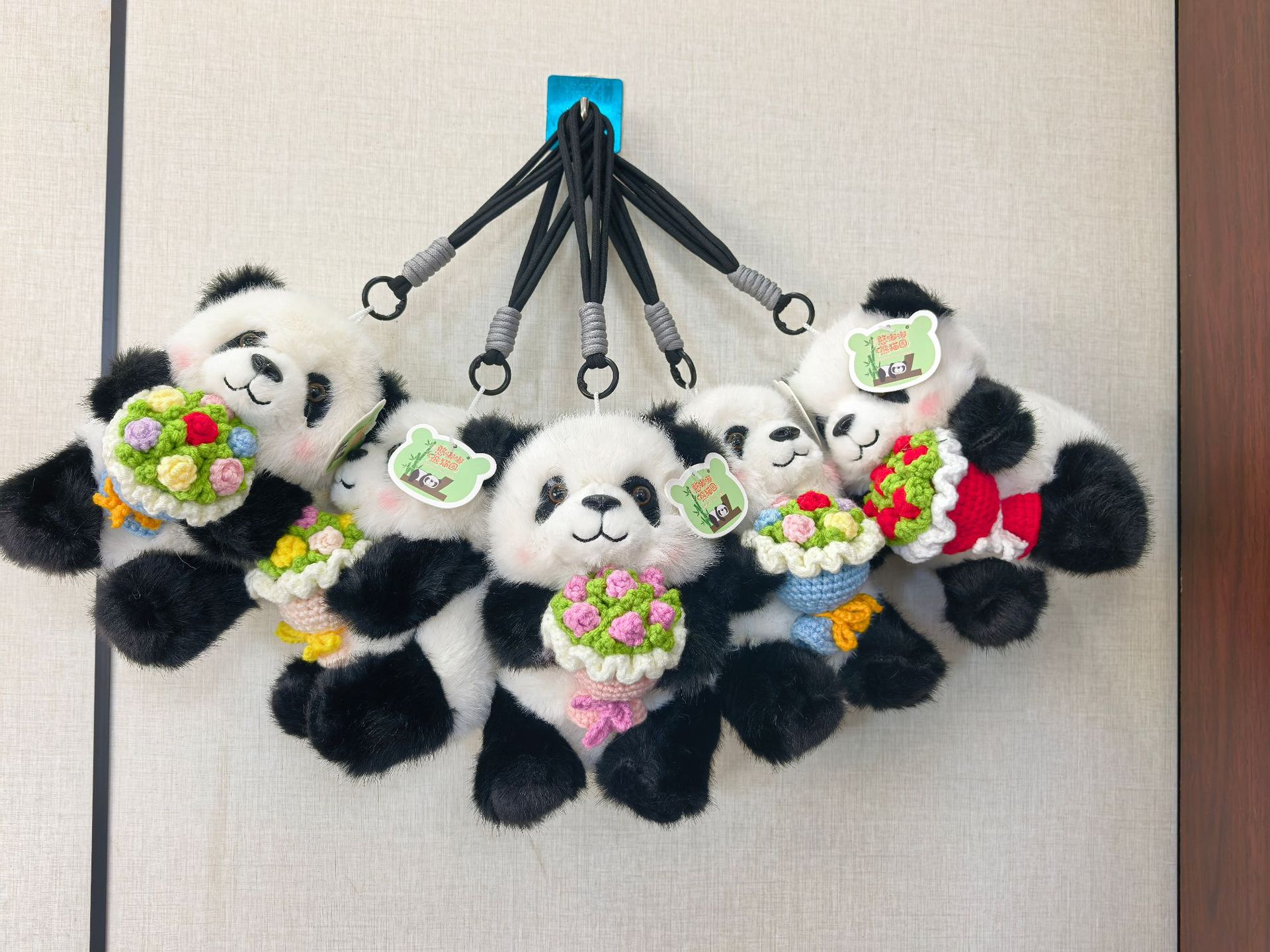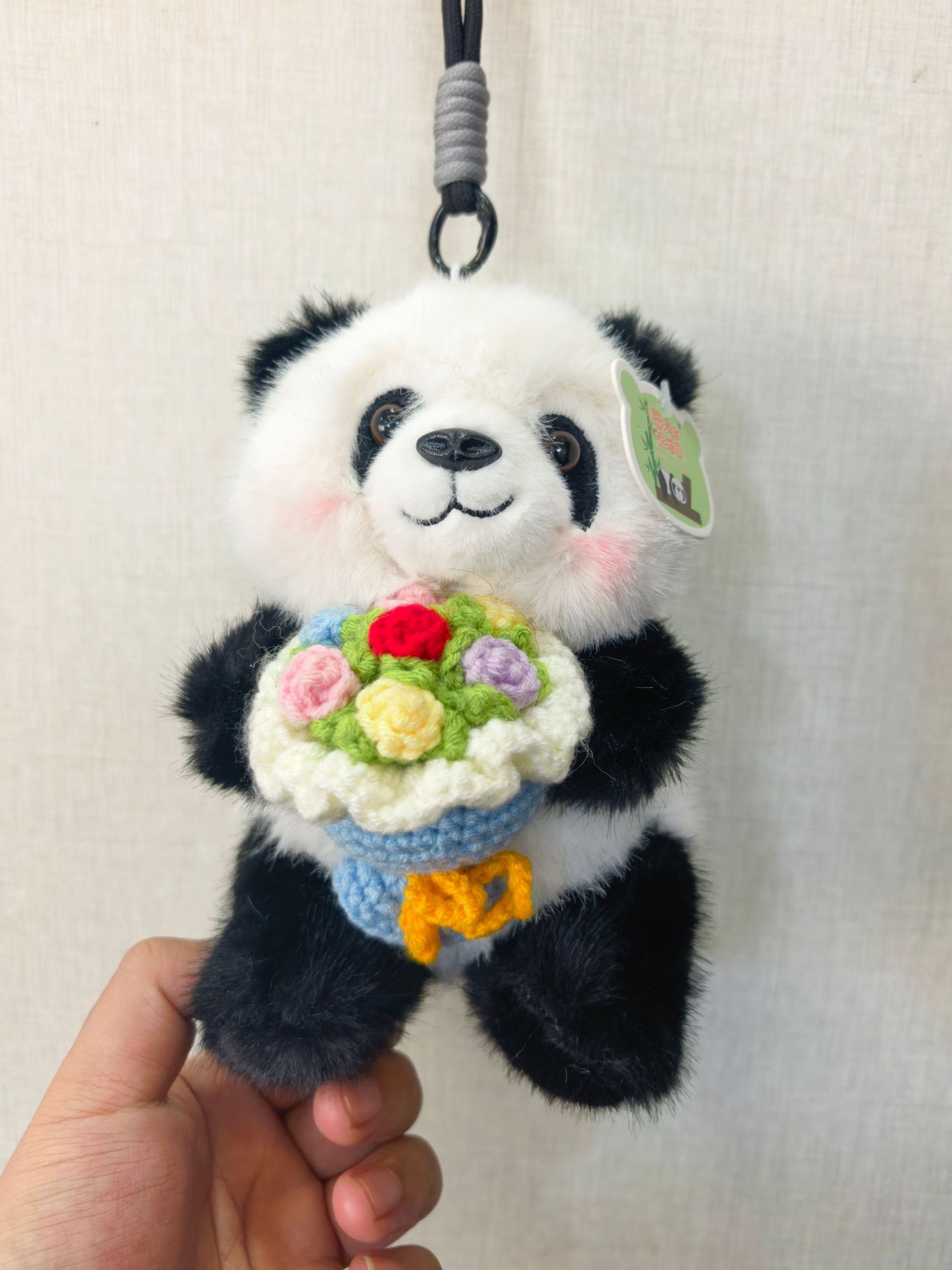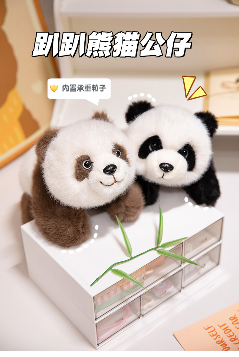 새로운 시뮬레이션 국보 자이언트 팬더 봉제 장난감 동물원 귀여운 거짓말 자세 꽃 7 인형 인형 도매