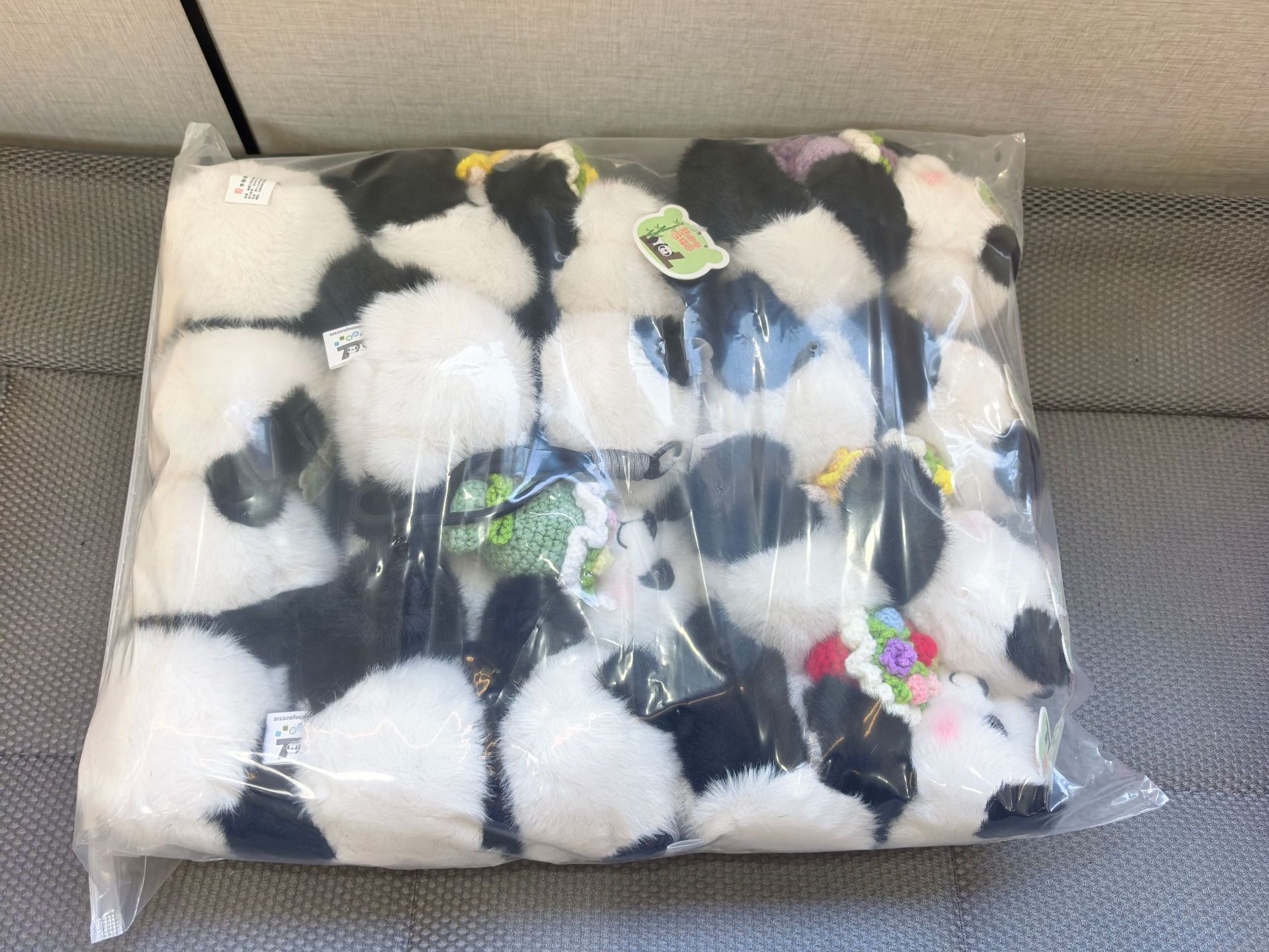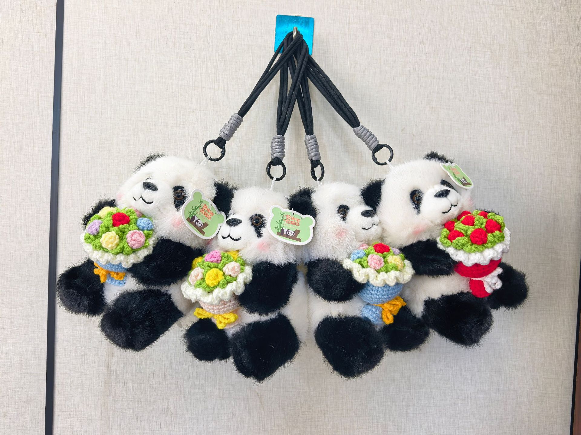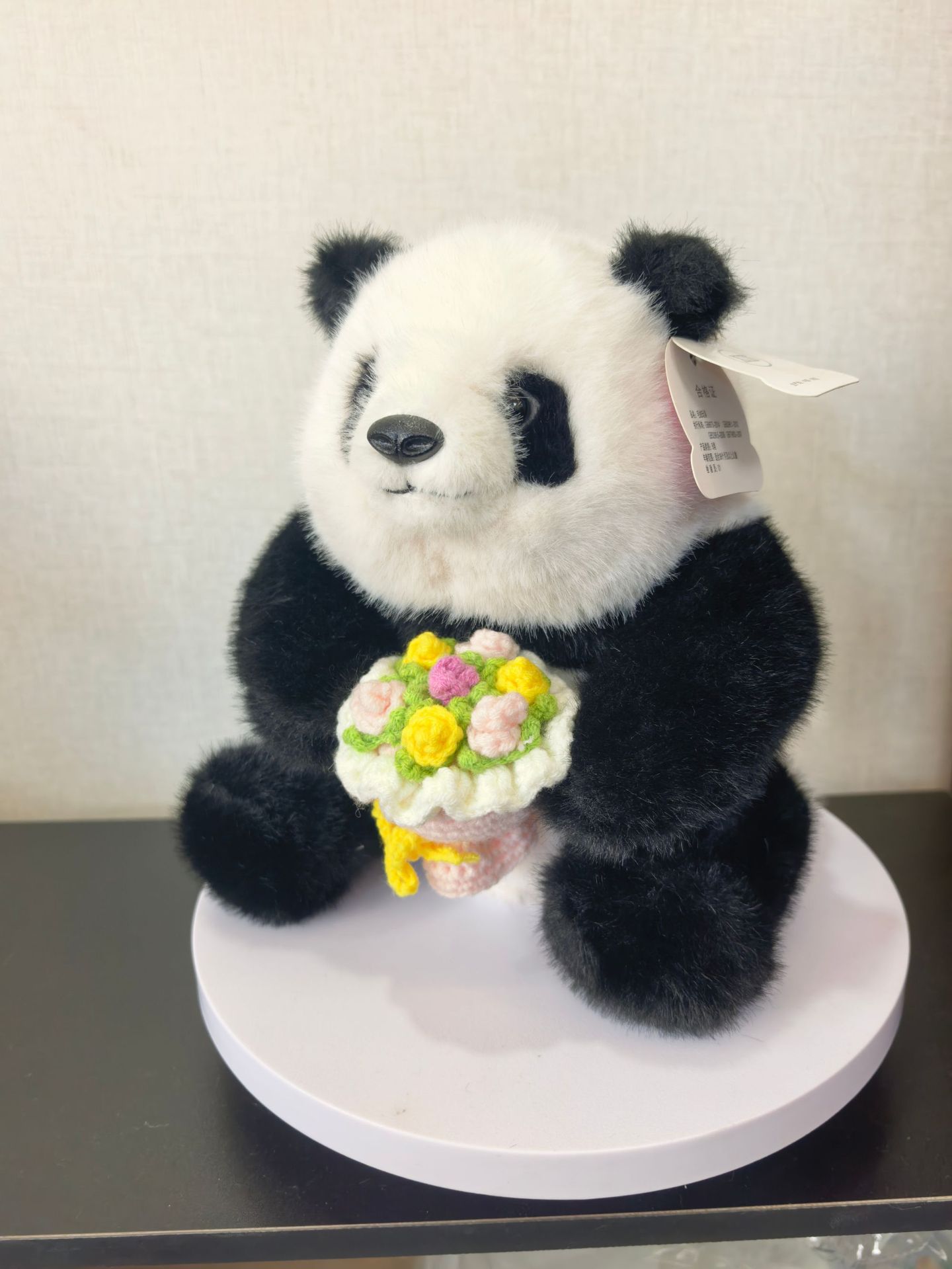 새로운 시뮬레이션 국보 자이언트 팬더 봉제 장난감 동물원 귀여운 거짓말 자세 꽃 7 인형 인형 도매스토어 가기