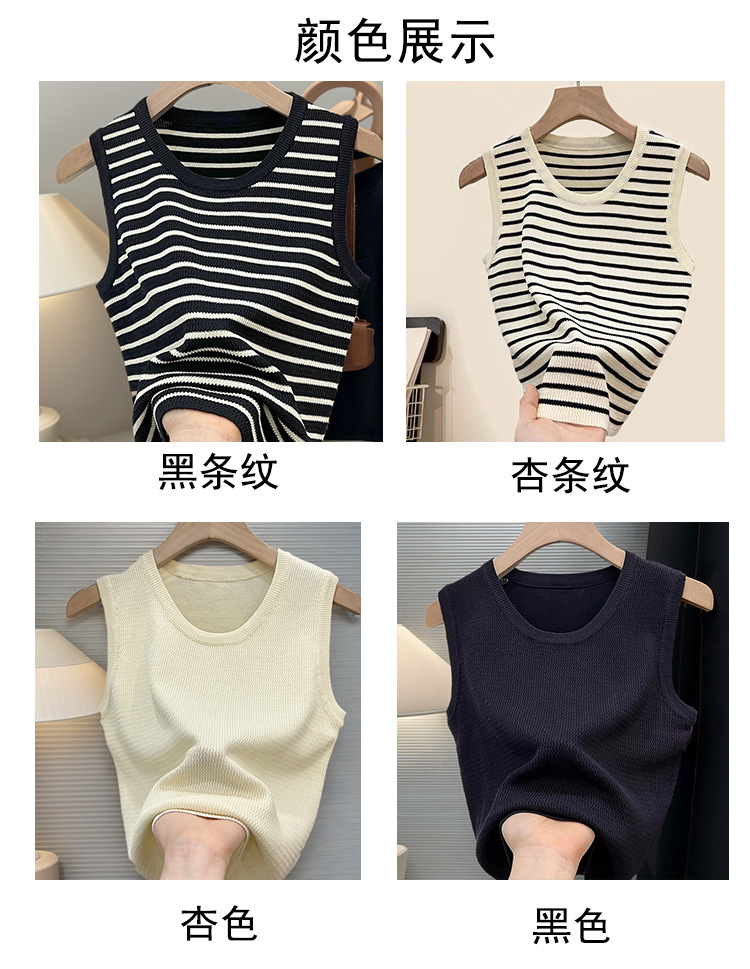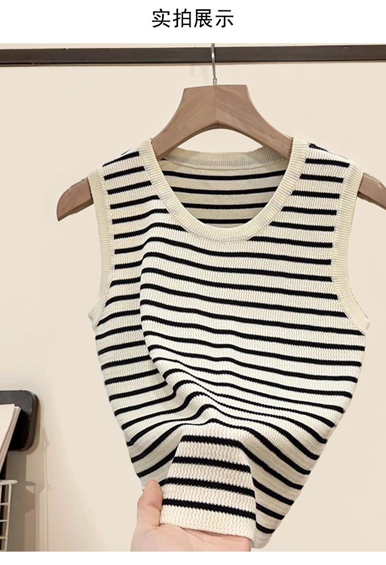 대조 컬러 스트라이프 카미 솔 여성의 봄과 여름 새로운 도착 와이드 숄더 스트랩 블레이드베이스 올 매치 아우터 웨어 슬리브 탑