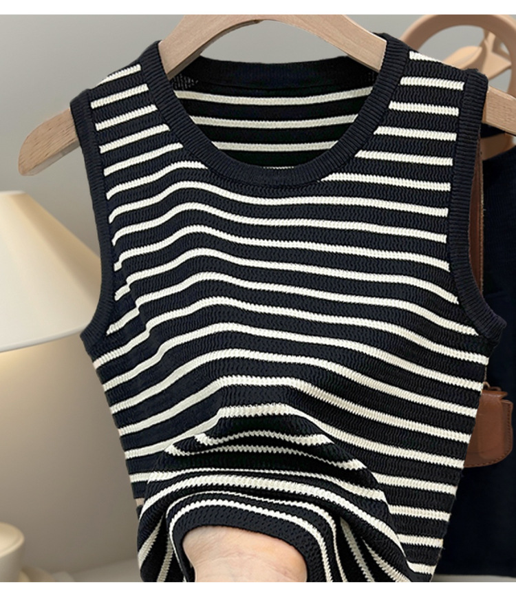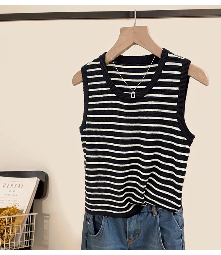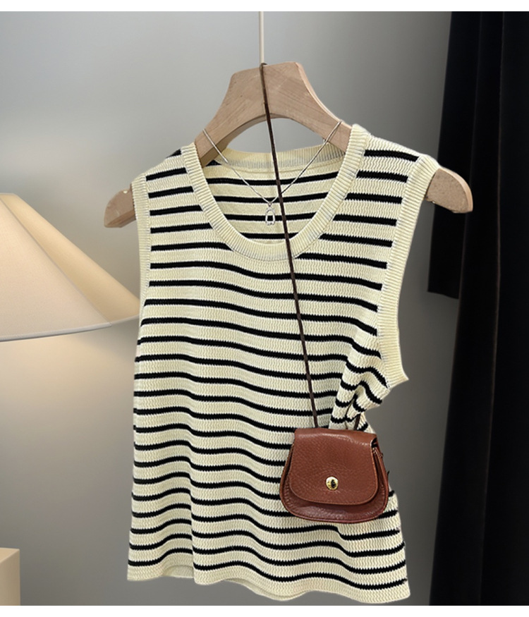 대조 컬러 스트라이프 카미 솔 여성의 봄과 여름 새로운 도착 와이드 숄더 스트랩 블레이드베이스 올 매치 아우터 웨어 슬리브 탑스토어 가기