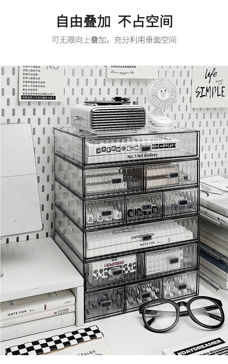 잡화 저장 상자 서랍 형 책상 아크릴 화장품 저장 랙 뺄셈 데스크탑 투명한 새로운 문구스토어 가기
