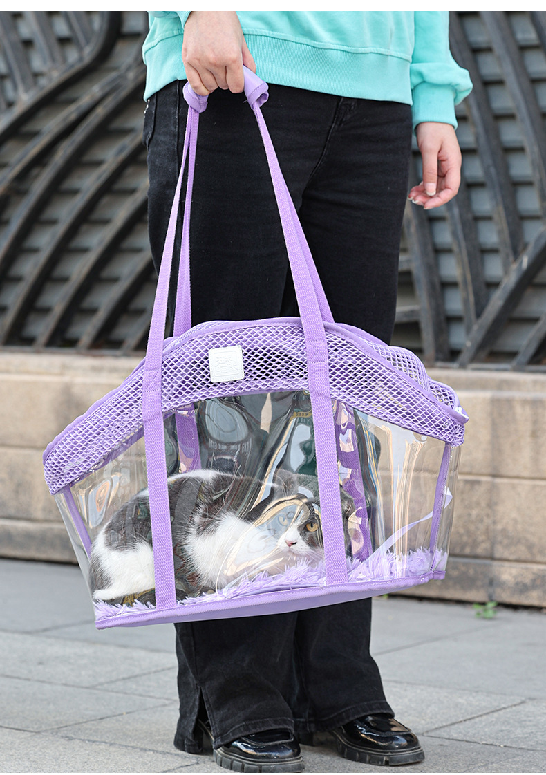 작은 애완 동물 나가는 어깨 가방 4 면 통기성 메쉬 편안한 고양이 가방 안전 밧줄 탈출 고양이 가방스토어 가기