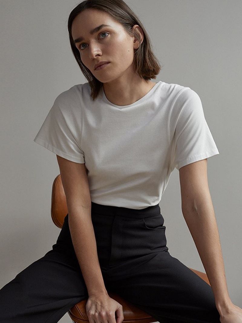 롱메 미니멀리스트 순면 라운드넥 반팔 티셔츠 여성용 2026 봄 여름 신상 TOT 스타일 출퇴근 기본 다용도 상의스토어 가기
