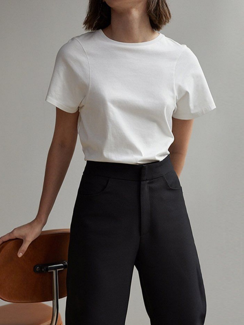 롱메 미니멀리스트 순면 라운드넥 반팔 티셔츠 여성용 2026 봄 여름 신상 TOT 스타일 출퇴근 기본 다용도 상의