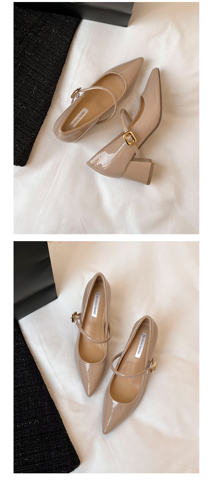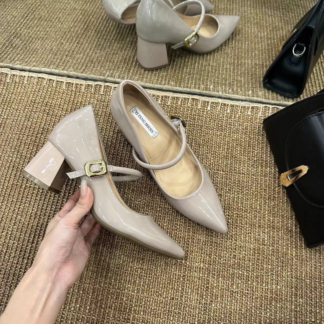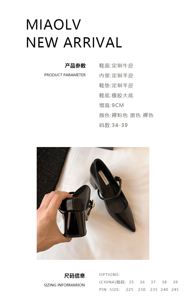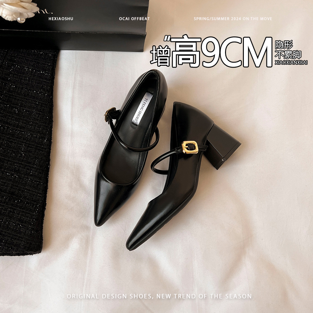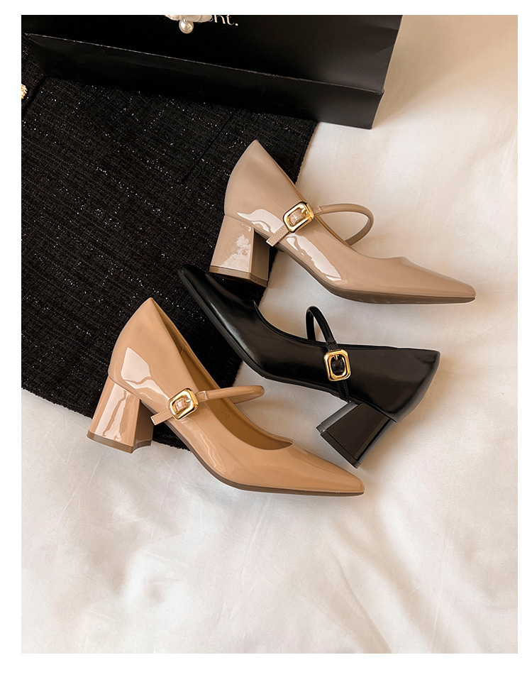 양가죽 버전 ~ 9cm 뾰족한 하이힐 신발 프랑스 부드러운 저녁 바람 두꺼운 힐 메리 제인 신발 여성 신발스토어 가기