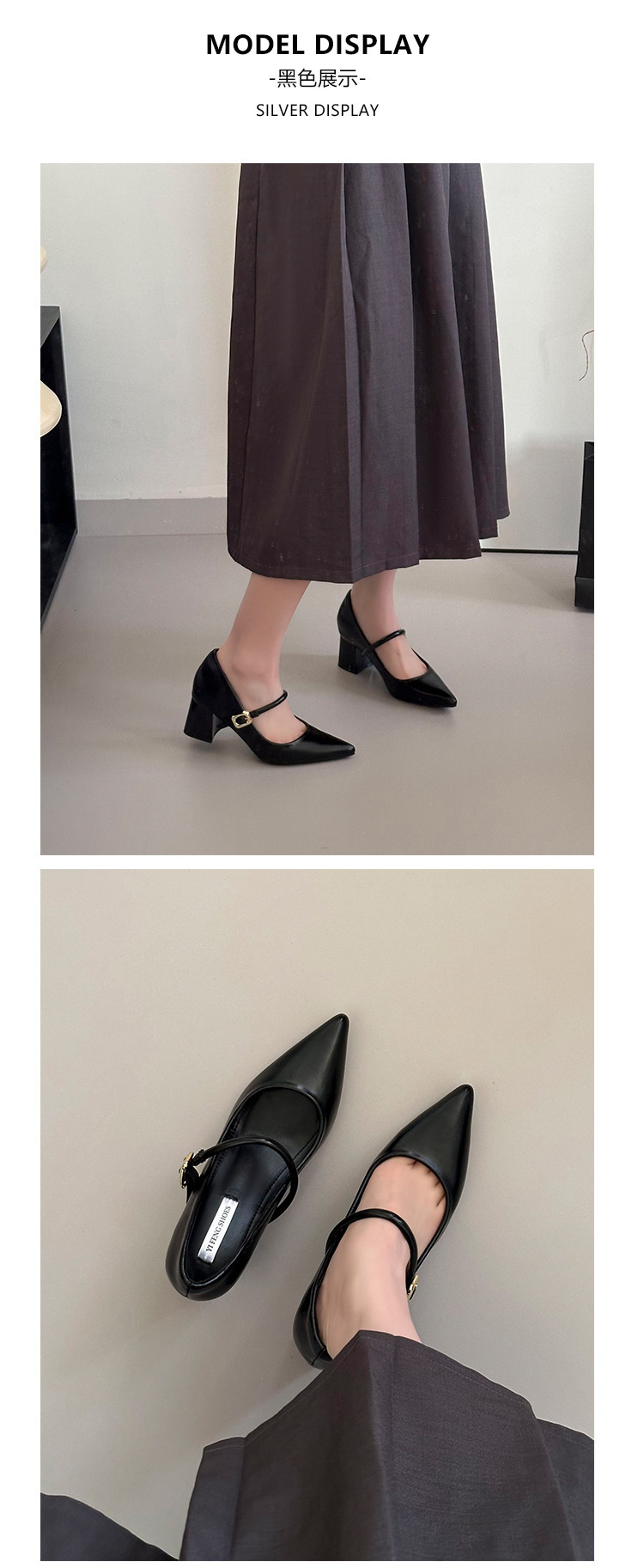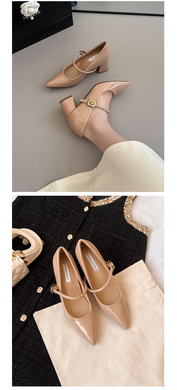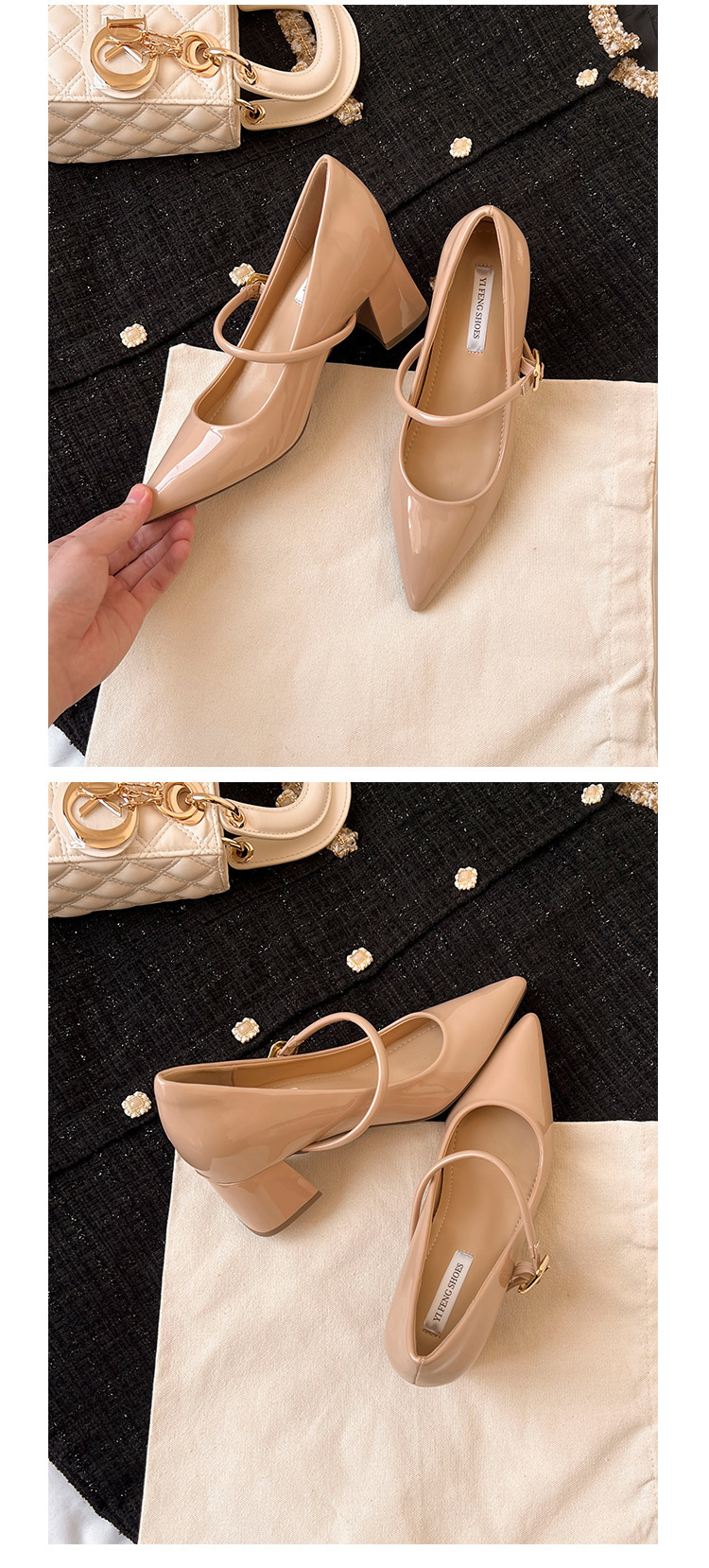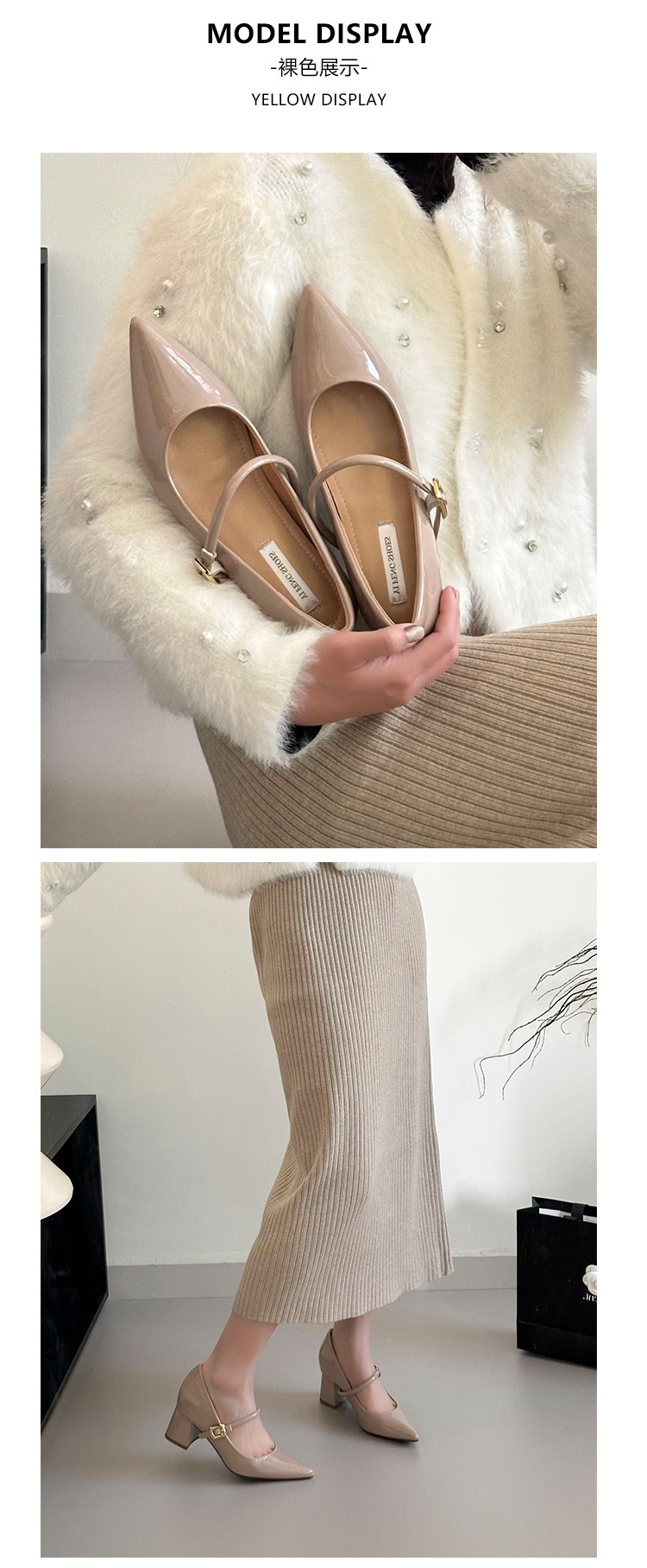양가죽 버전 ~ 9cm 뾰족한 하이힐 신발 프랑스 부드러운 저녁 바람 두꺼운 힐 메리 제인 신발 여성 신발스토어 가기