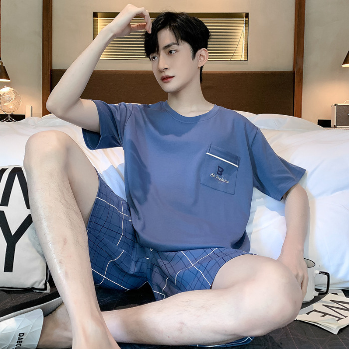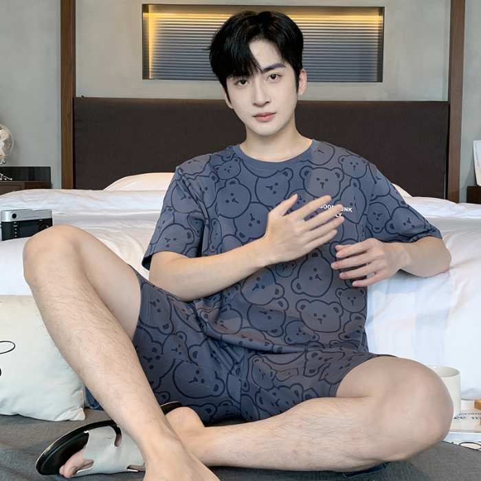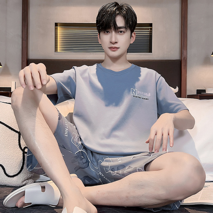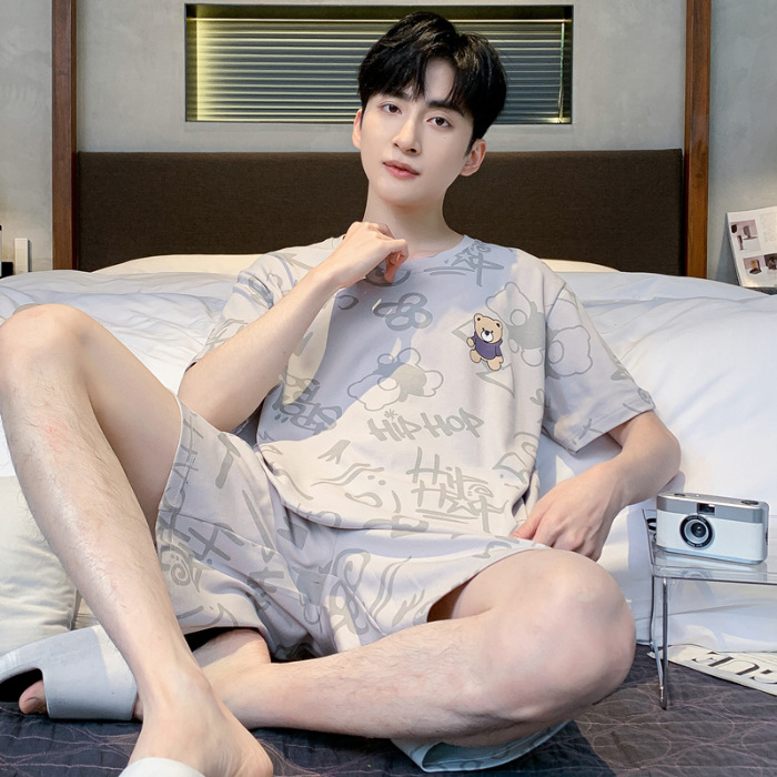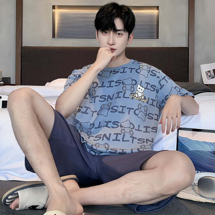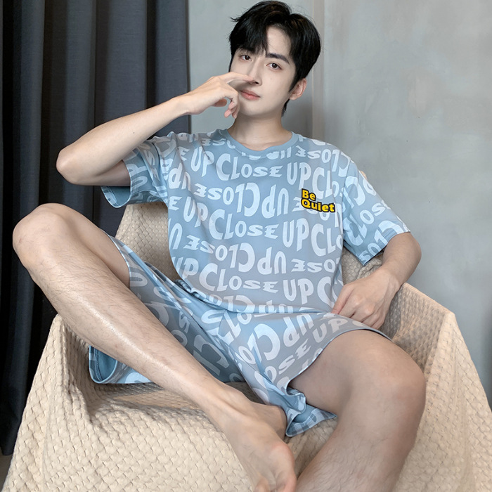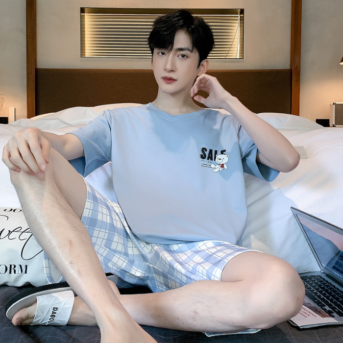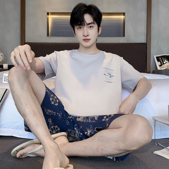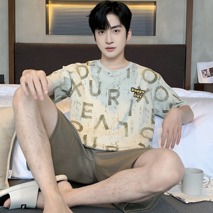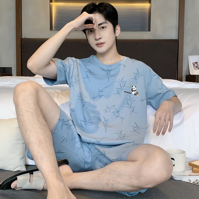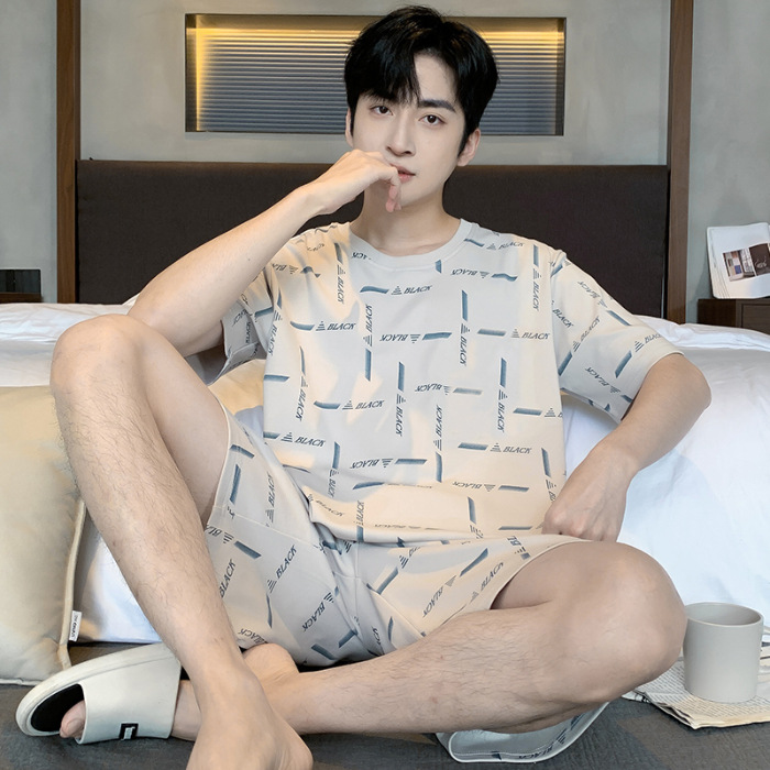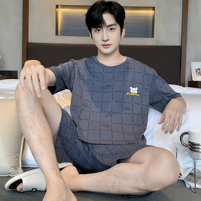 2025 년 여름 뉴 파자마 남성용 순면 반팔 반바지 홈 의류 세트 외투 착용 얇은 국경 폭발