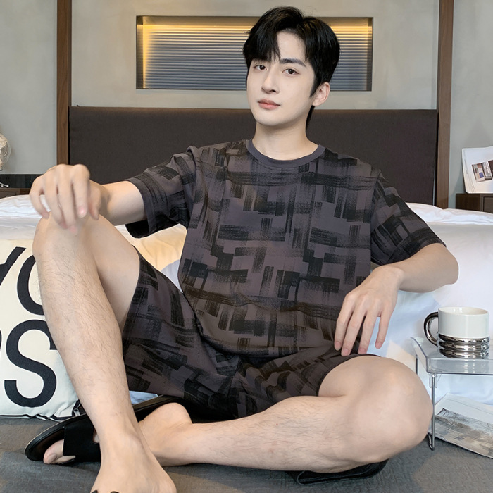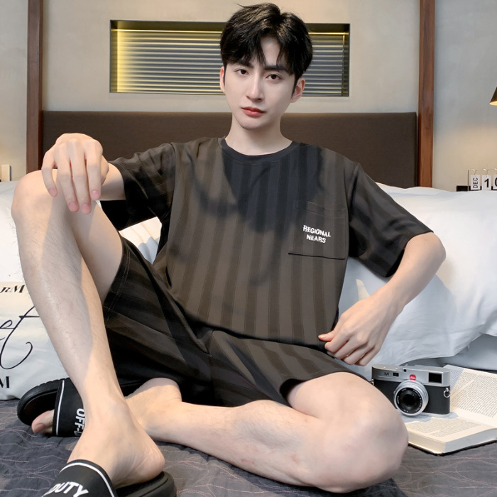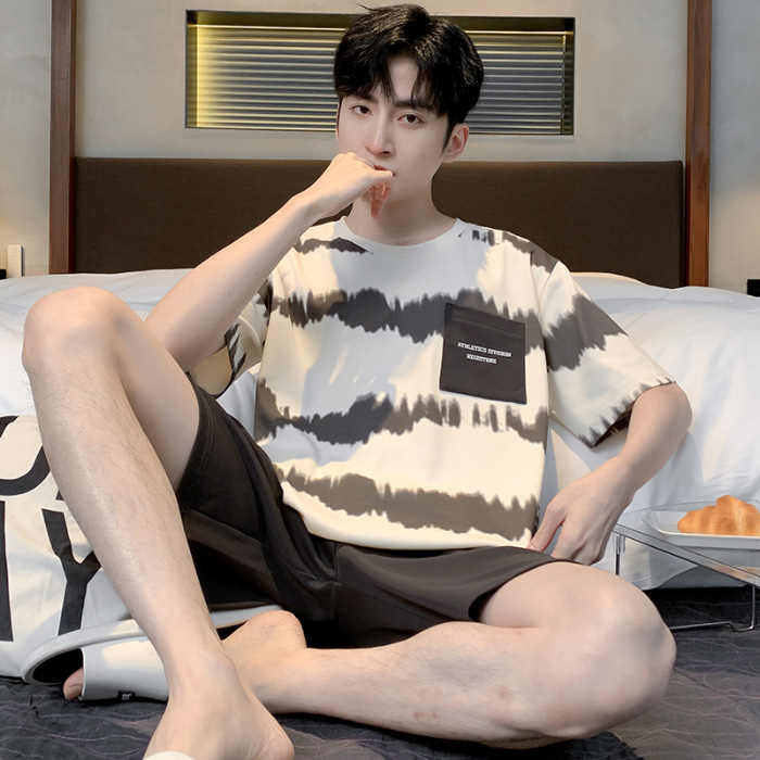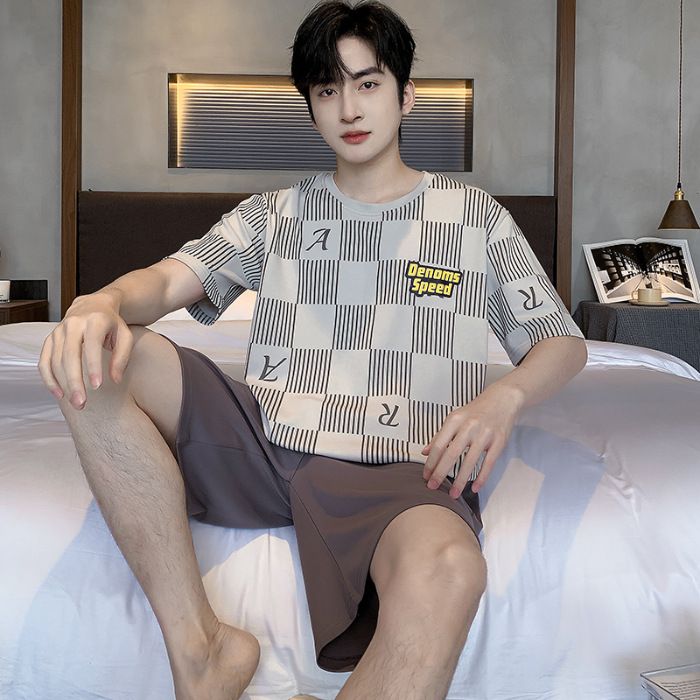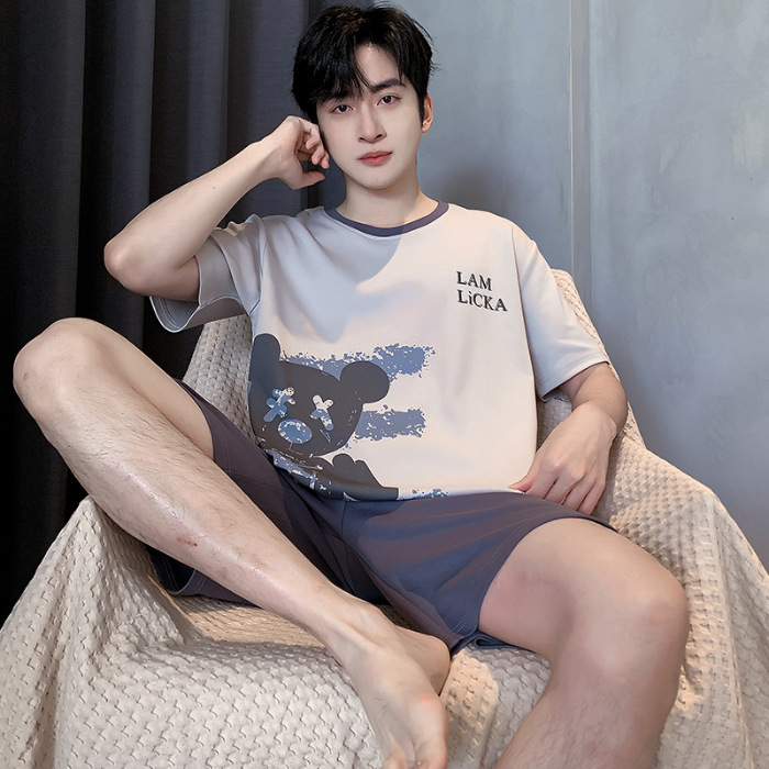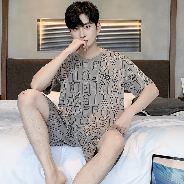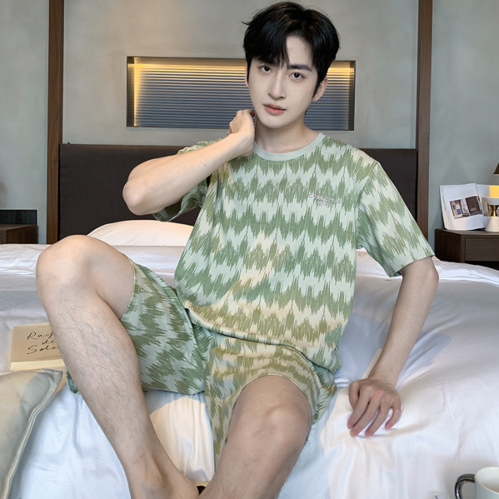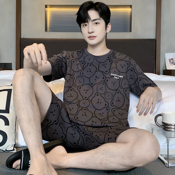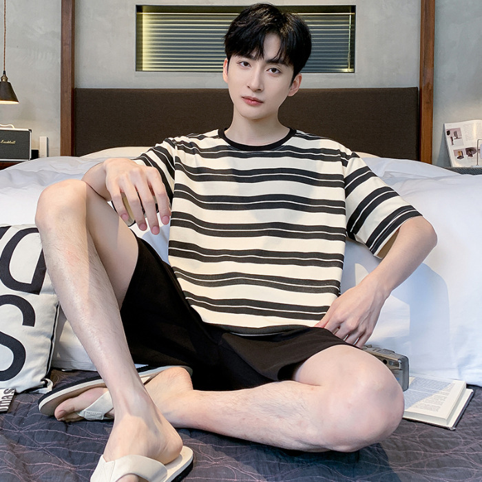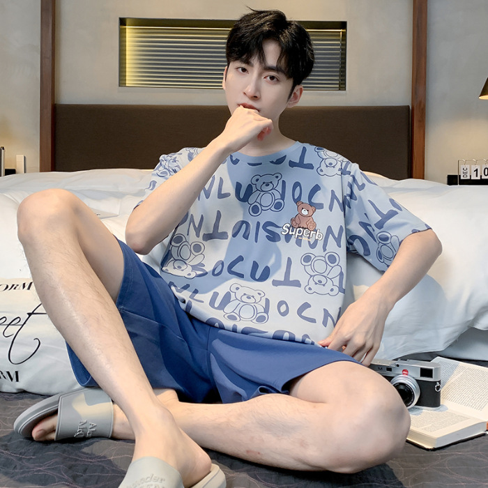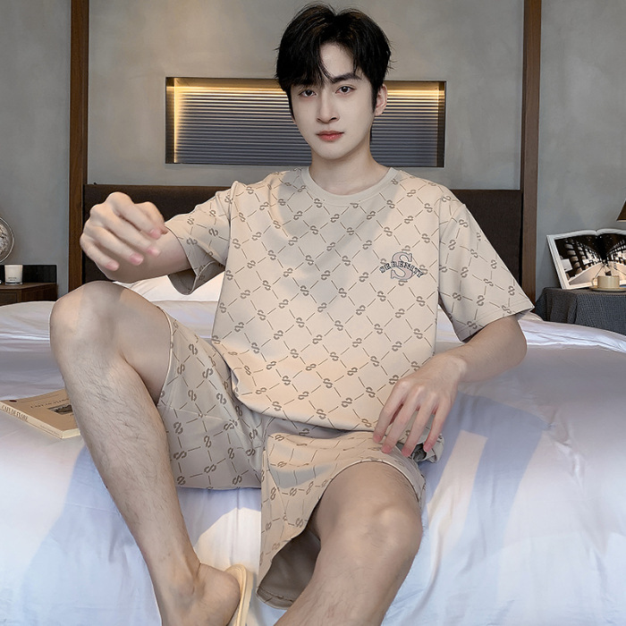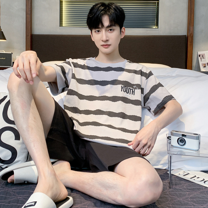 2025 년 여름 뉴 파자마 남성용 순면 반팔 반바지 홈 의류 세트 외투 착용 얇은 국경 폭발